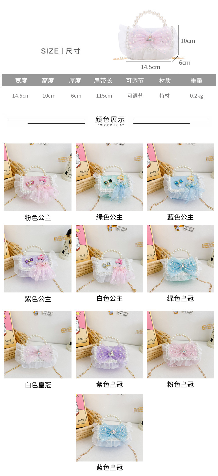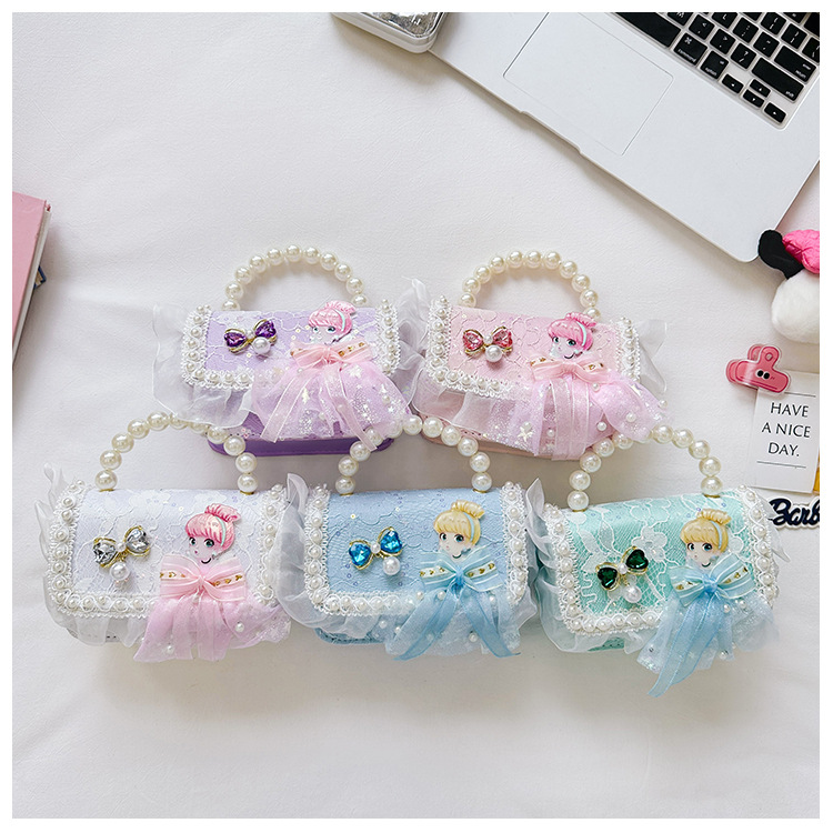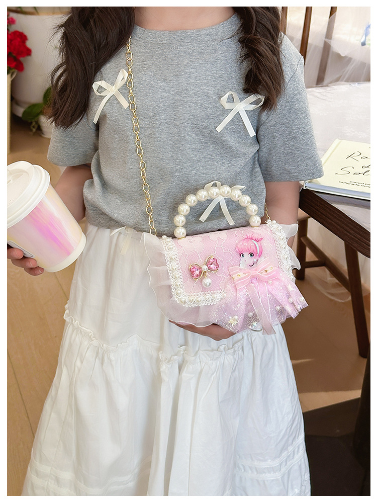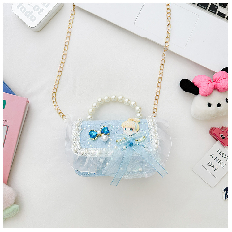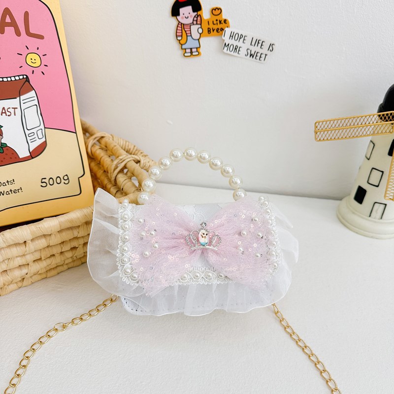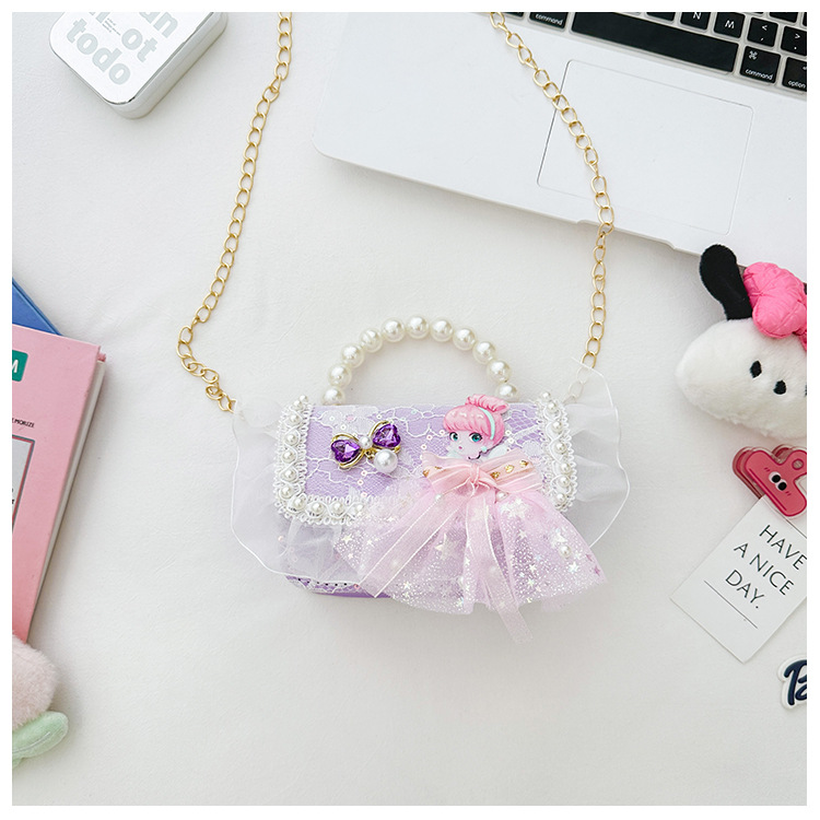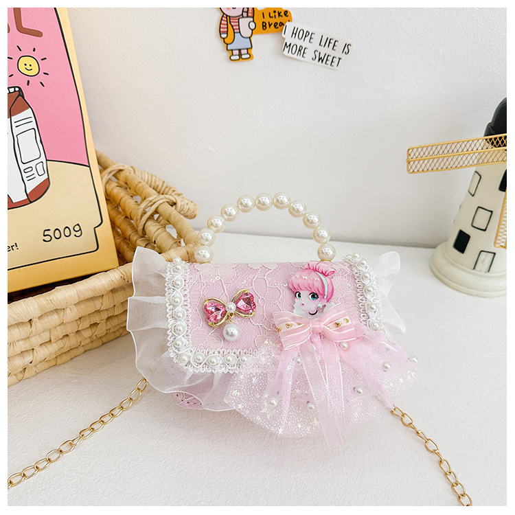 새로운 공주 활 어린이 가방 만화 귀여운 샤넬 진주 핸드백 작은 소녀 어깨 크로스 바디 가방