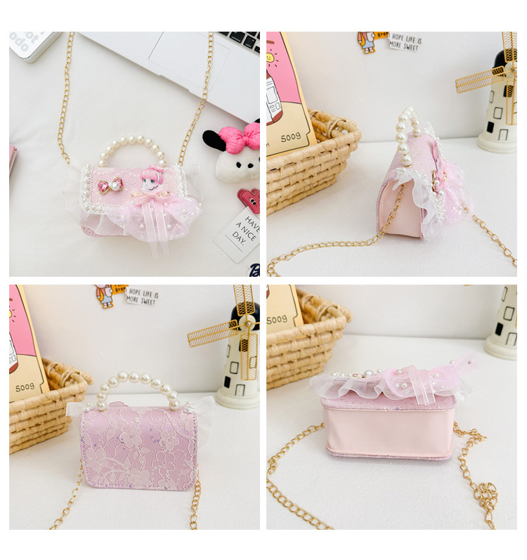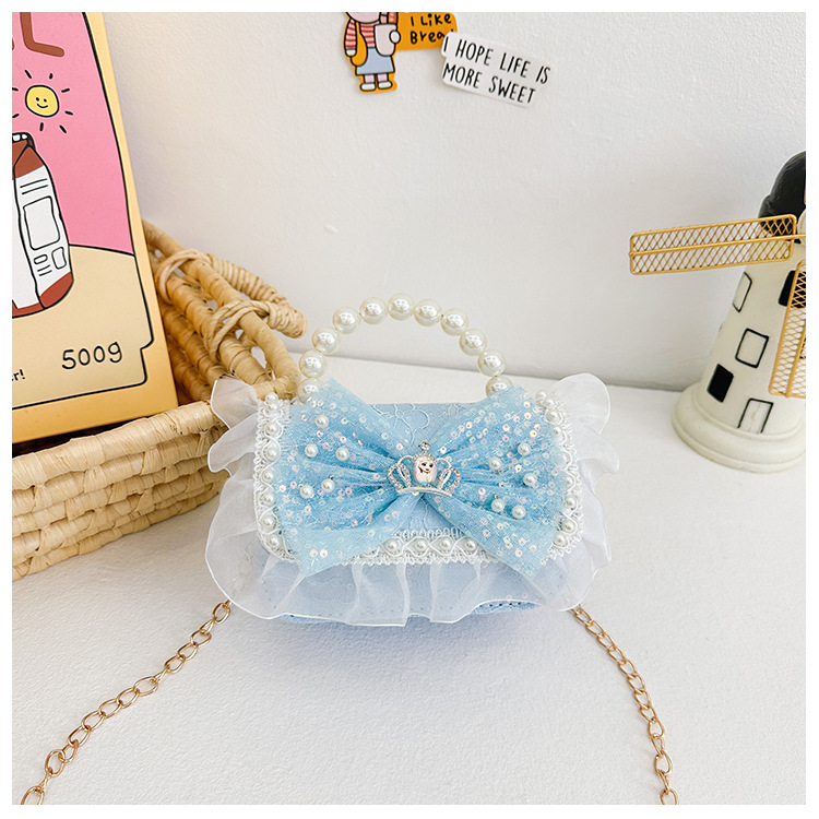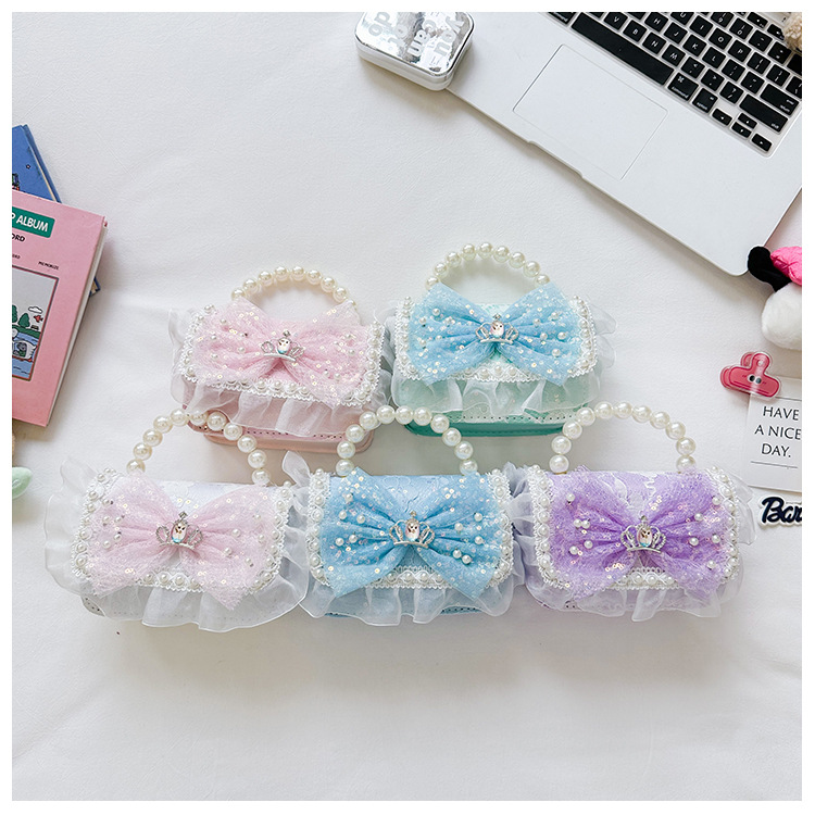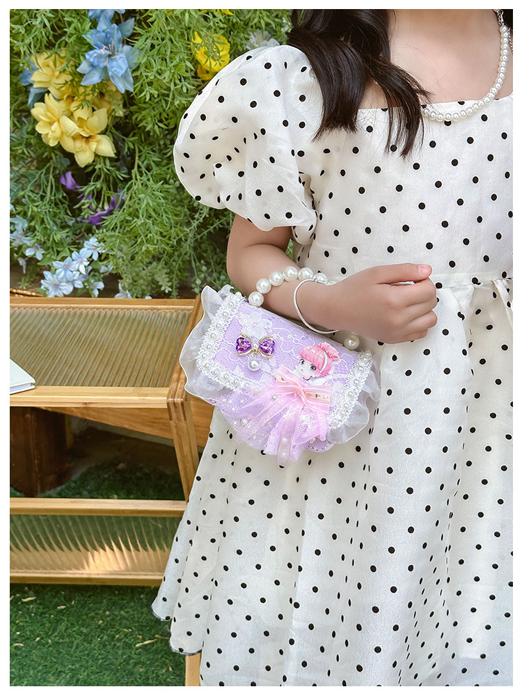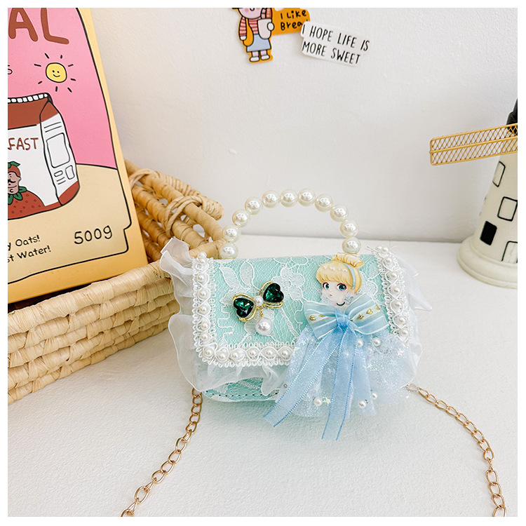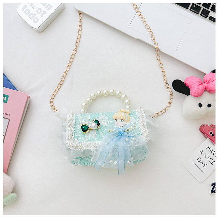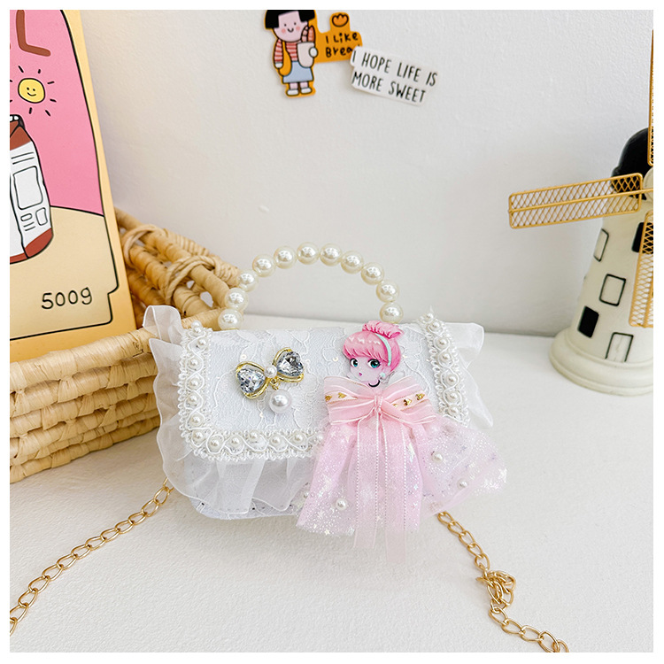 새로운 공주 활 어린이 가방 만화 귀여운 샤넬 진주 핸드백 작은 소녀 어깨 크로스 바디 가방