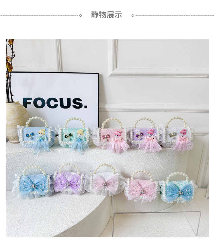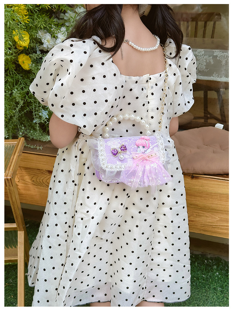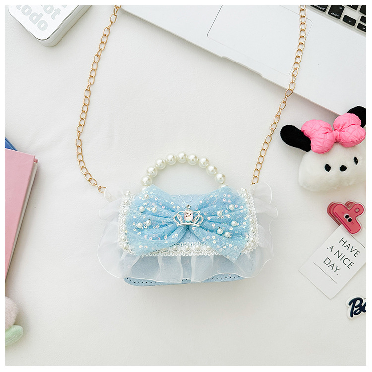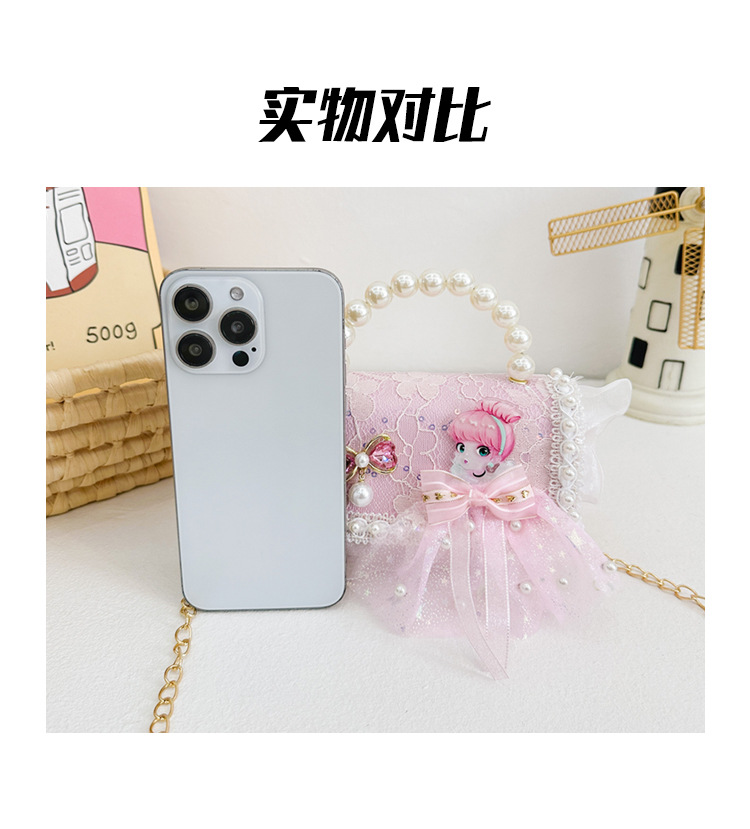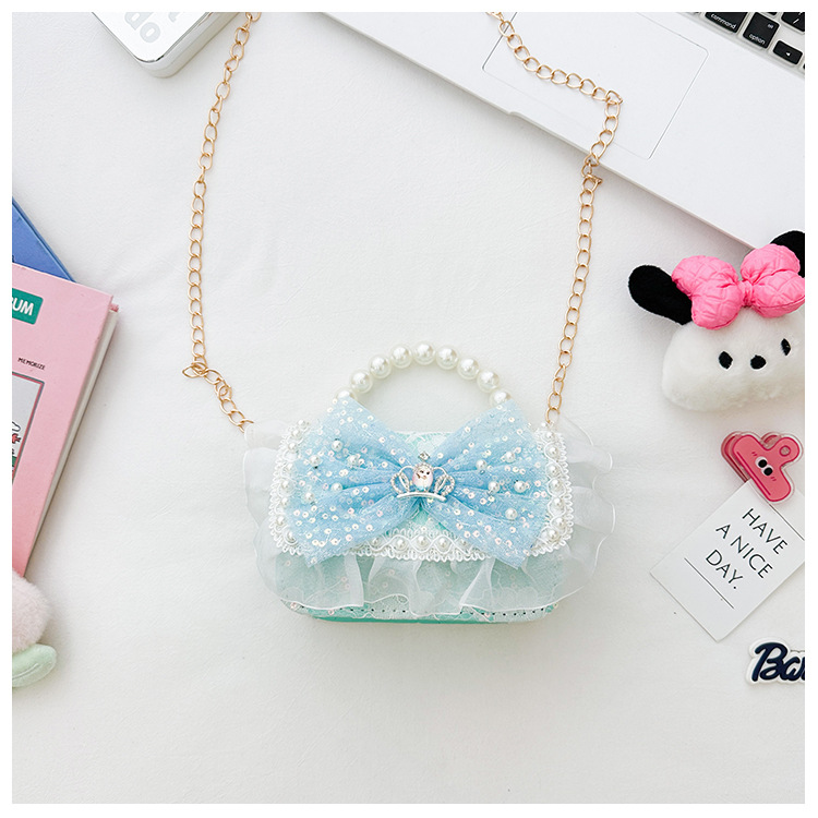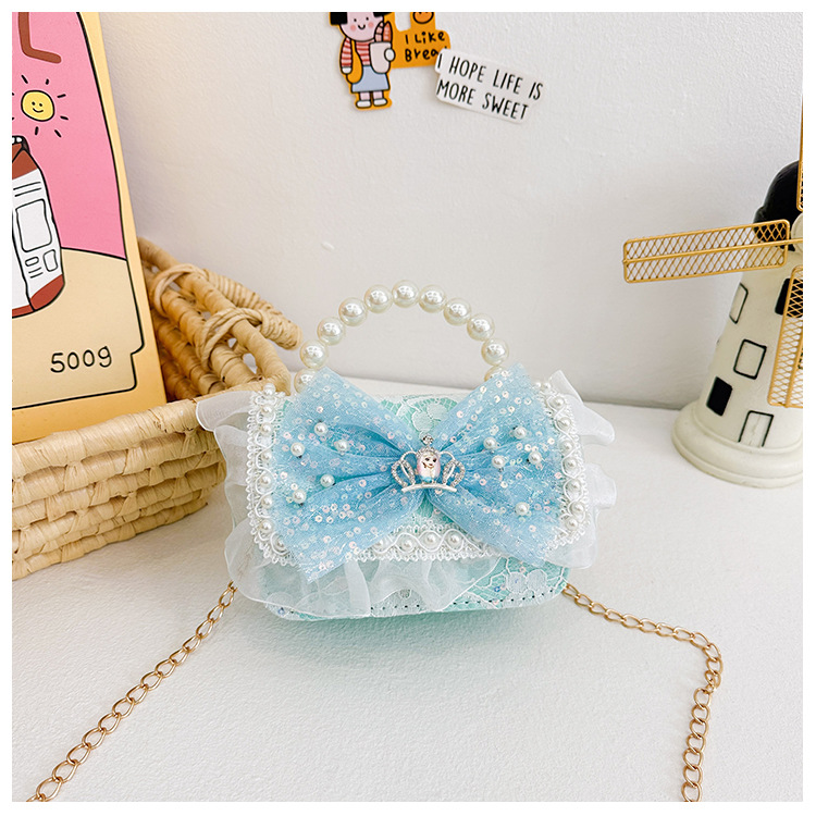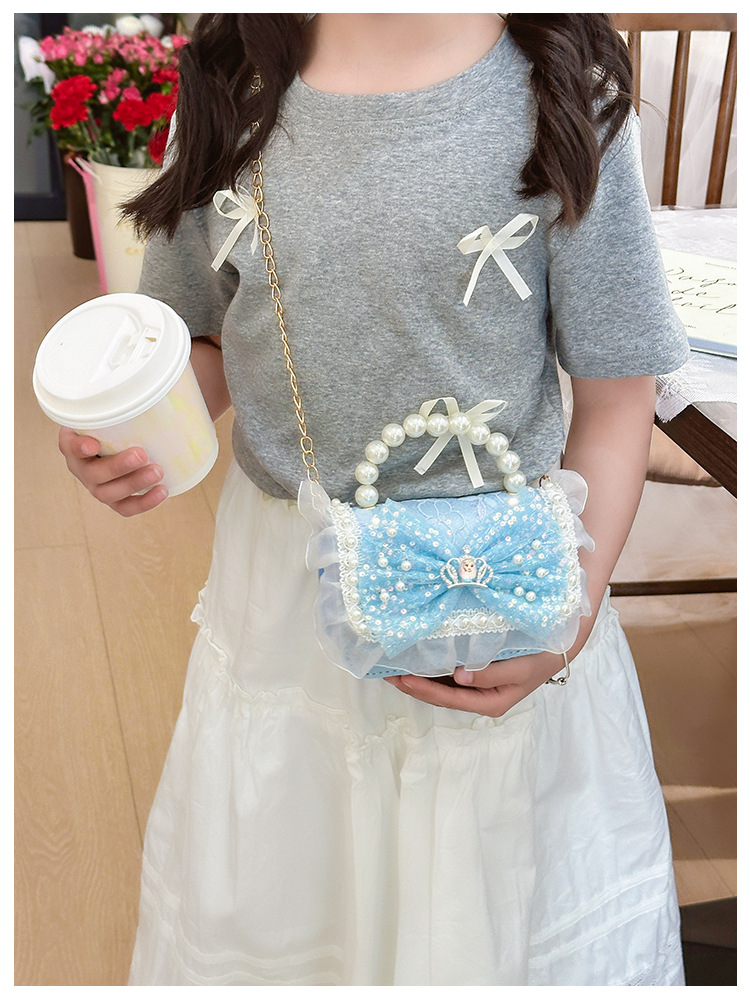 새로운 공주 활 어린이 가방 만화 귀여운 샤넬 진주 핸드백 작은 소녀 어깨 크로스 바디 가방