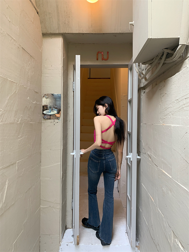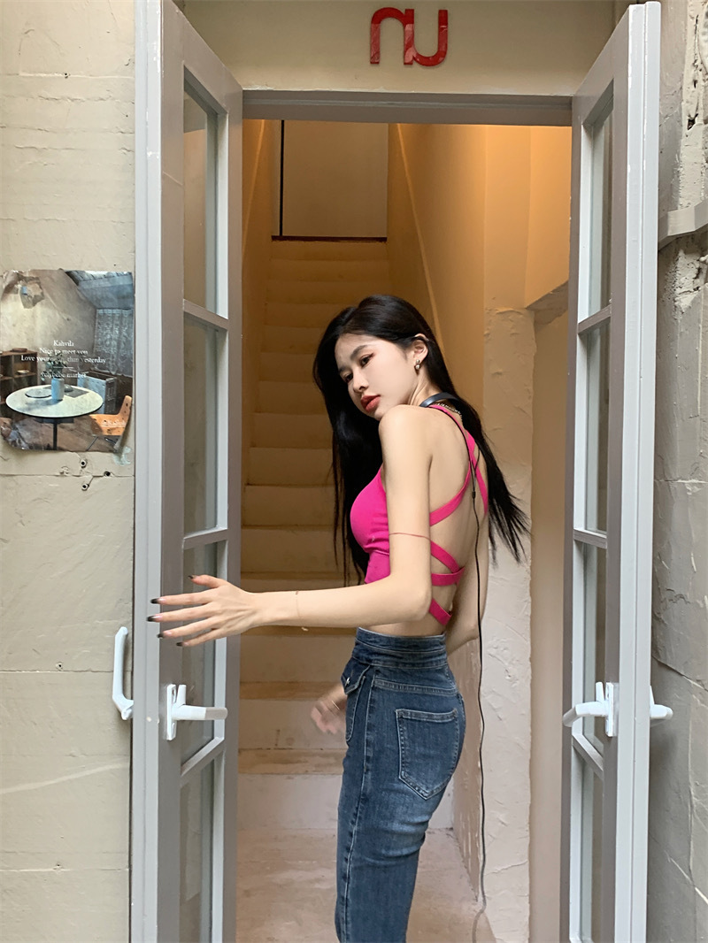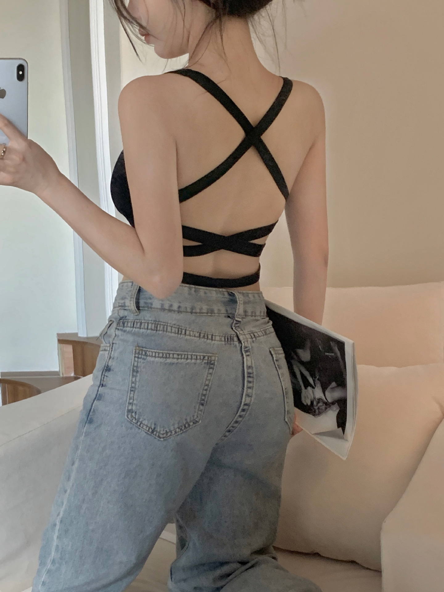핫 걸스 나이트 클럽 섹시 아름다운 백 크로스 작은 카미 솔 여성 벨트 가슴 패드 푸시 업 보투 여름 아우터 웨어 튜브 탑 니트스토어 가기
