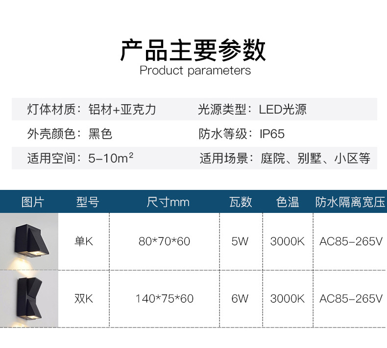 호텔 침실 통로 간단한 세척 램프 방수 외부 벽 새로운 중국 스타일 광장 위아래로 보이는 빌라 야외 벽 램프