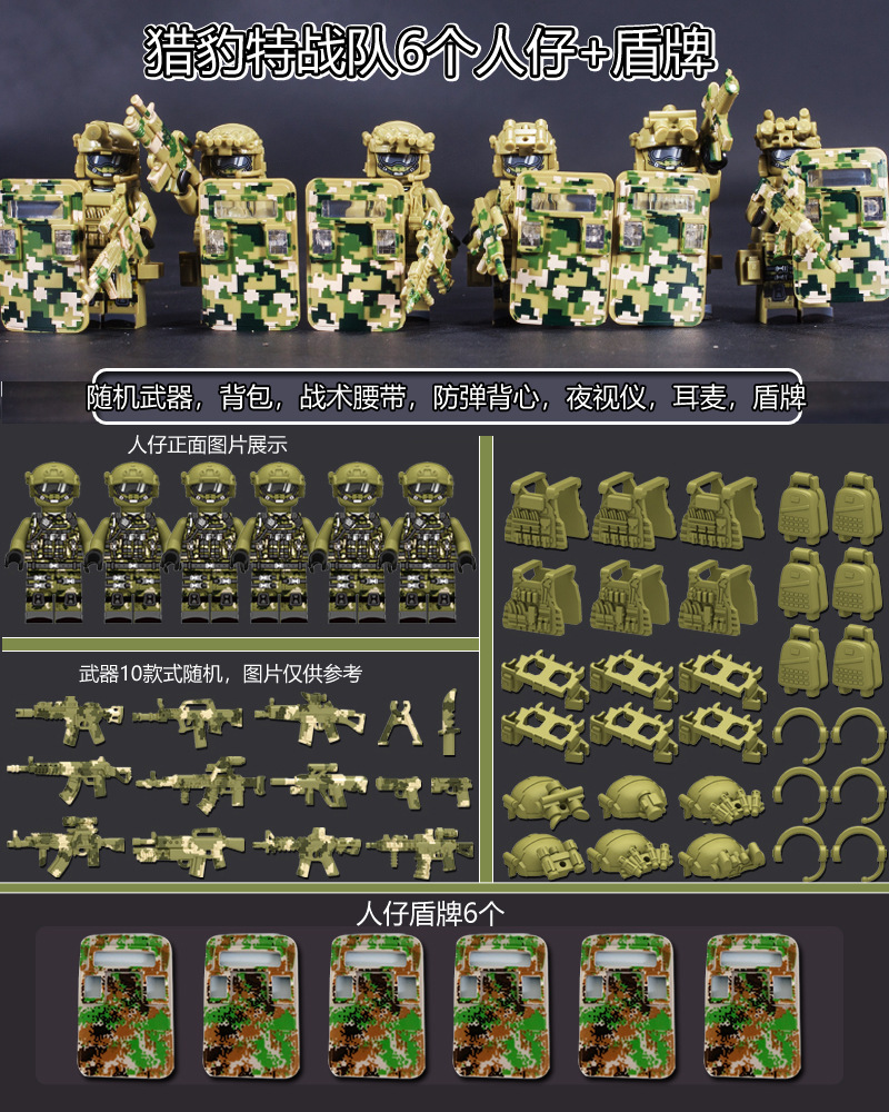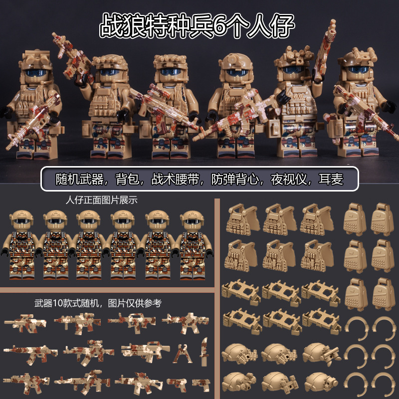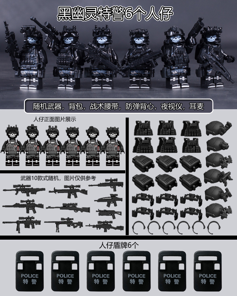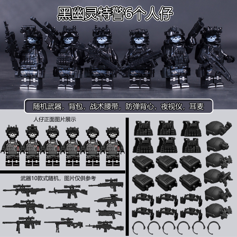 국경 간 군사 블랙 고스트 특수수사대 6인 피규어 세트 배낭 블록 조립 전술 벨트 액세서리스토어 가기