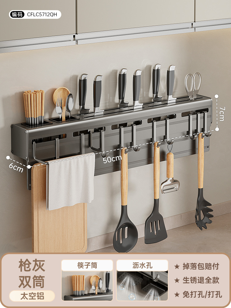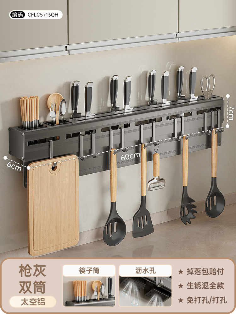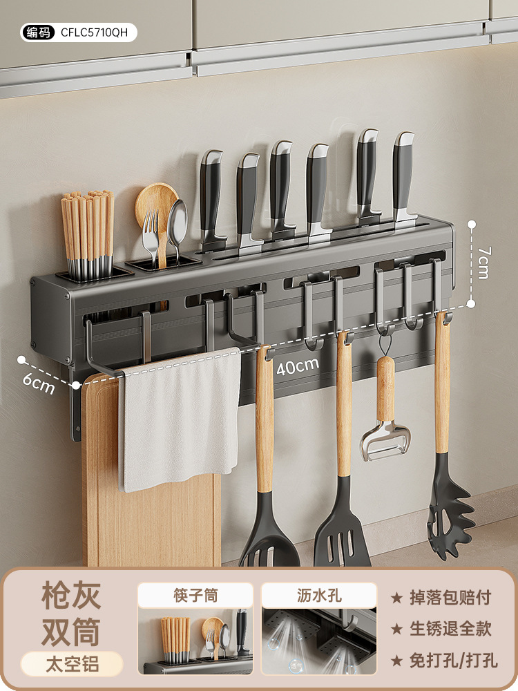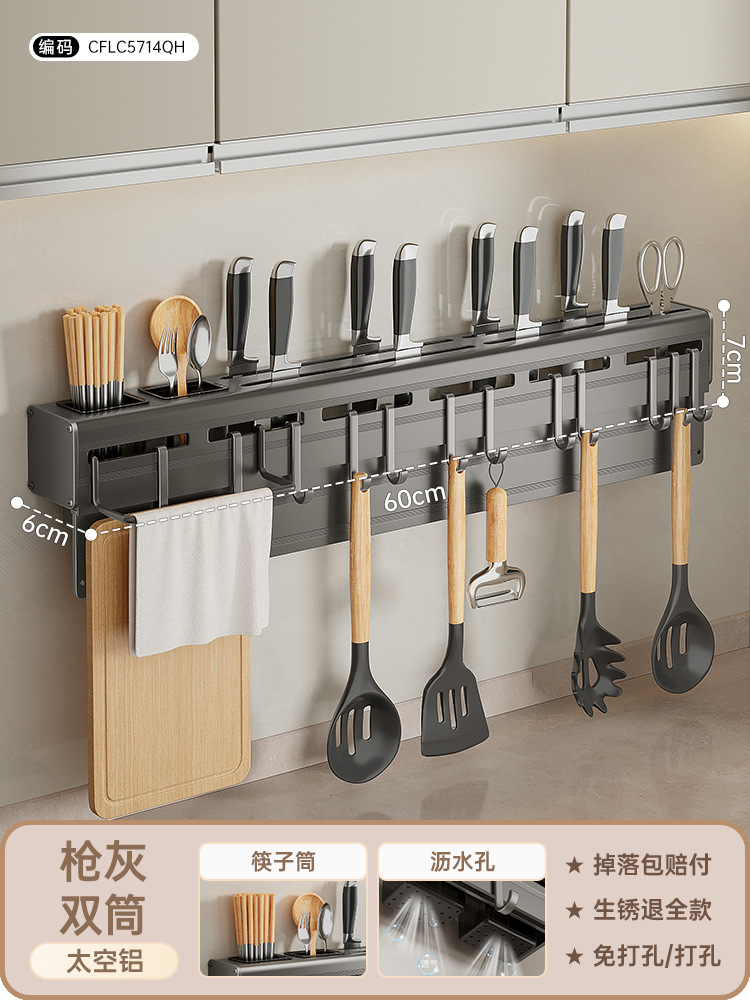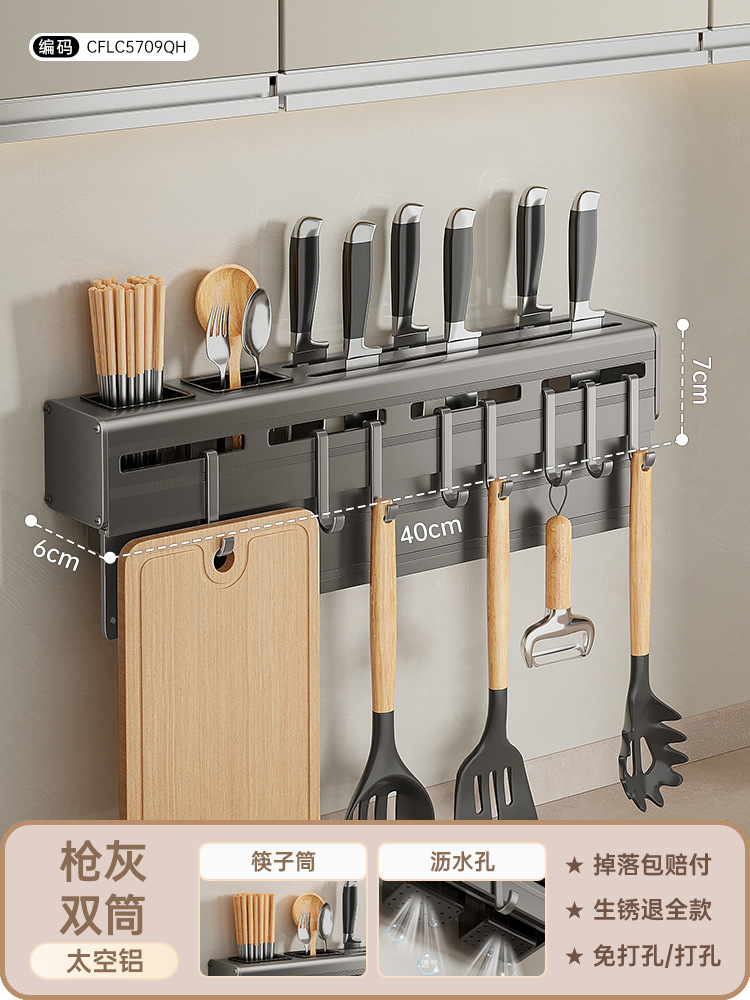 • 공간 알루미늄 총 회색 칼 홀더 40cm [나이프 보드 헝겊 막대 더블 튜브 8 후크]]