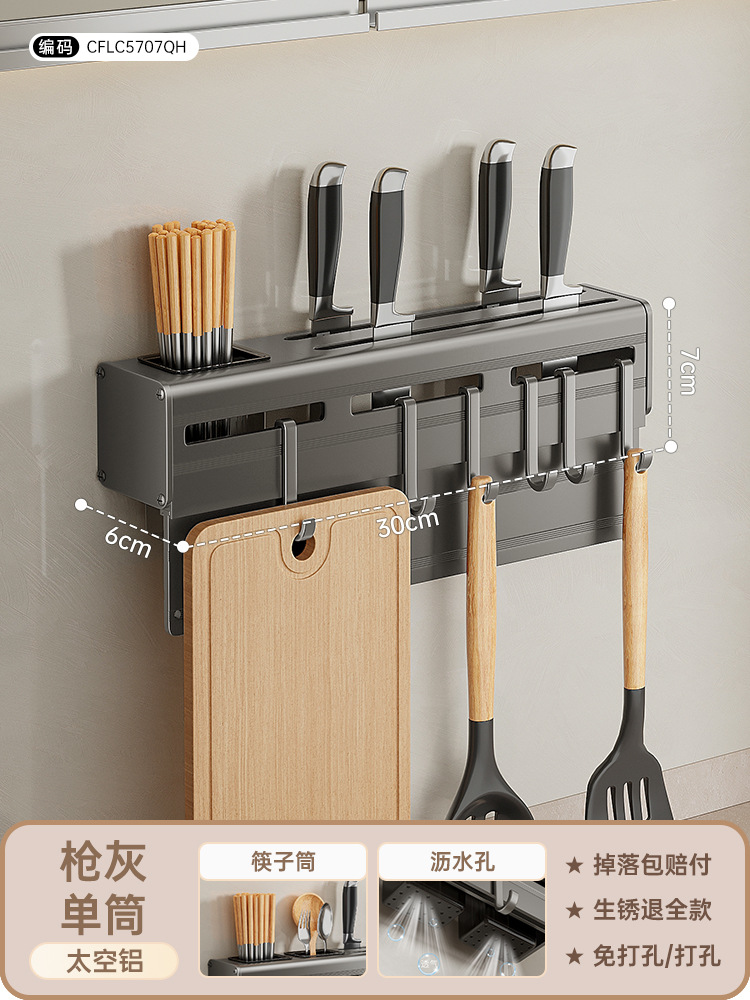• 공간 알루미늄 총 회색 칼 홀더 30cm [나이프 보드 헝겊 막대 단일 실린더 6 후크]]