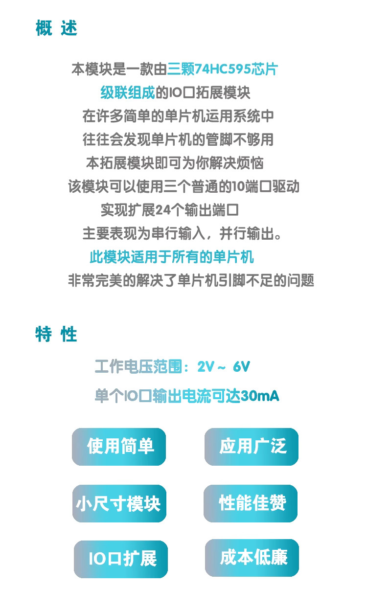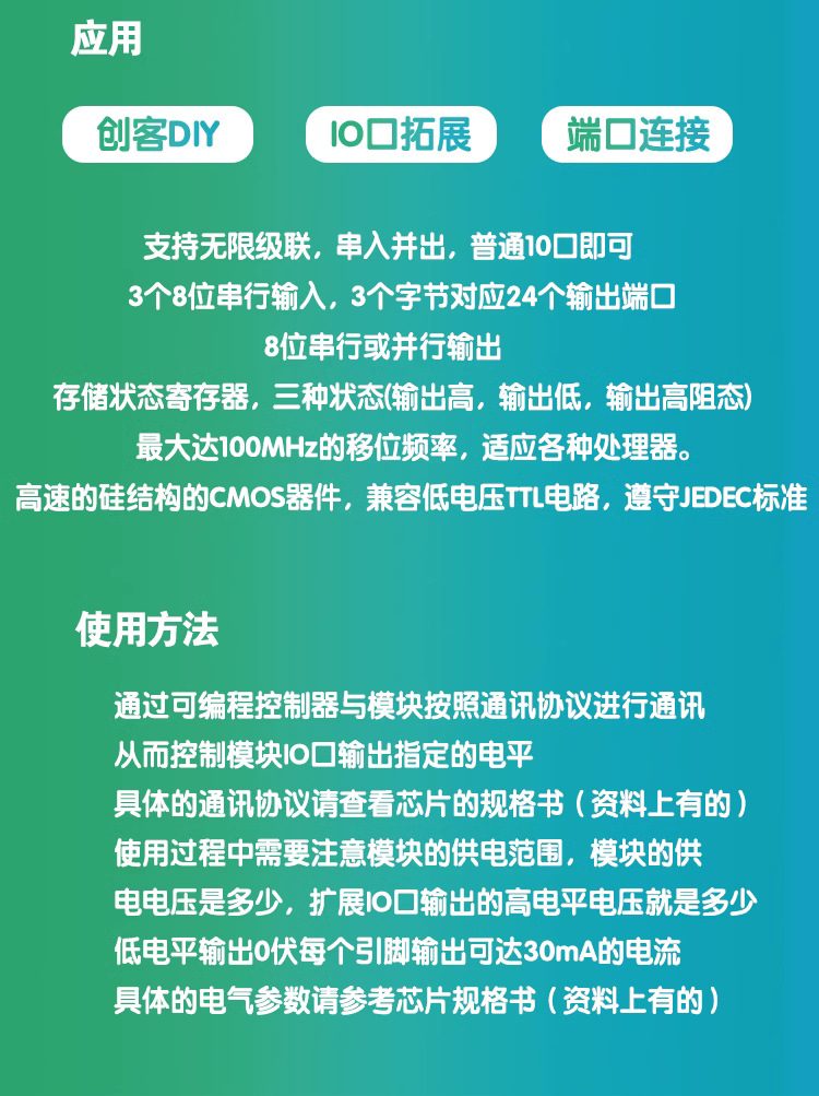 단일 칩 직렬-병렬 핀 IO 확장 모듈 74HC595 출력 포트 확장 3-to-24pin LED 제어