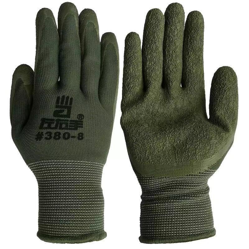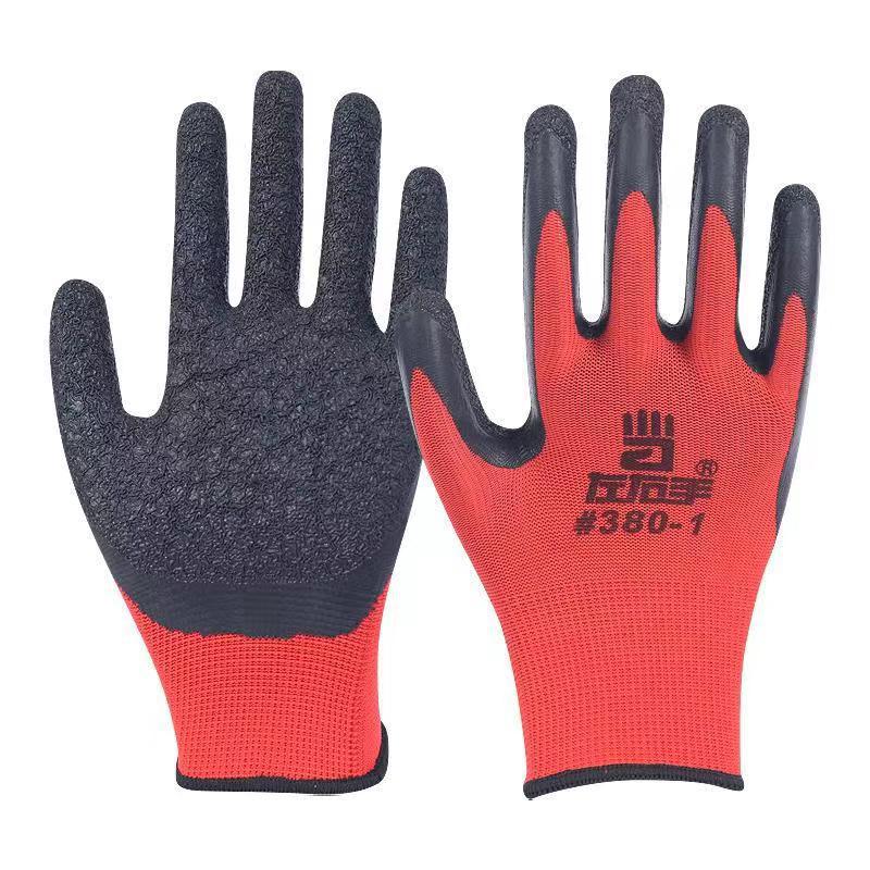 왼손 380-5 나일론 주름 방지 컷 라텍스 담그는 내마모성 미끄럼 통기성 작업 현장 노동 보호 장갑