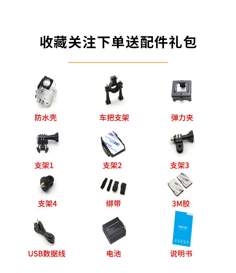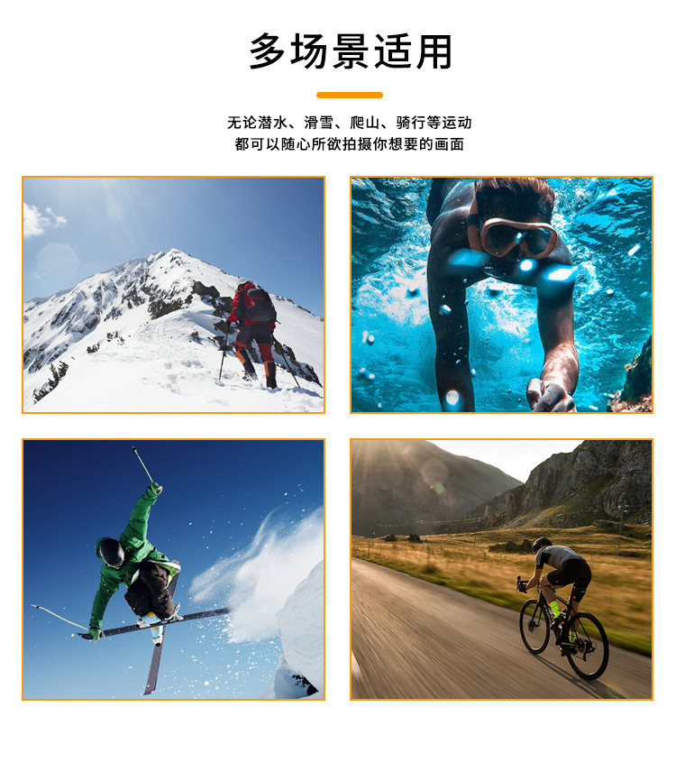 6.适用范围广:可用在自行车、摩托车、汽车上,用做骑行记录仪、行车记录仪以及露营、跳伞、潜水、骑行等运动拍摄