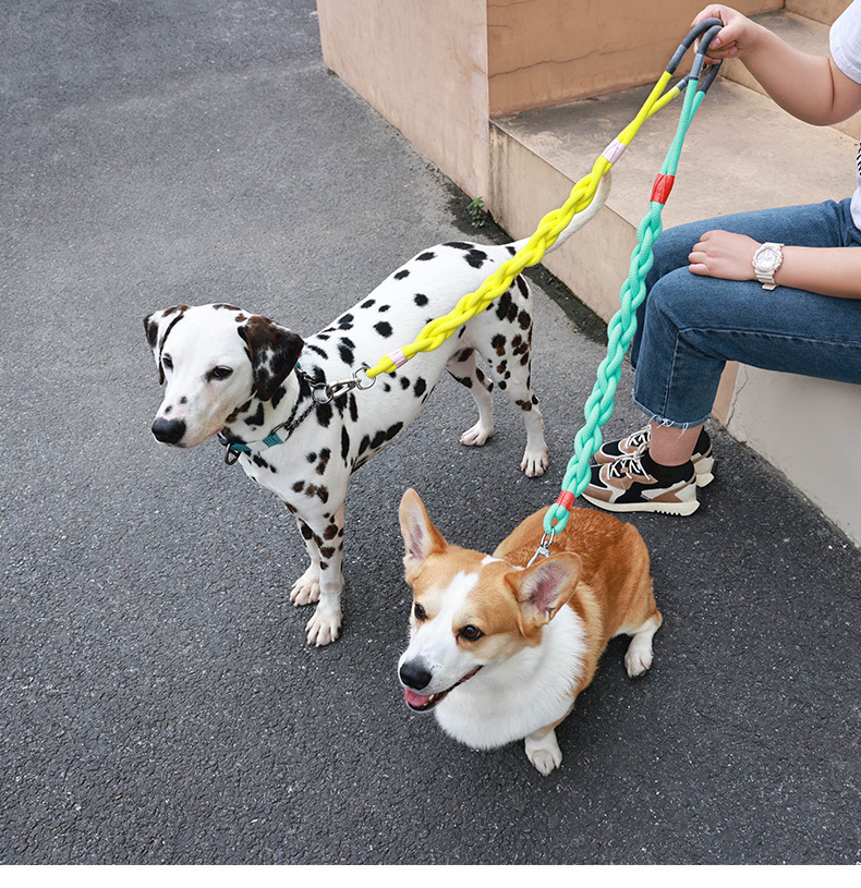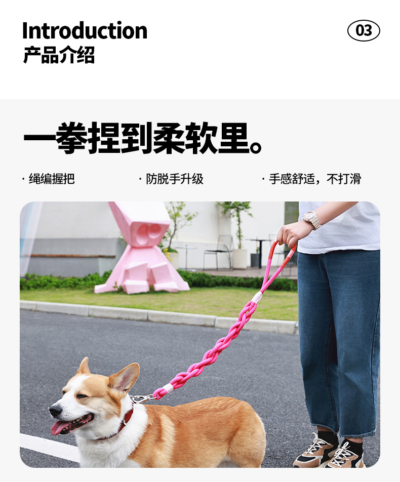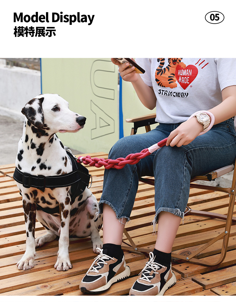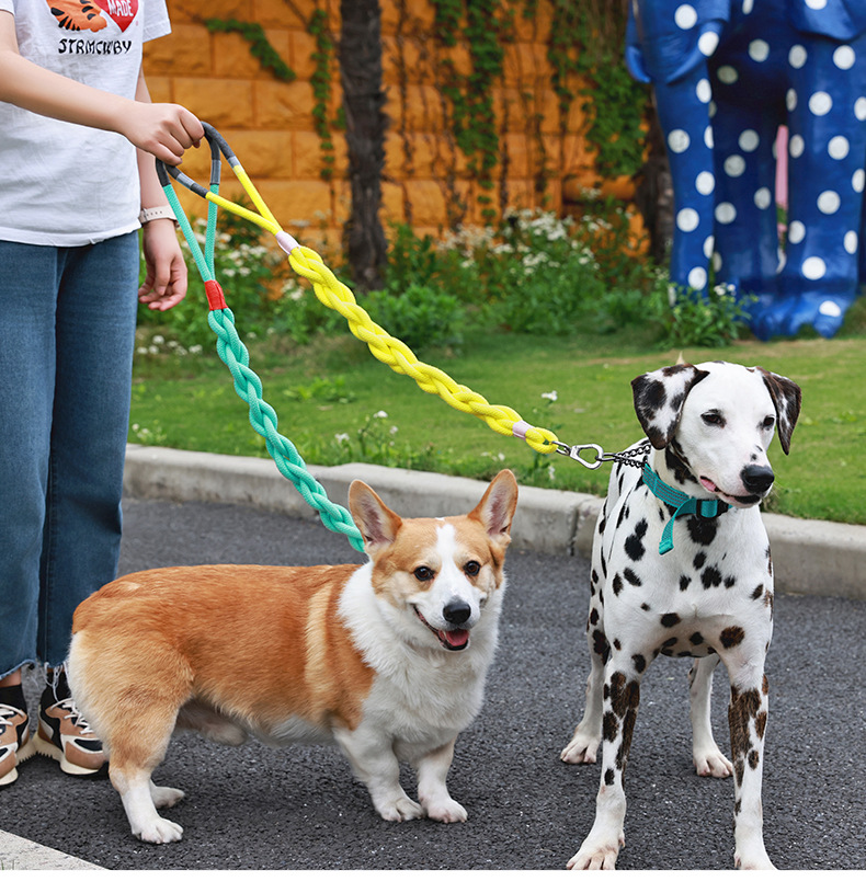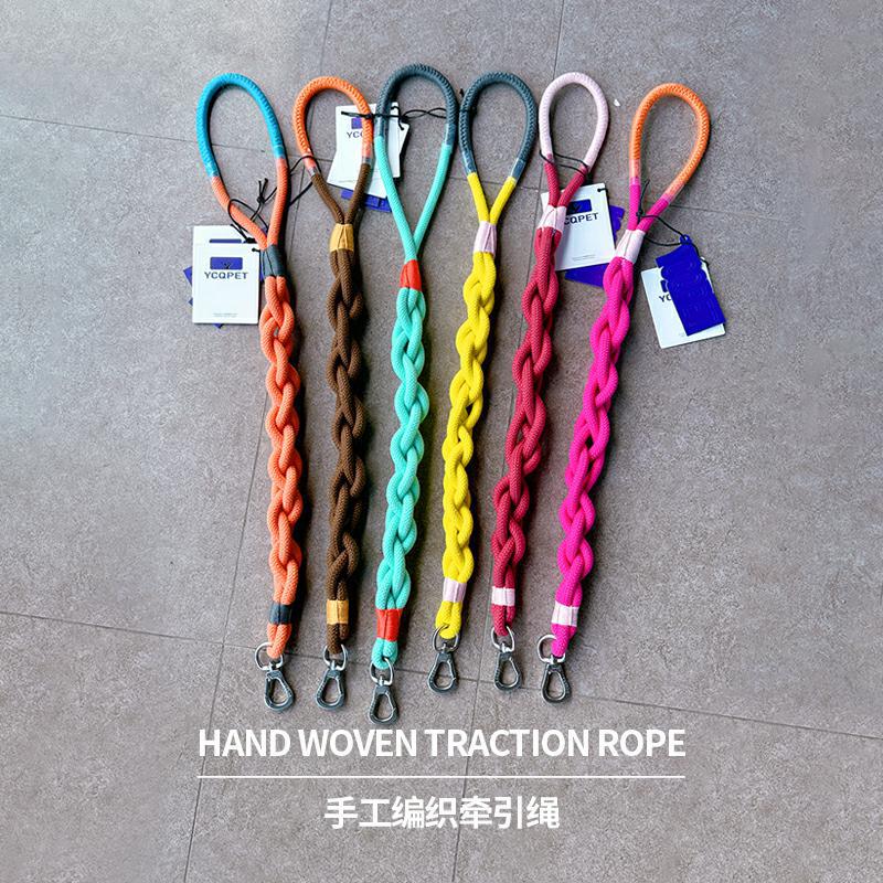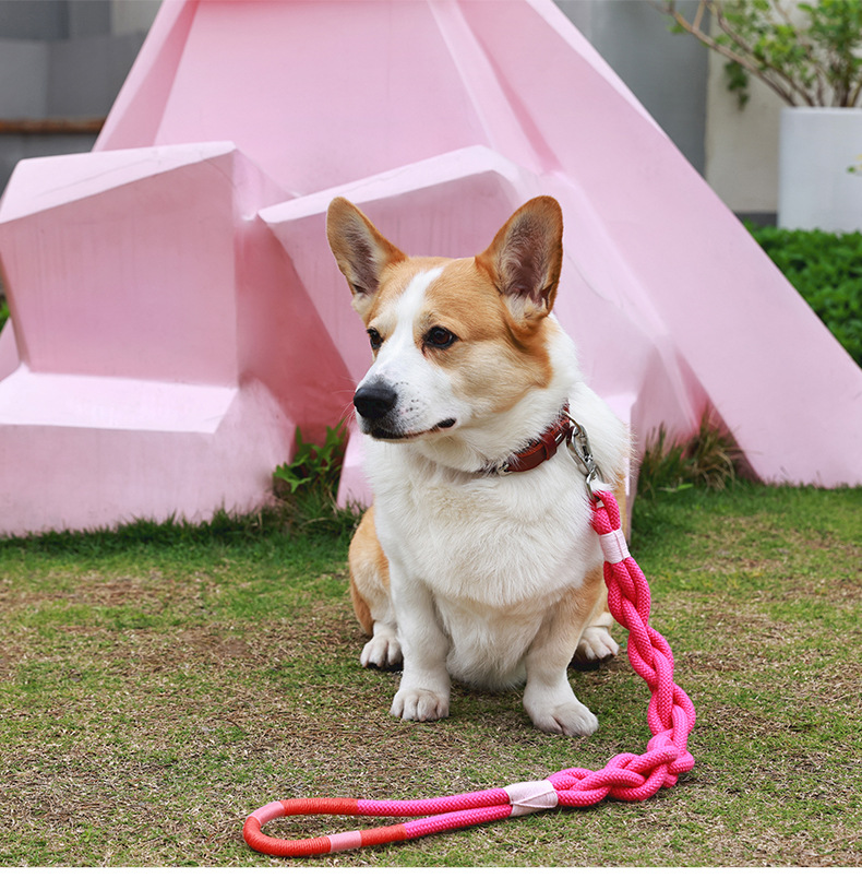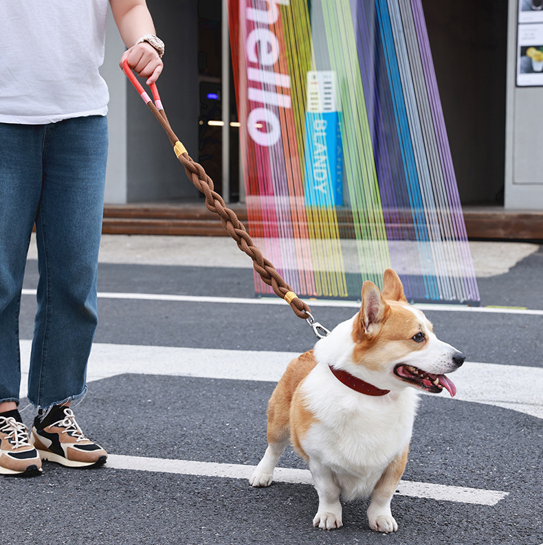 개 손으로 짠 견인 밧줄 중형 및 대형 개 트위스트 로프 골든 리트리버 코기 대담한 가죽 끈