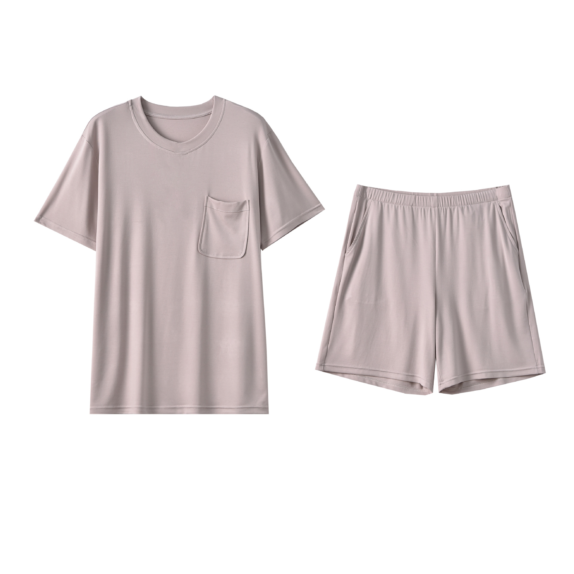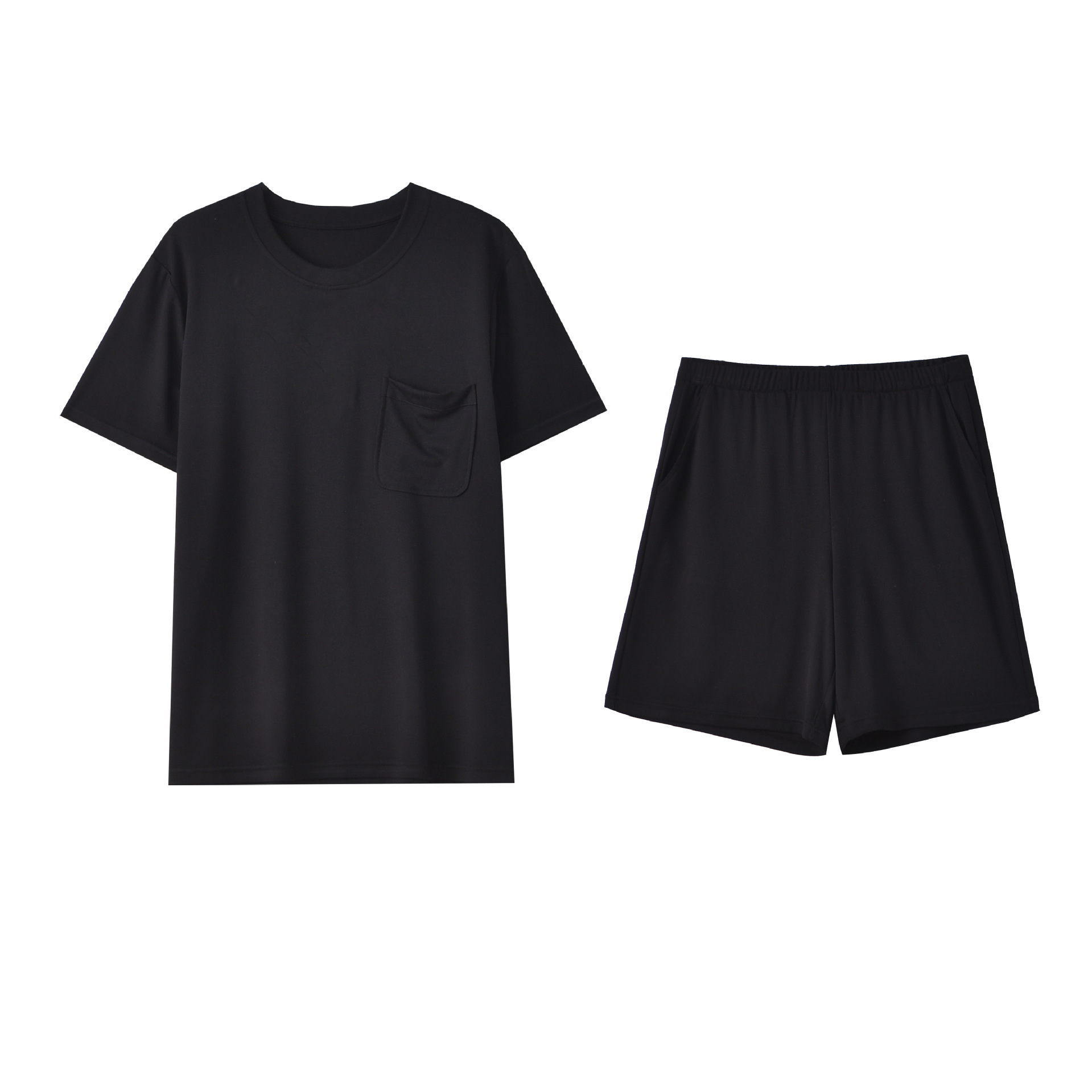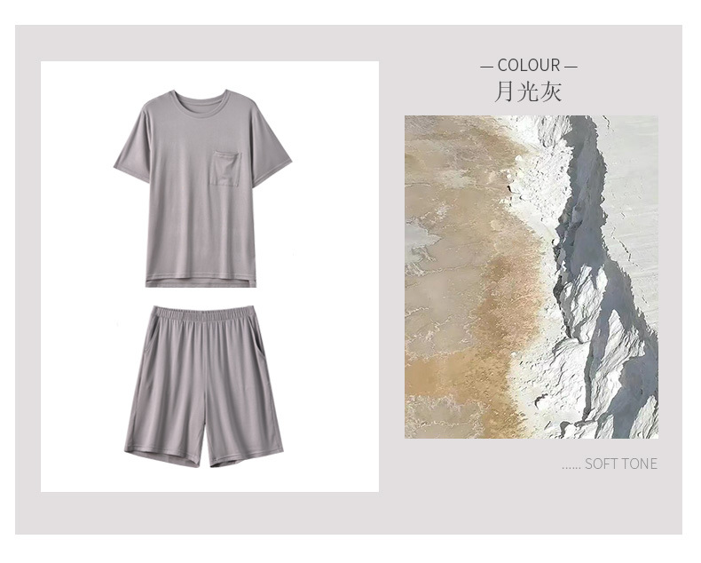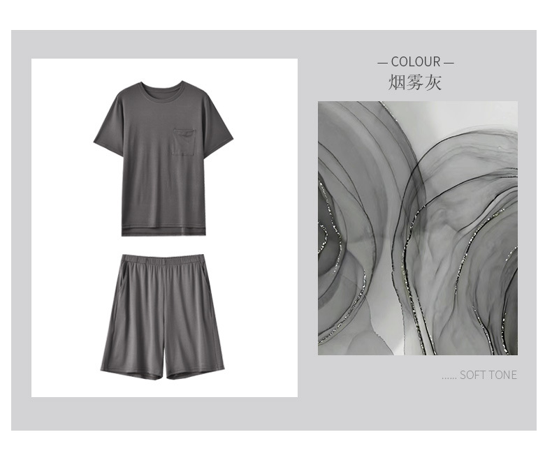 여름 남자의 얇은 모달 가정 옷은 시원한 단색 느슨하고 편안한 짧은 소매 반바지 세트 착용 할 수 있습니다스토어 가기
