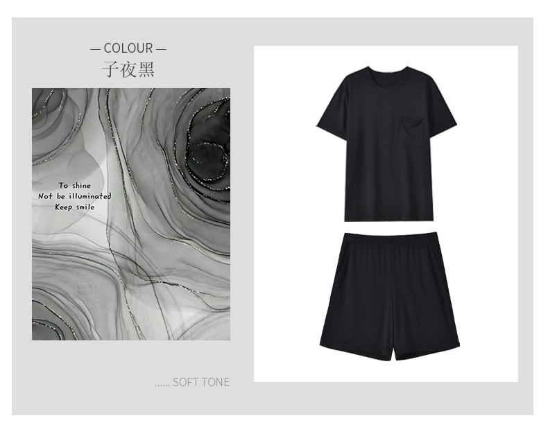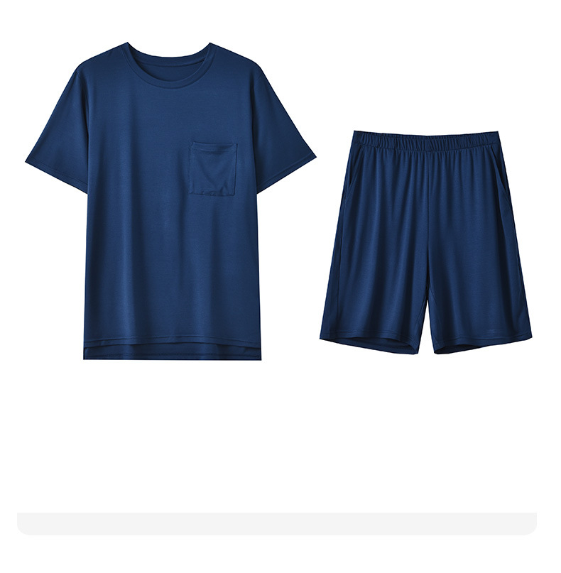 여름 남자의 얇은 모달 가정 옷은 시원한 단색 느슨하고 편안한 짧은 소매 반바지 세트 착용 할 수 있습니다