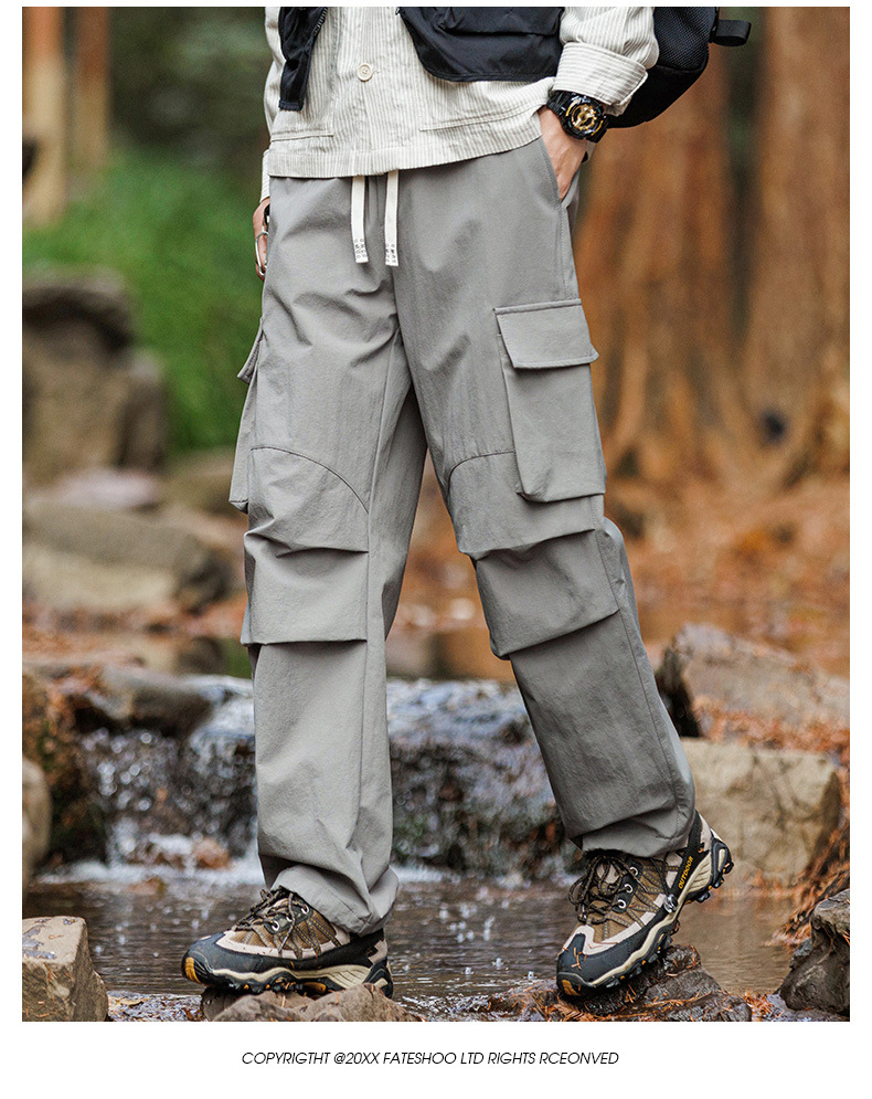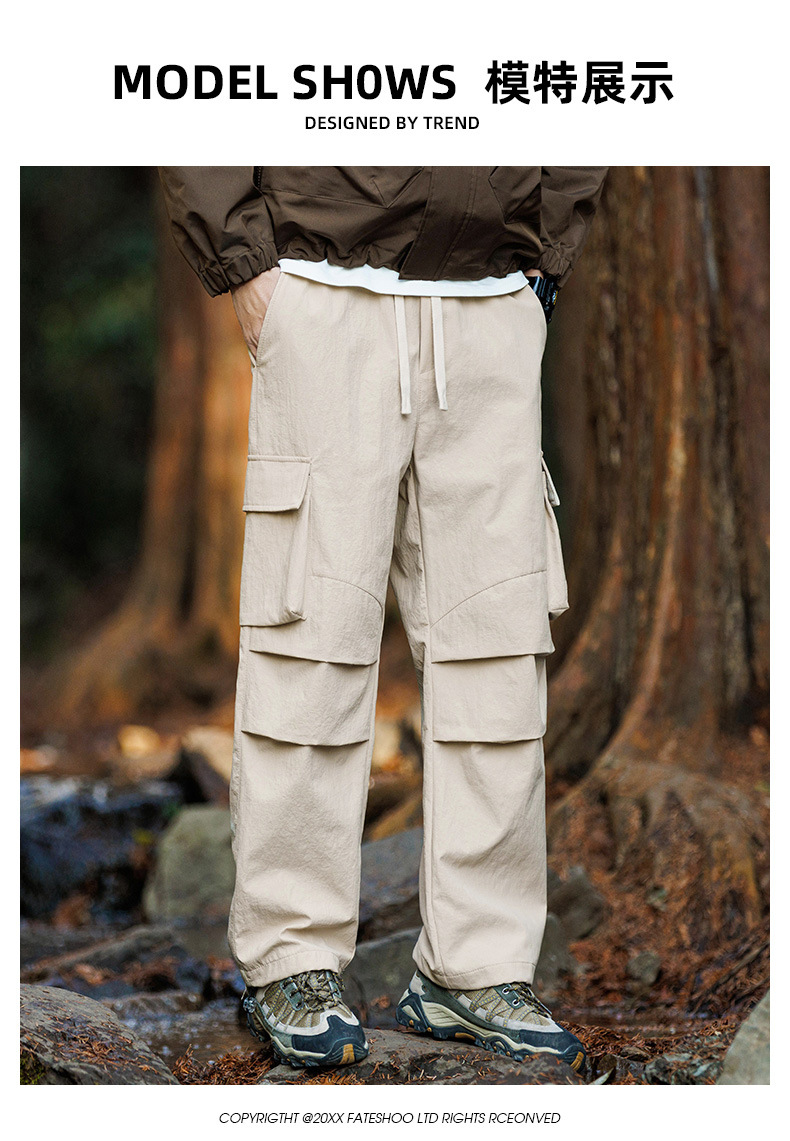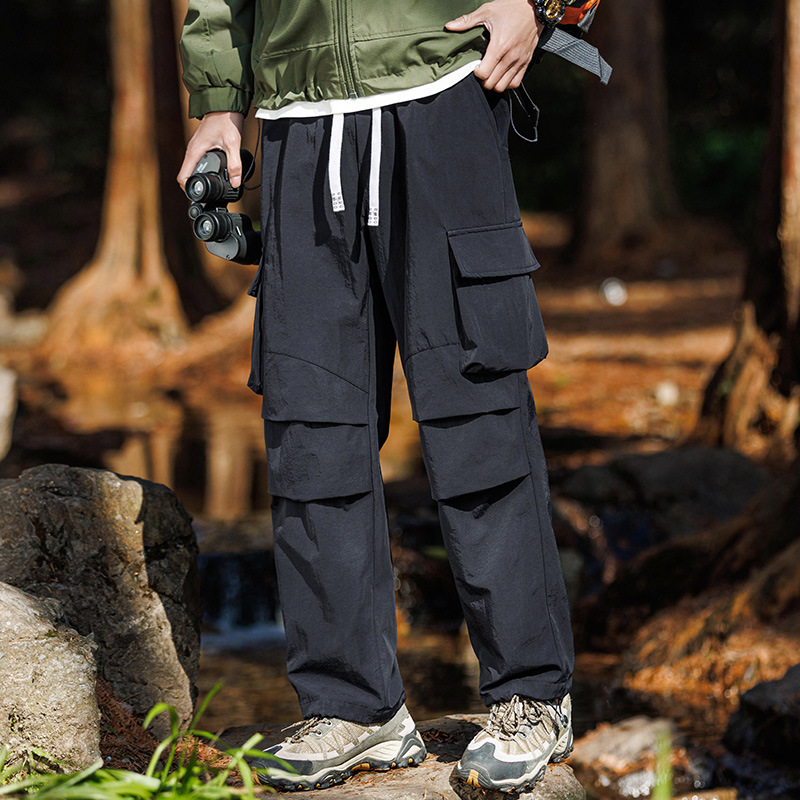 아메리칸 스타일 작업 바지 남자 2024 새로운 여름 유행 브랜드 느슨한 야외 등산 러쉬 바지 스포츠 캐주얼 바지