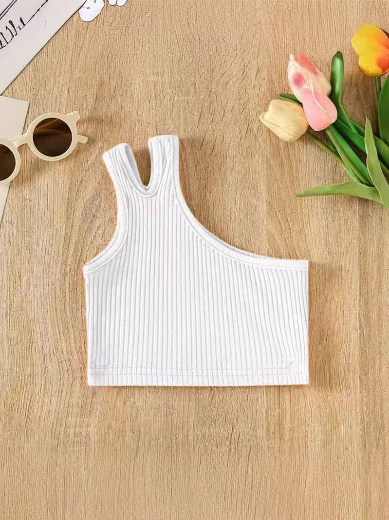 국경 간 아동복 소녀의 여름 조끼 2024 새로운 대외 무역 소녀의 날씬한 어깨 불규칙한 스트랩 백탑 탑스토어 가기