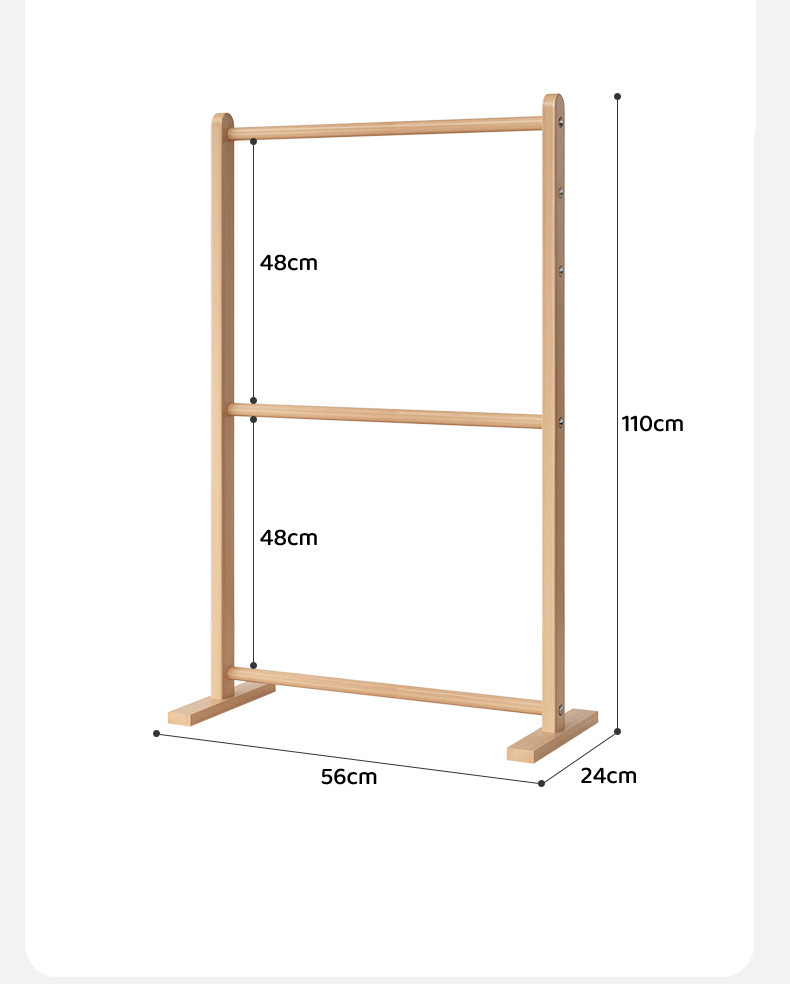 • ☆★【수입 원목 - 높이 조절 가능 2단】 가로 70cm x 폭 24cm x 높이 110cm 【최대 100벌 수납 가능】☆★