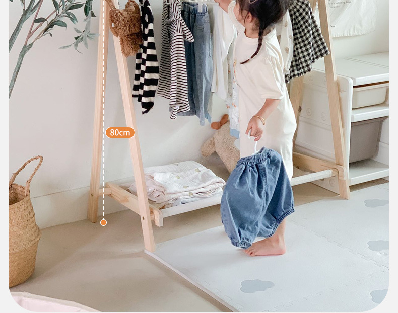 도매 어린이 옷걸이, 침실용 바닥형 아기 옷걸이, 가정용 유아용 원목 옷걸이, 유치원용스토어 가기