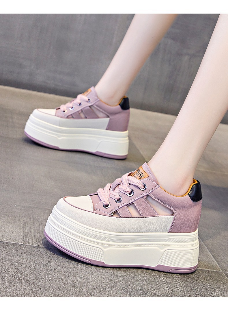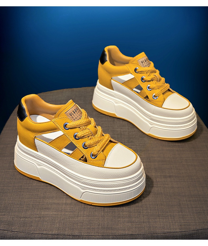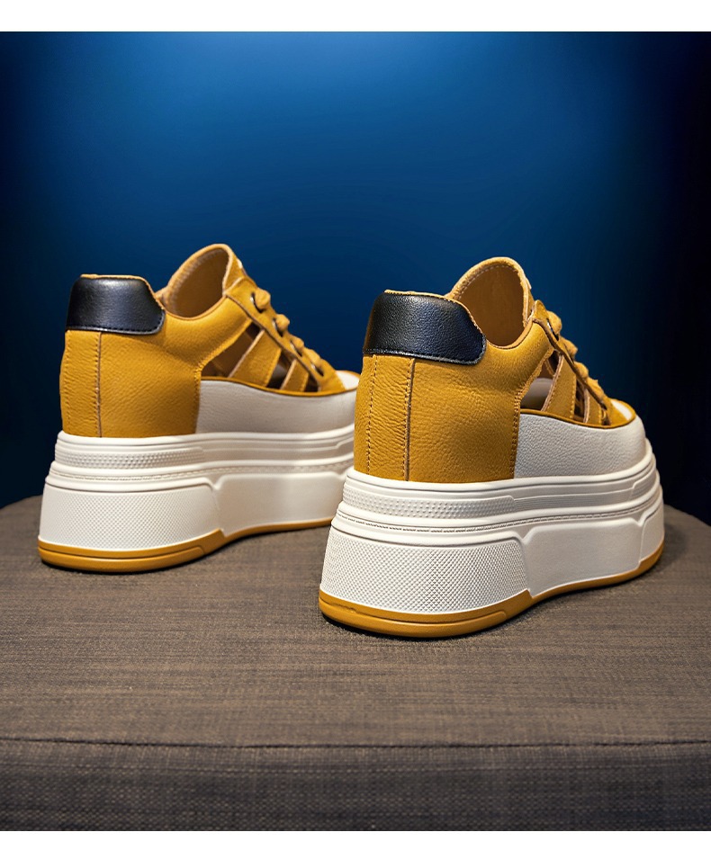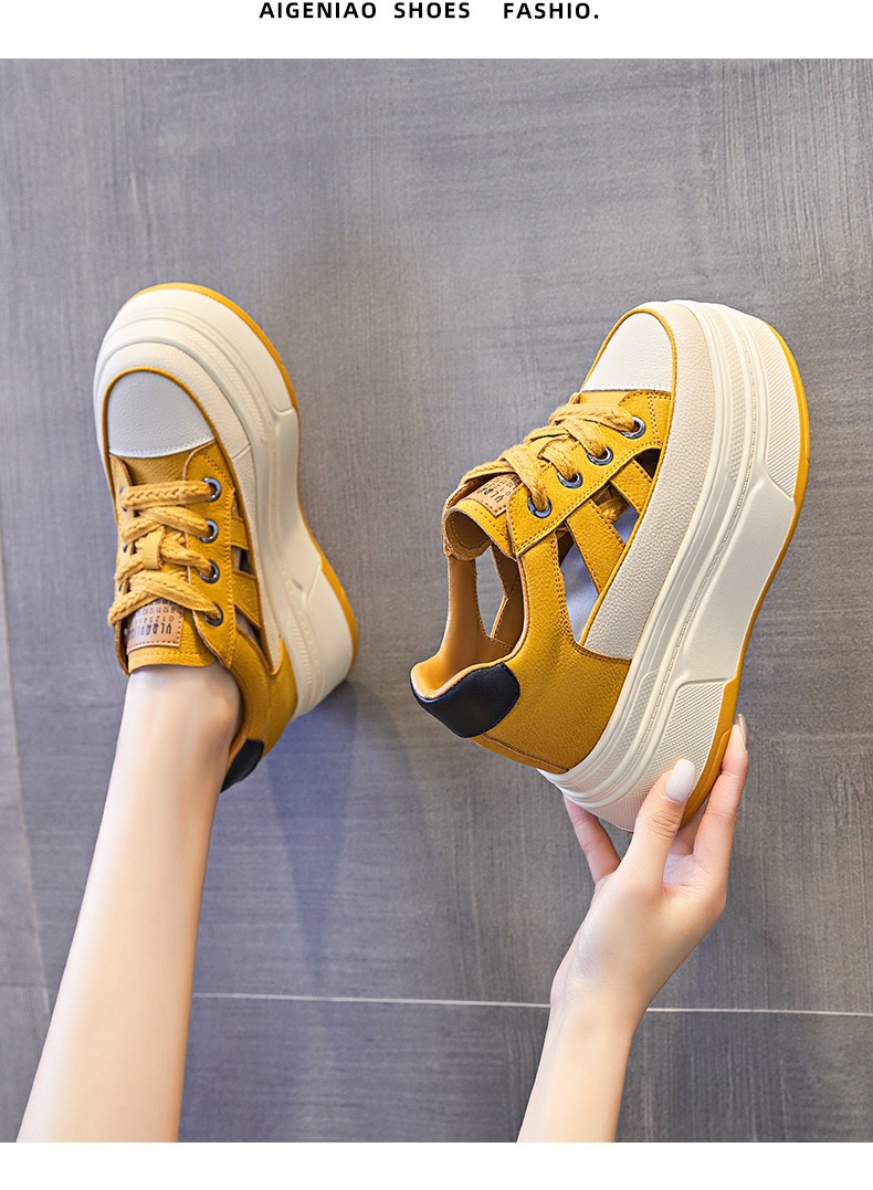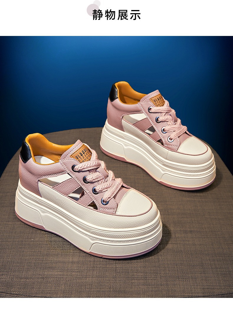 중공 구멍 신발 여성용 정품 가죽 2024 여름 새로운 두꺼운 밑창 높이 증가 여성 신발 올매치 웨지 스포츠 샌들스토어 가기