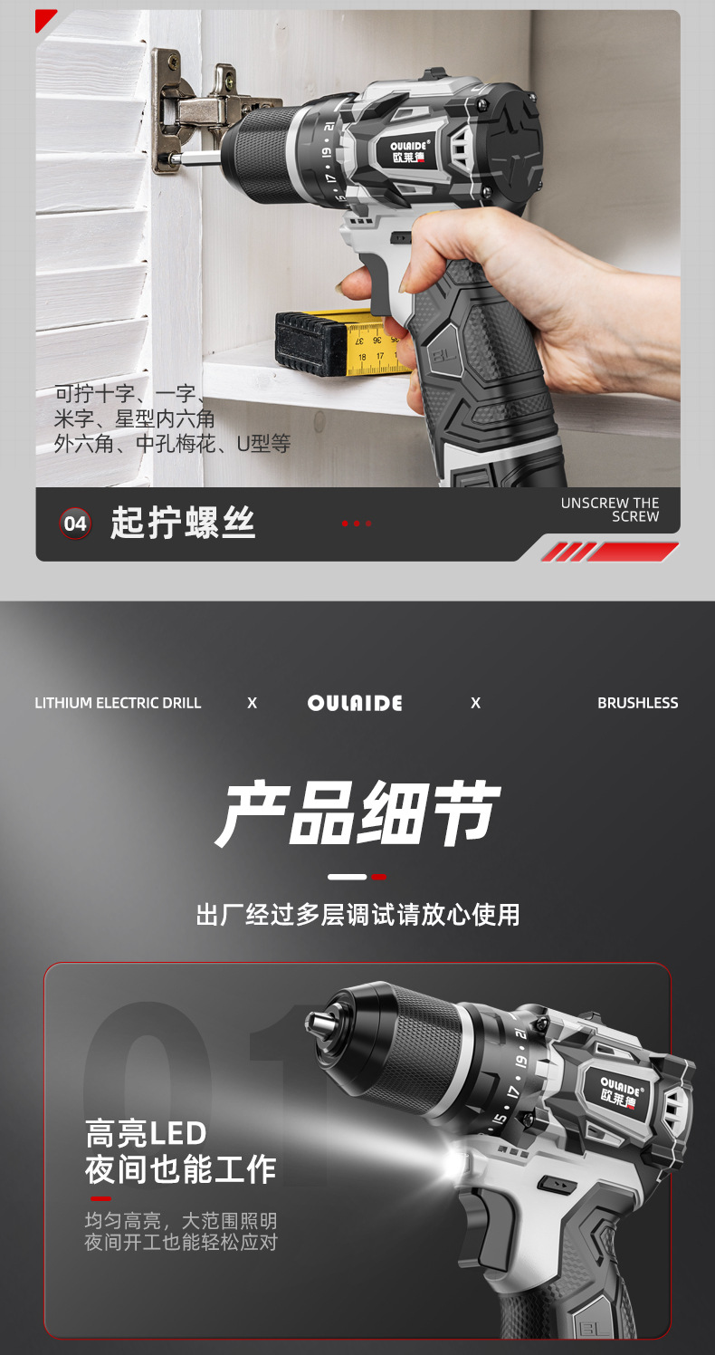 작은 강철 총 순수 구리 브러시리스 전기 드릴 손 전기 드릴 충전식 리튬 전기 드릴 작은 손 총 드릴 다기능 펀치 드라이버스토어 가기