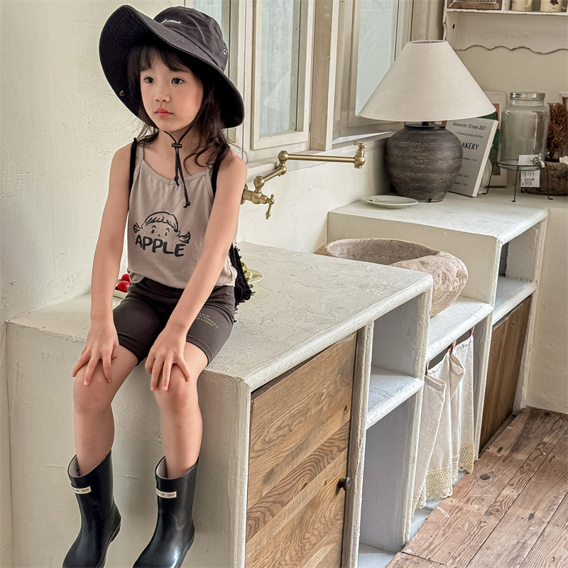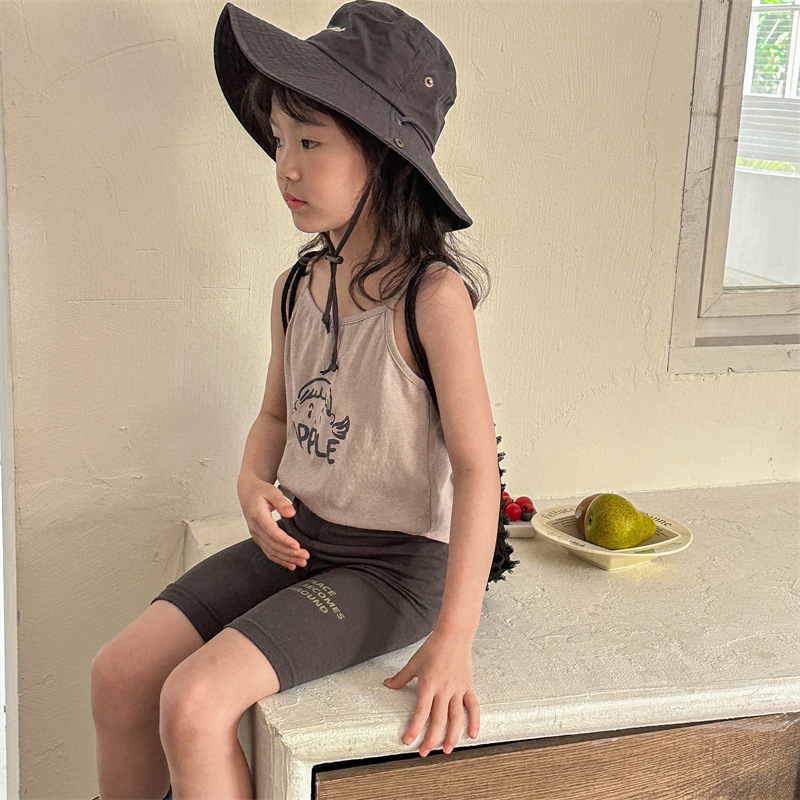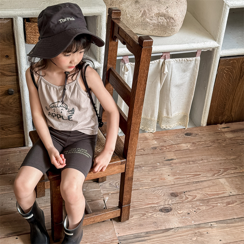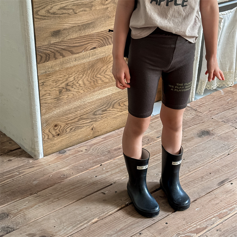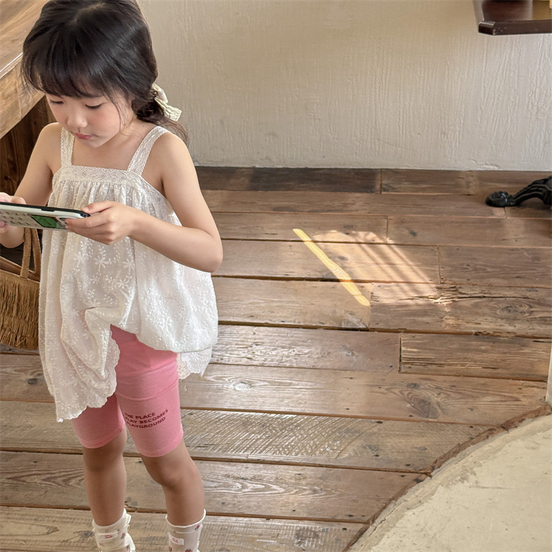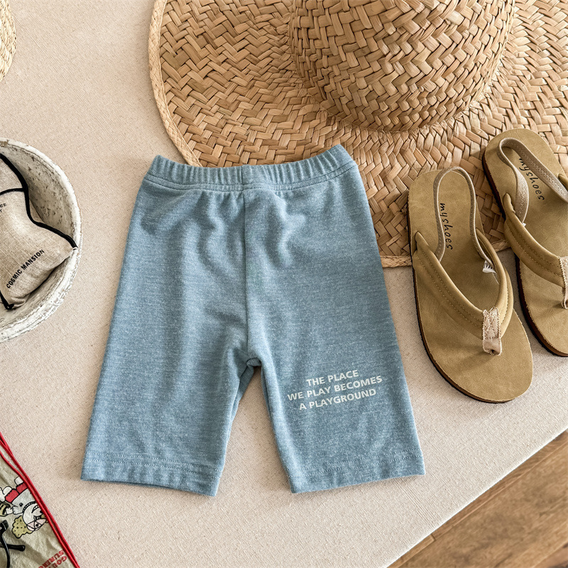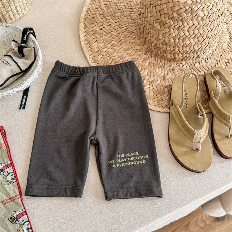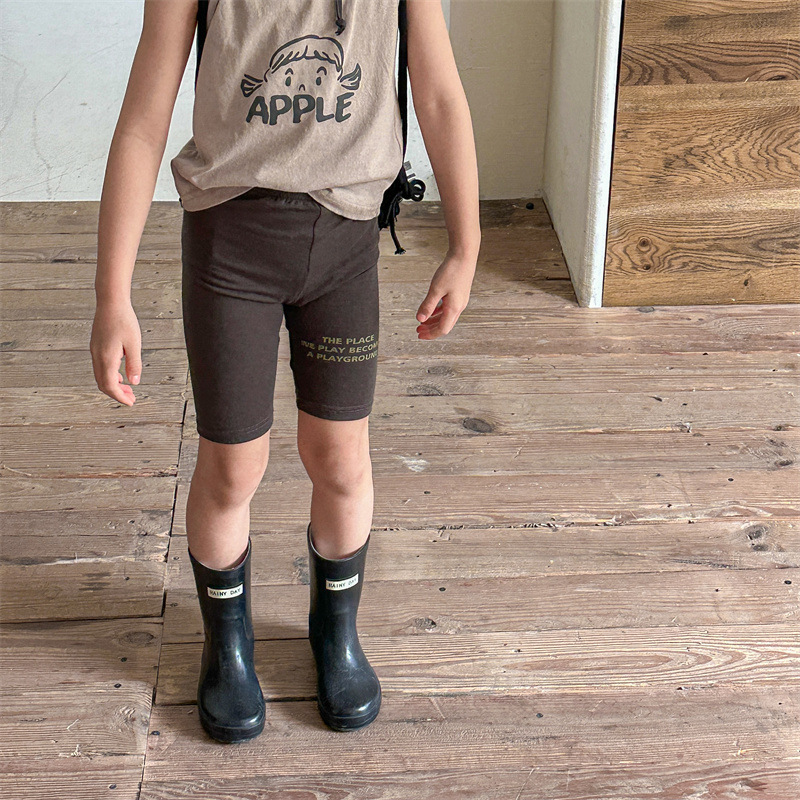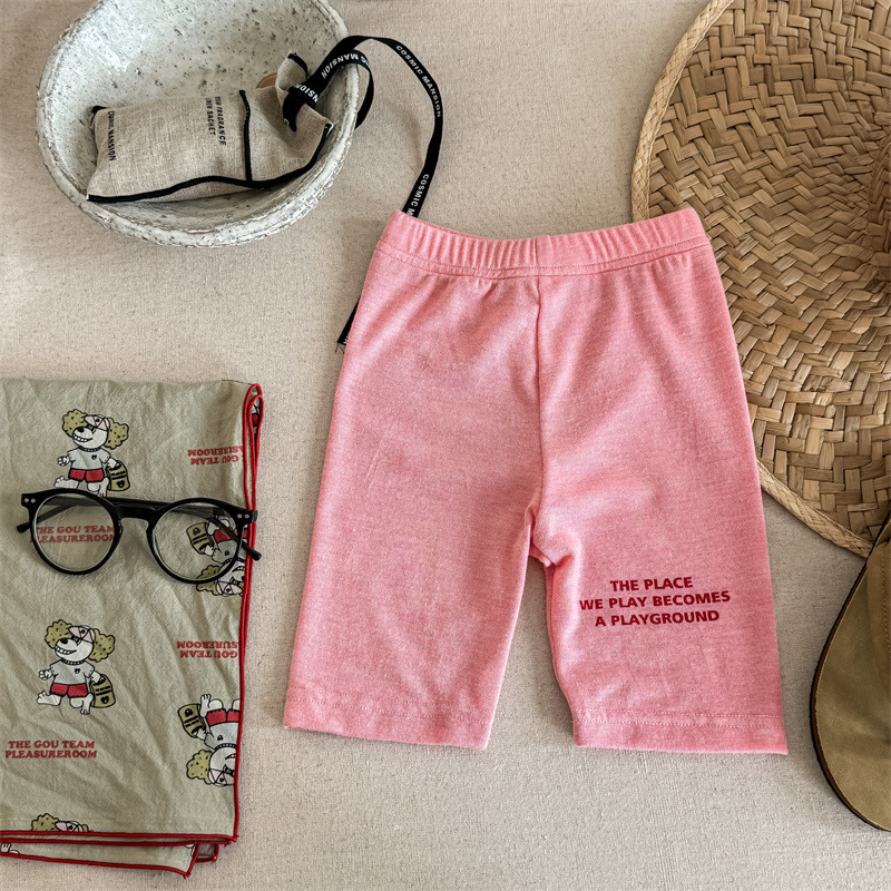 2024 여름 어린이 스트레치 바지 소녀의 편지 인쇄 슬림 핏 레깅스 승마 바지 요가 바지 중간 바지