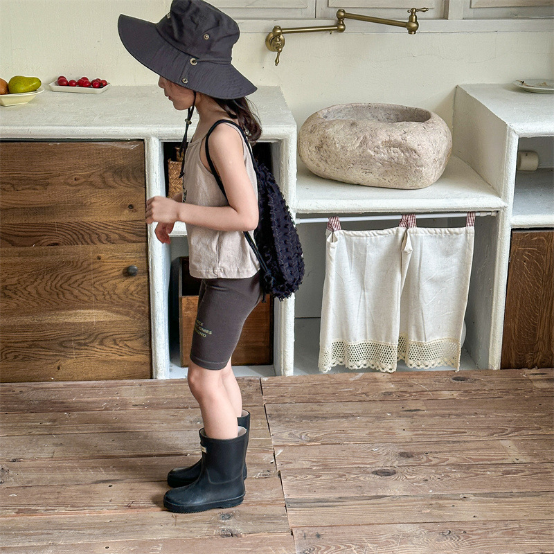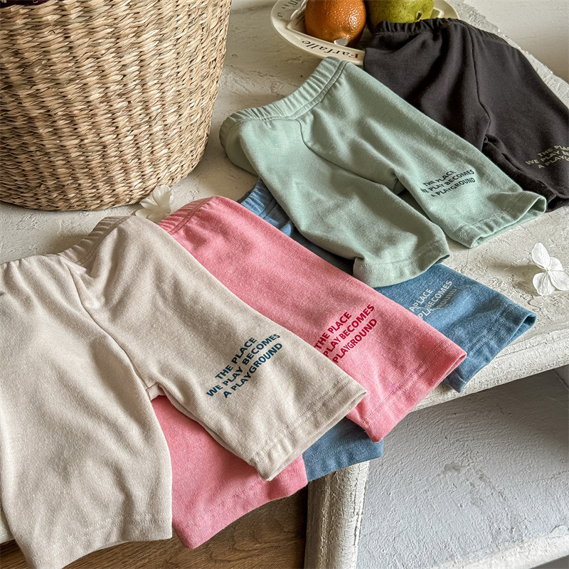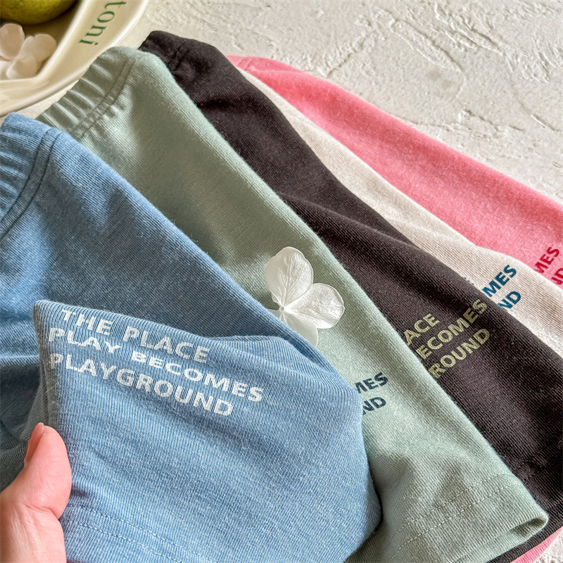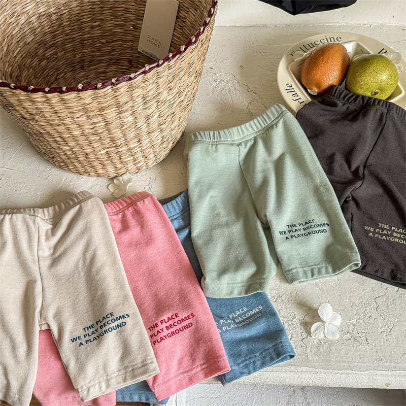 2024 여름 어린이 스트레치 바지 소녀의 편지 인쇄 슬림 핏 레깅스 승마 바지 요가 바지 중간 바지스토어 가기
