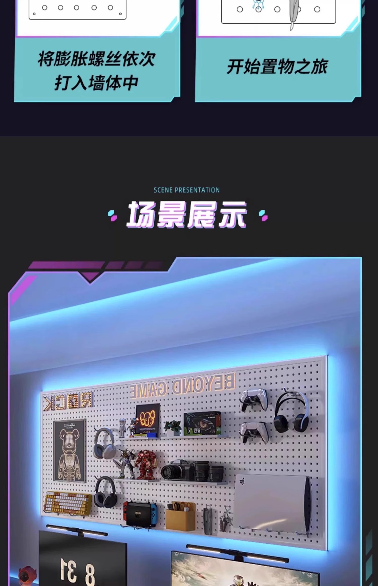 연구 벽 교수형 보드 저장 단철 파티션 위에 전자 스포츠 룸 동굴 보드 검은 벽 선반 컴퓨터 책상스토어 가기