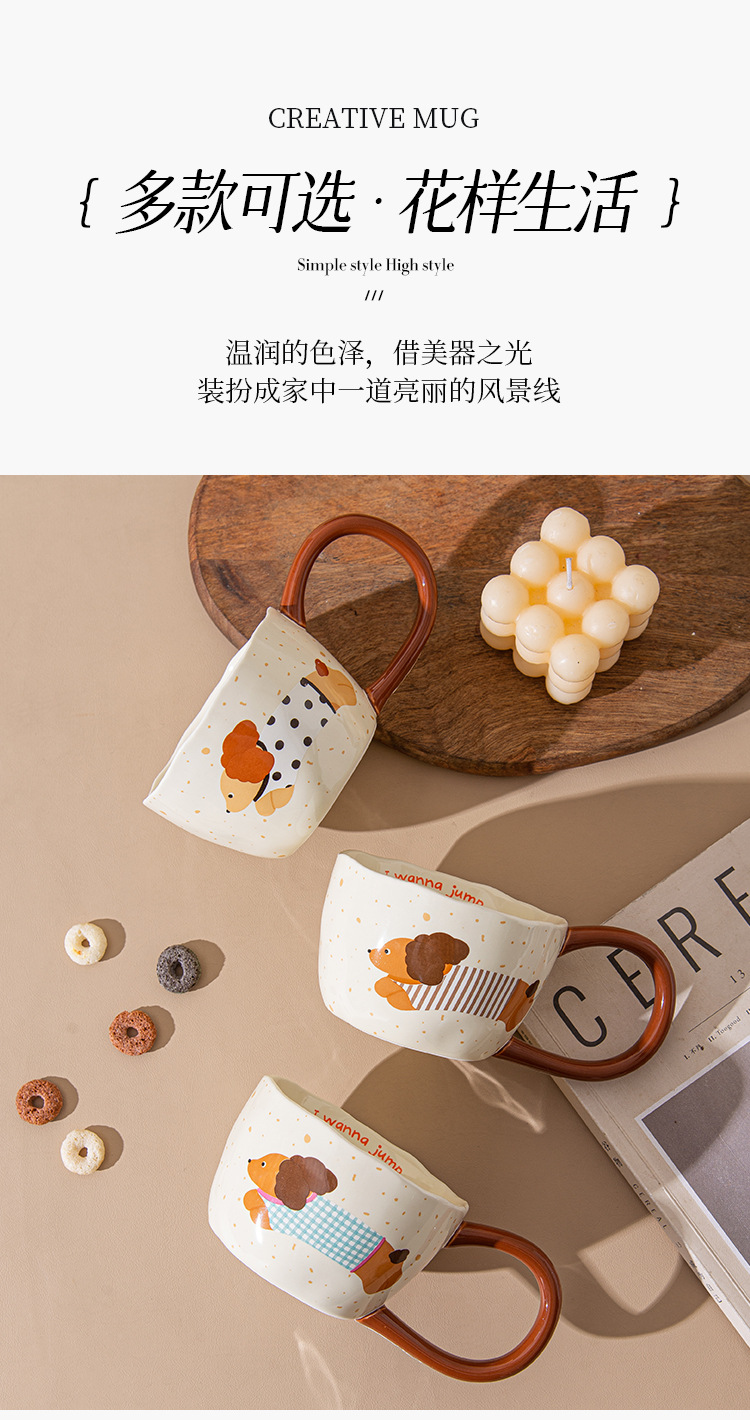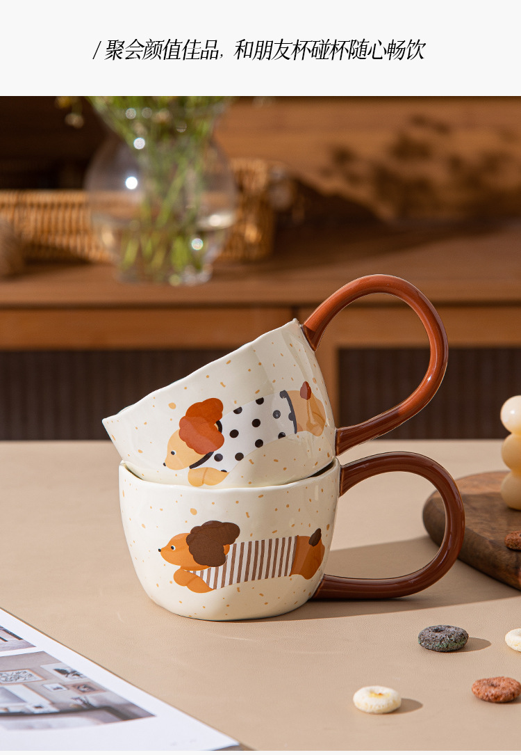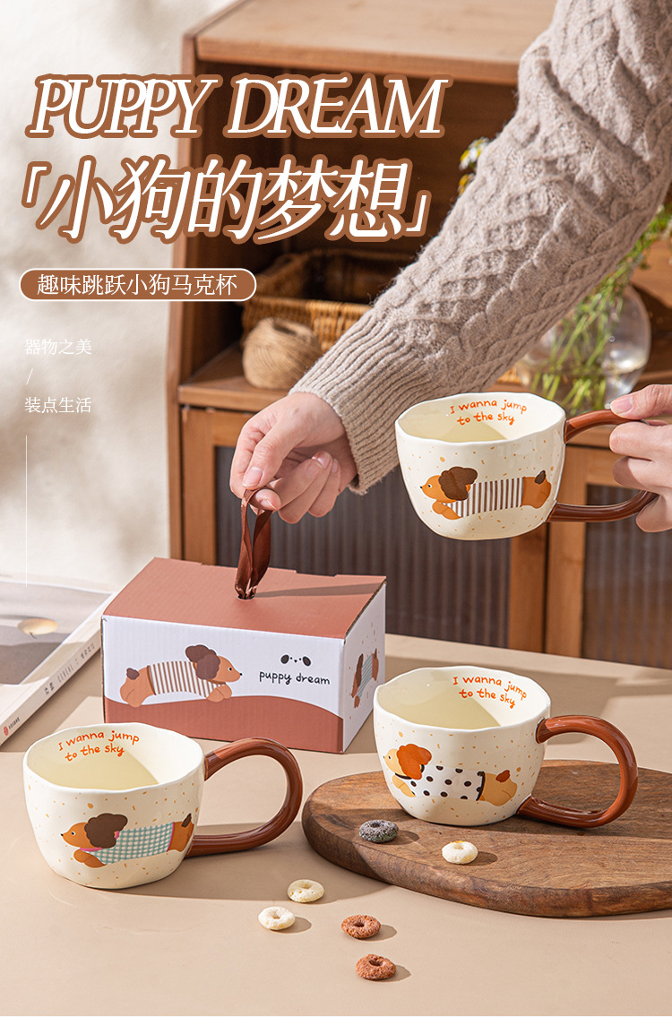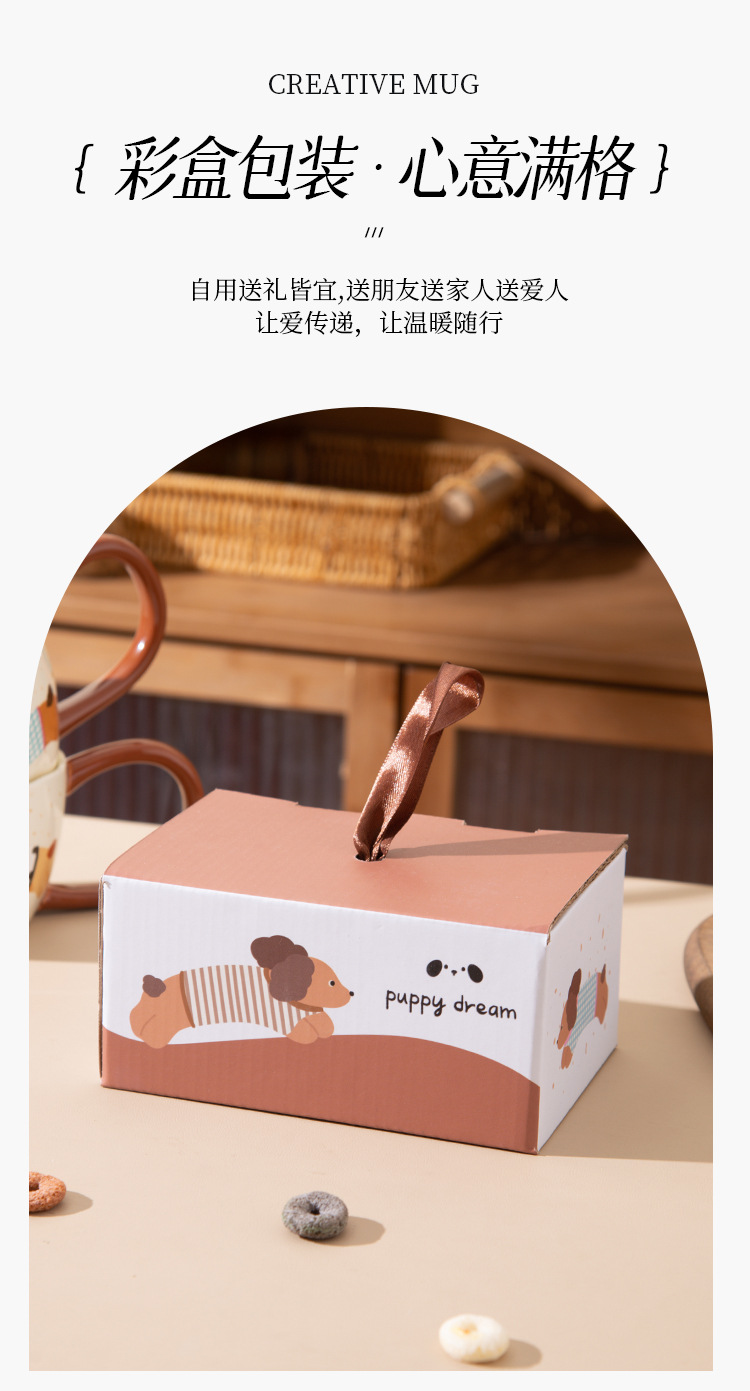 강아지 머그컵 보호 만화 큰 귀 세라믹 컵 높은 색상 가치 인 풍수 컵 손 선물 벨트 선물 상자스토어 가기