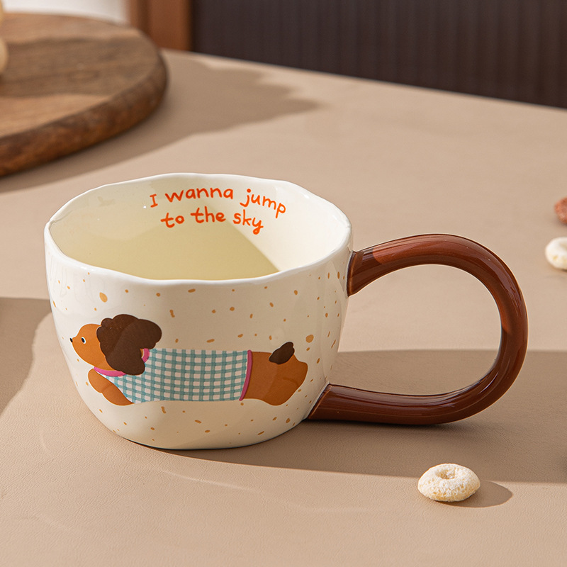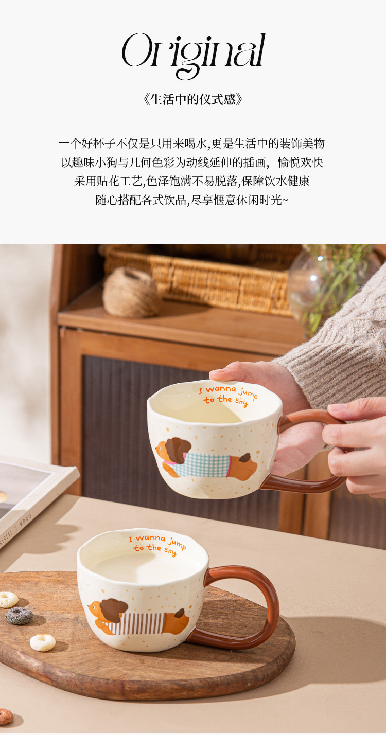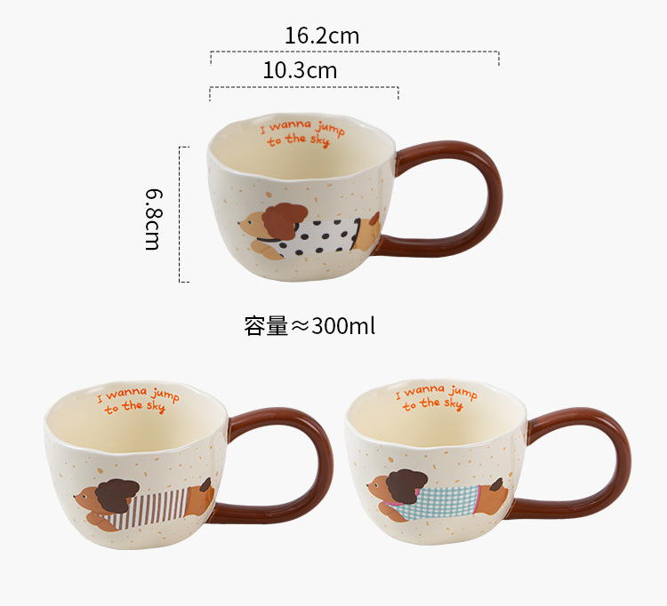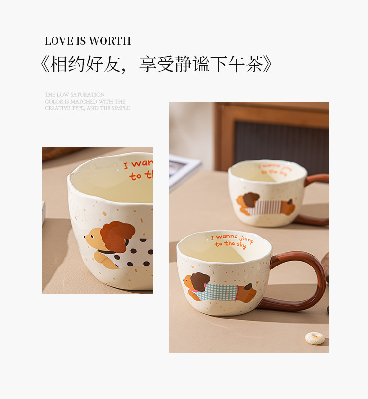강아지 머그컵 보호 만화 큰 귀 세라믹 컵 높은 색상 가치 인 풍수 컵 손 선물 벨트 선물 상자스토어 가기