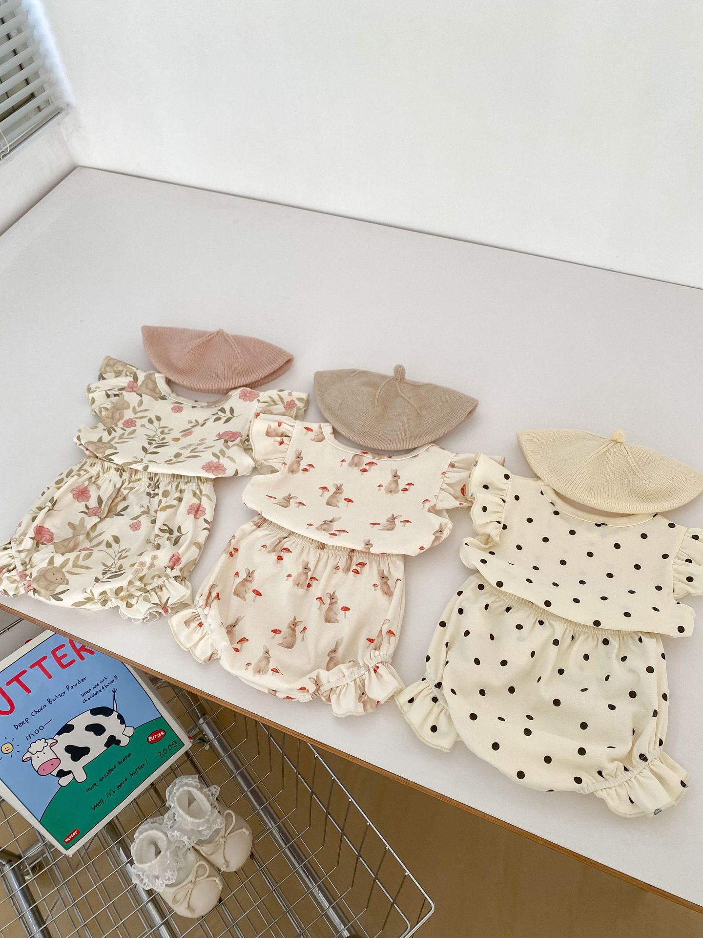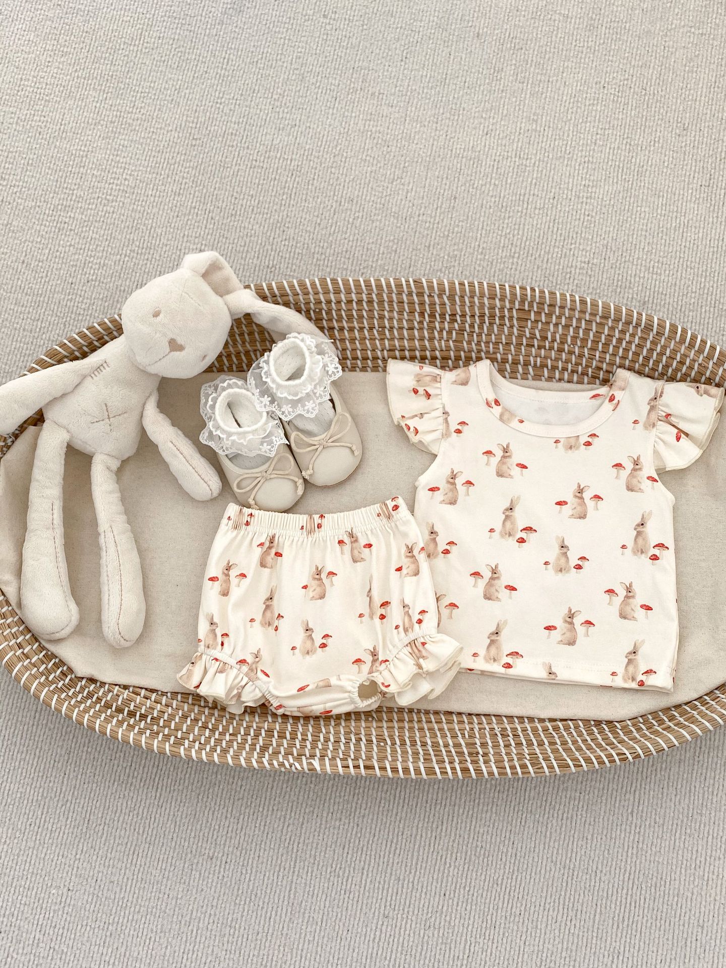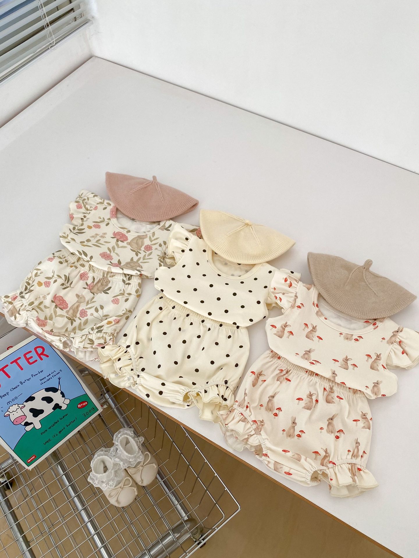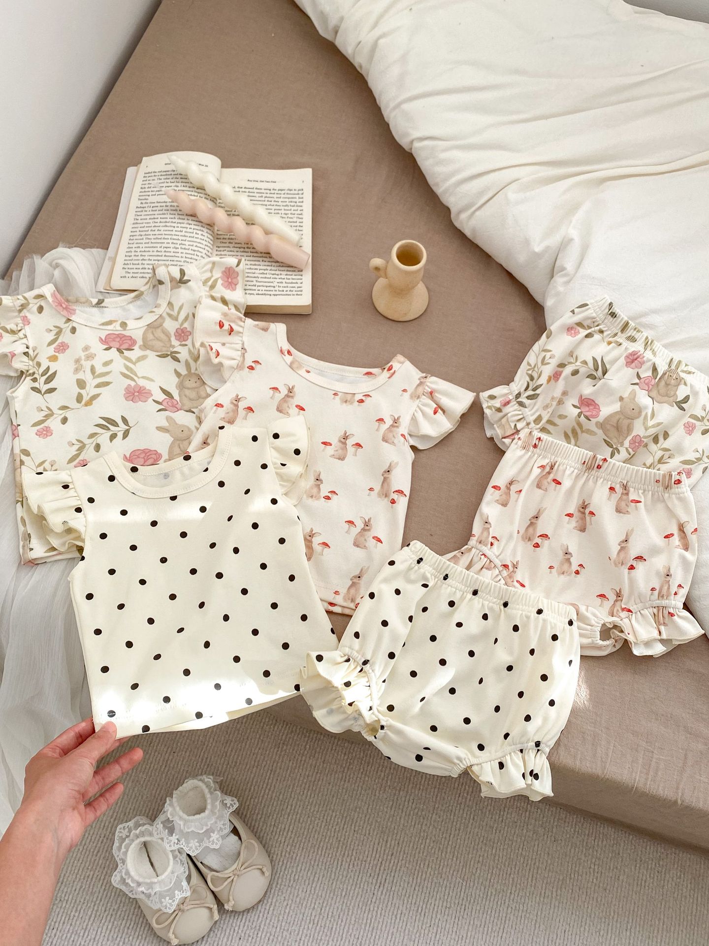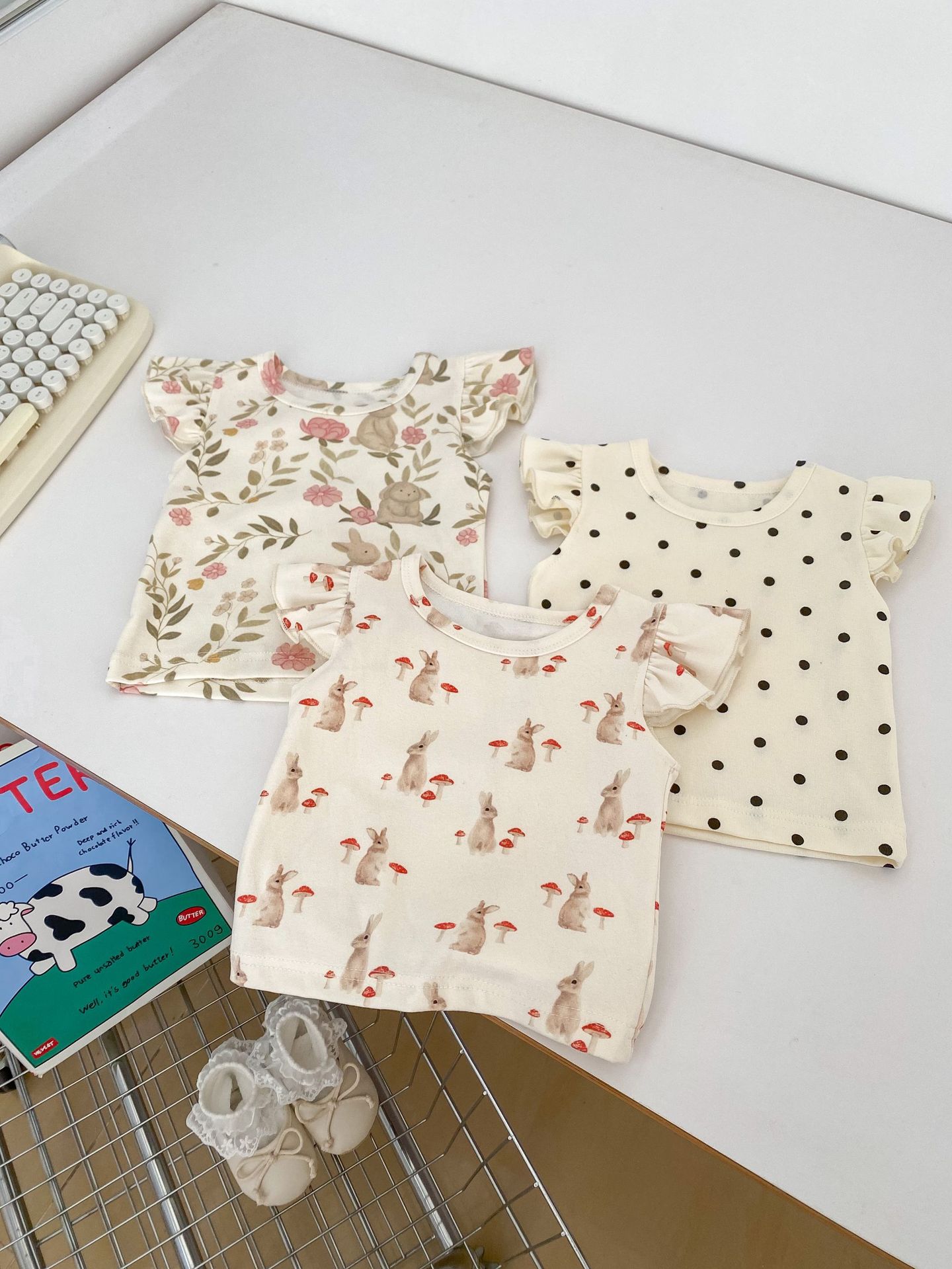 INS 새 아기 소녀 여름 아동 의류 귀여운 토끼 인쇄 플라잉 슬리브 탑 레이스 반바지 소녀 정장스토어 가기