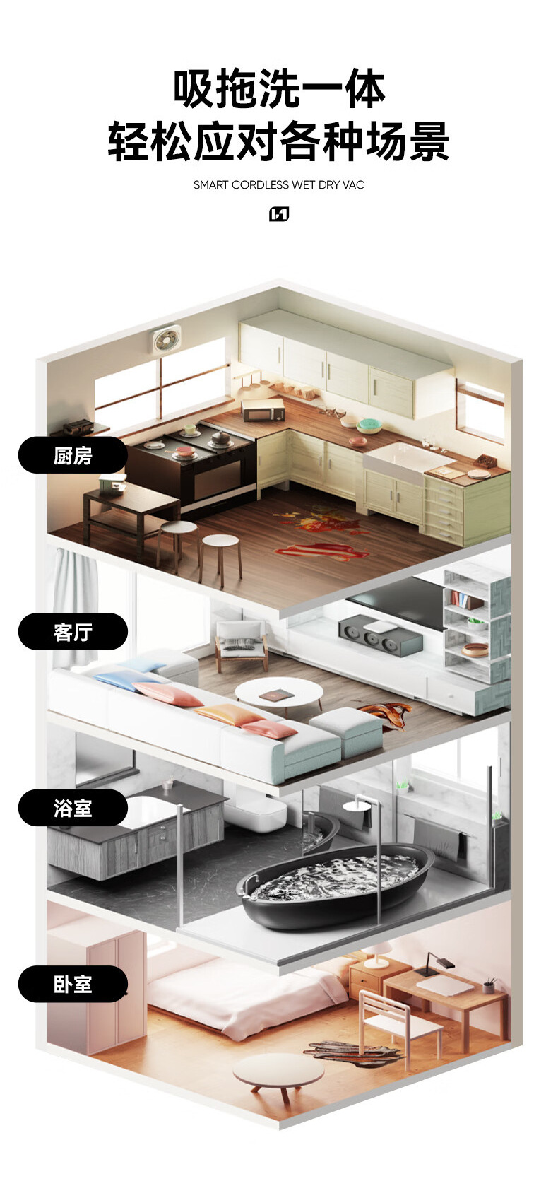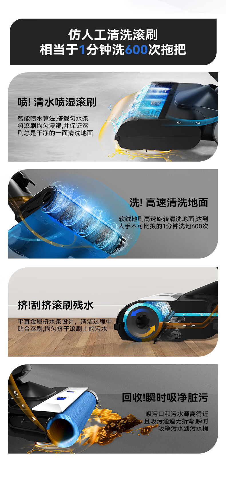 智能语音无线手推式吸拖洗一体机自洁贴边无死角多功能拖地洗地机