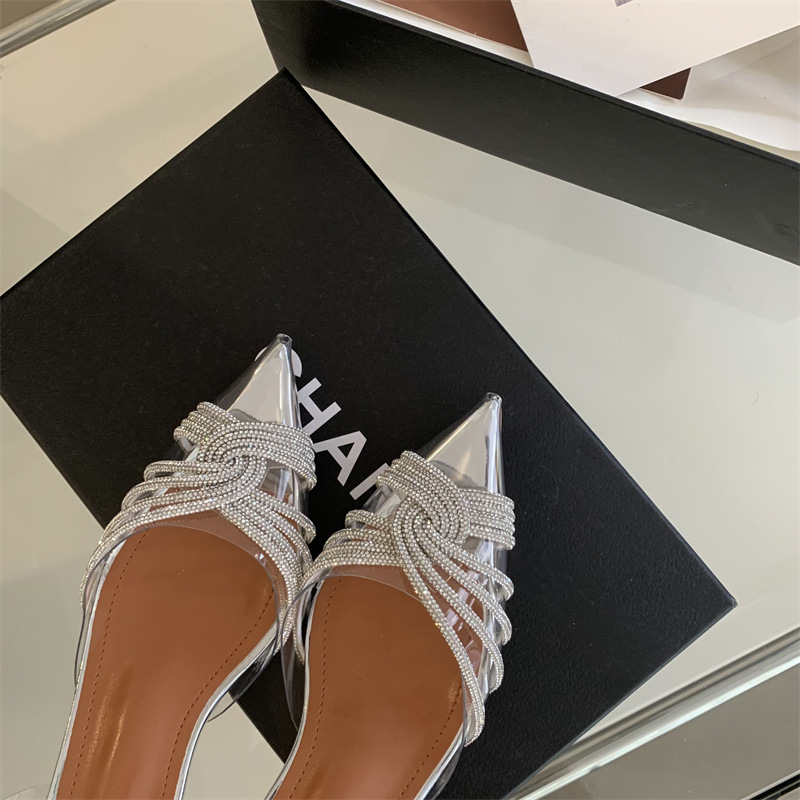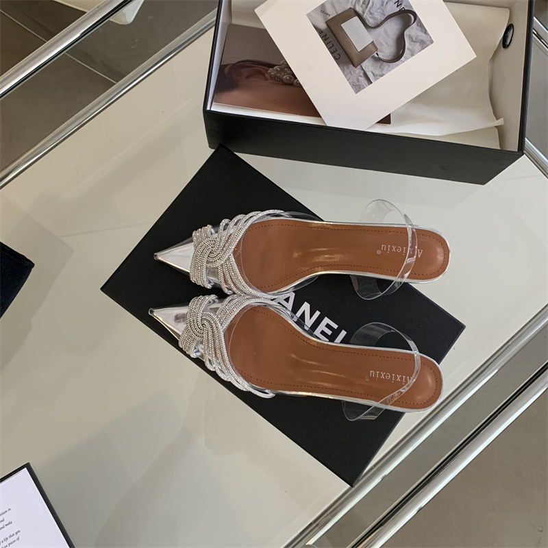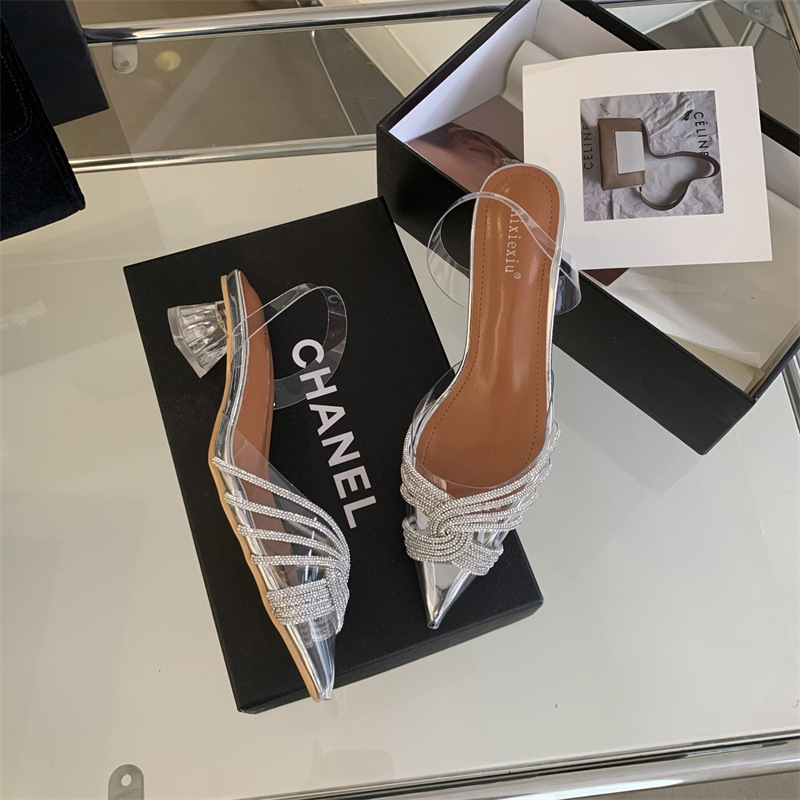 2026년 봄 신상 크로스보더 공장 도매 패션 슬립온 통굽 투명 하이힐
