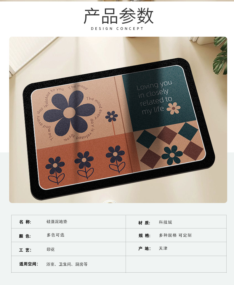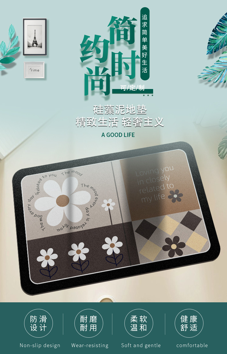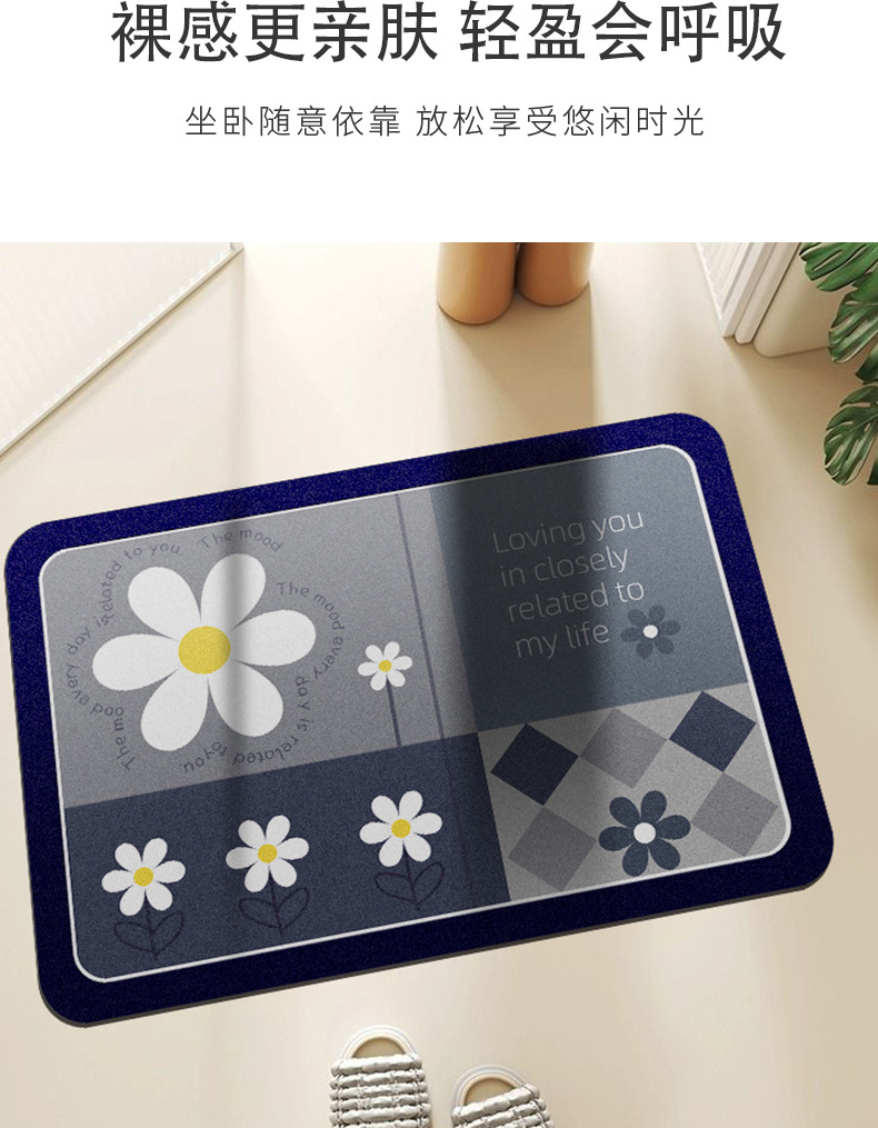만화 꽃무늬 욕실 흡수 매트, 빠른 건조 미끄럼 방지 매트, 오염 방지 발 매트, 규조토 매트, 현관 매트