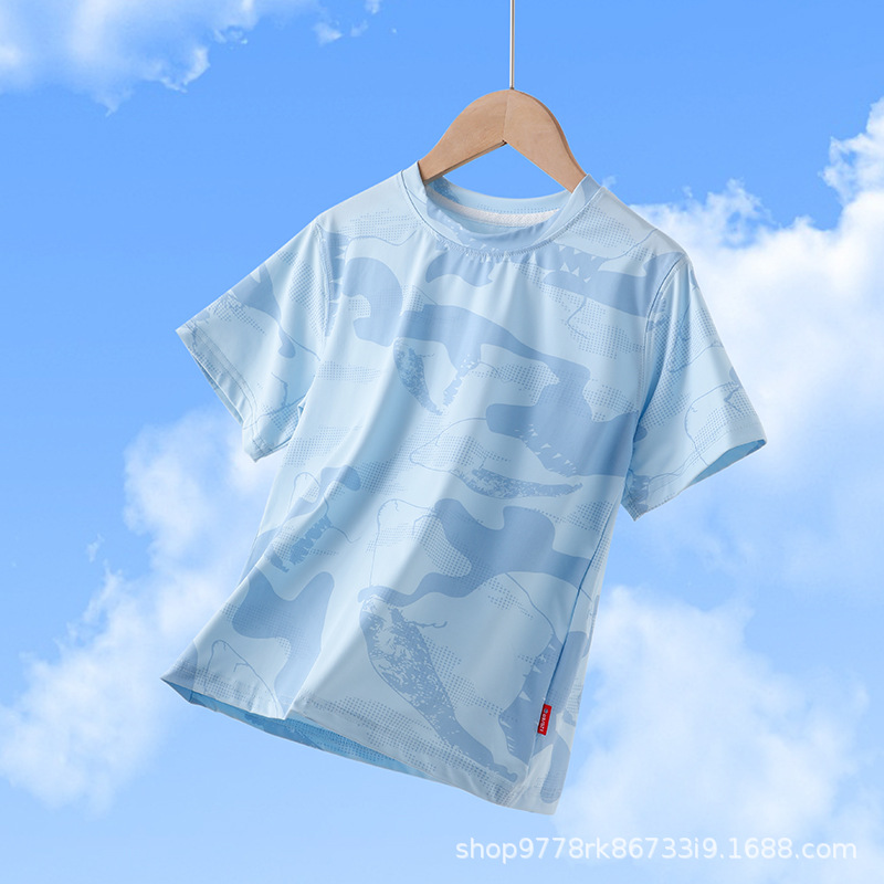 어린이 스포츠 티셔츠 여름 얇은 통기성 속건 의류 반팔 소녀 위장 t 여름 착용 2025 새로운 바닥 셔츠스토어 가기