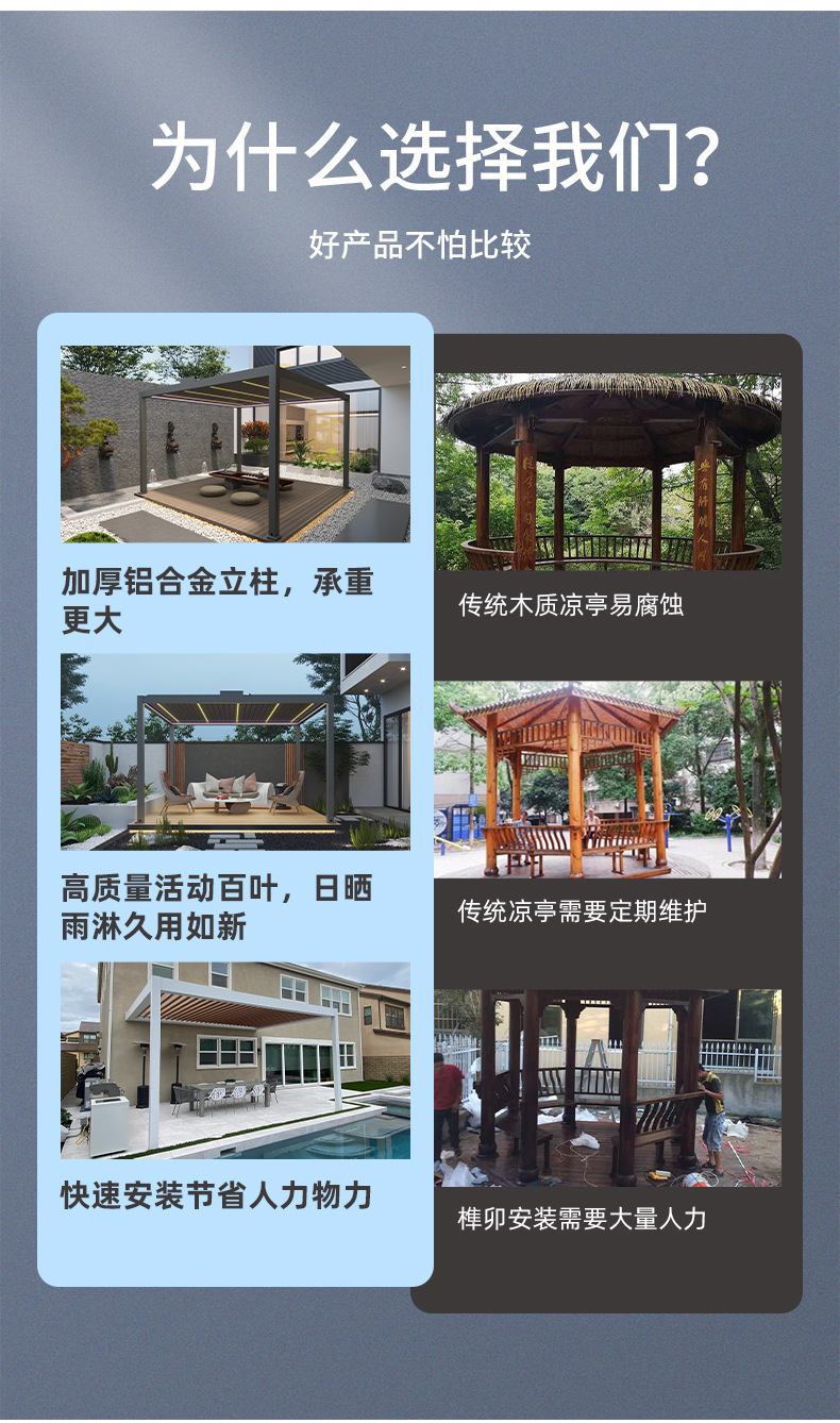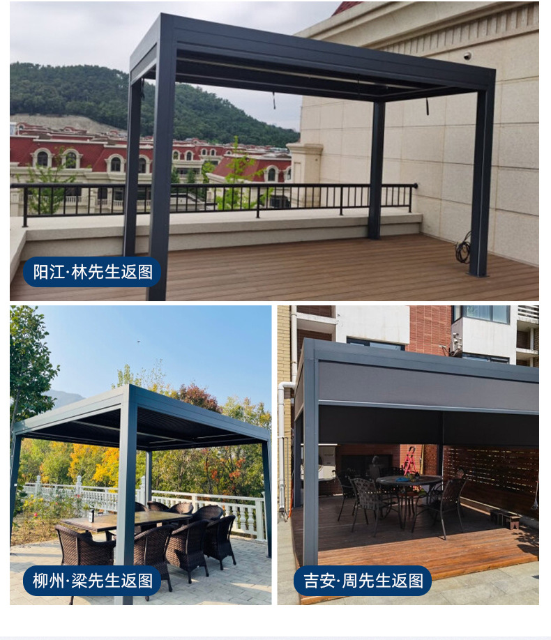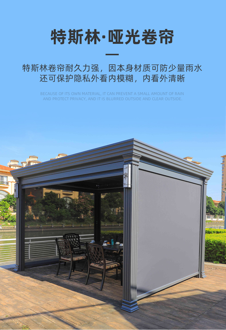 공장 직접 지능형 전기 알루미늄 합금 새로운 중국 스타일 파빌리온 새로운 시대 파빌리온은 방풍, 방비 및 차양을 제어 할 수 있습니다스토어 가기