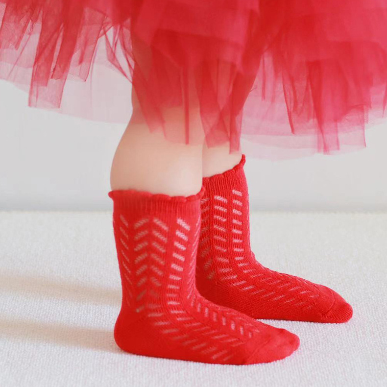 봄과 여름 얇은 통기성 메쉬 아기 아기 일반 양말 탕 원피스 거즈 스커트와 빨간 생일 원피스 양말