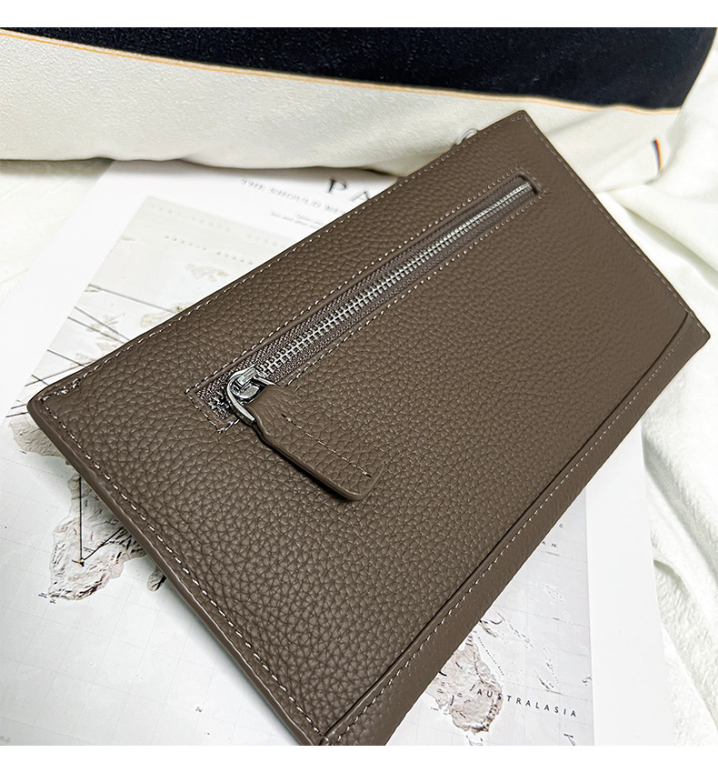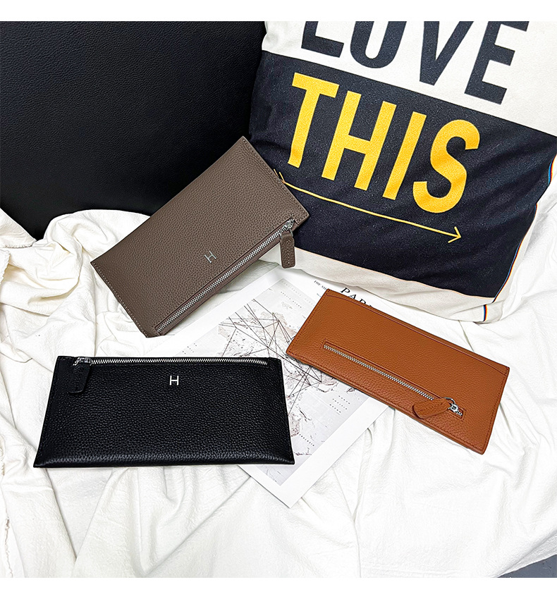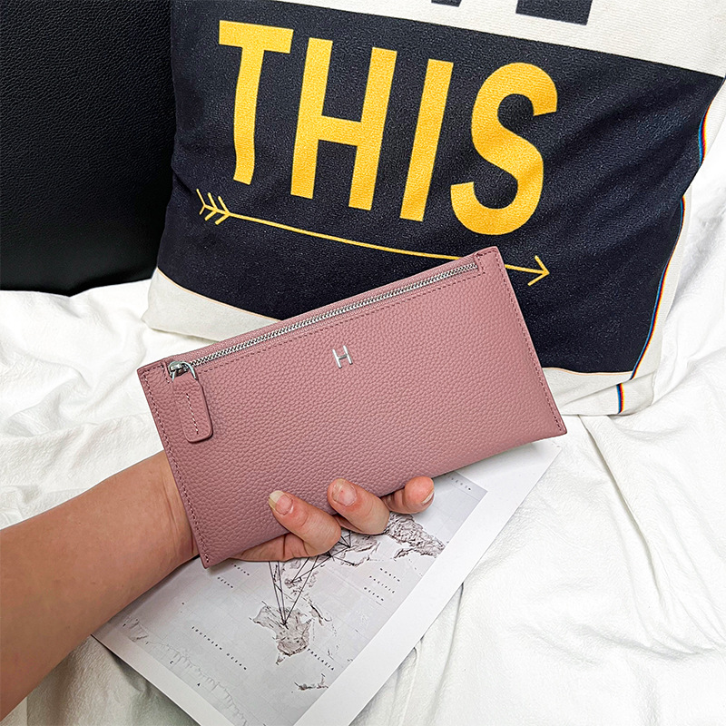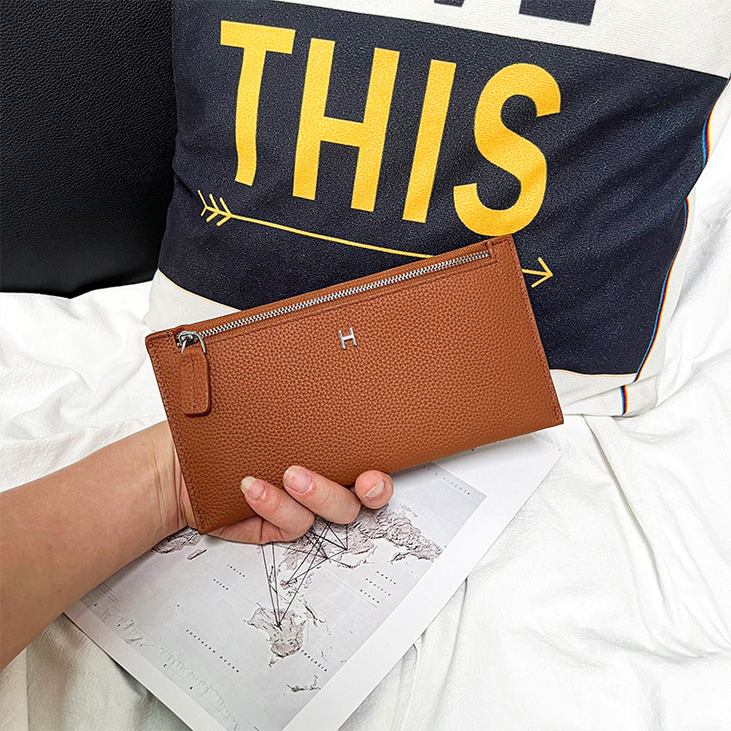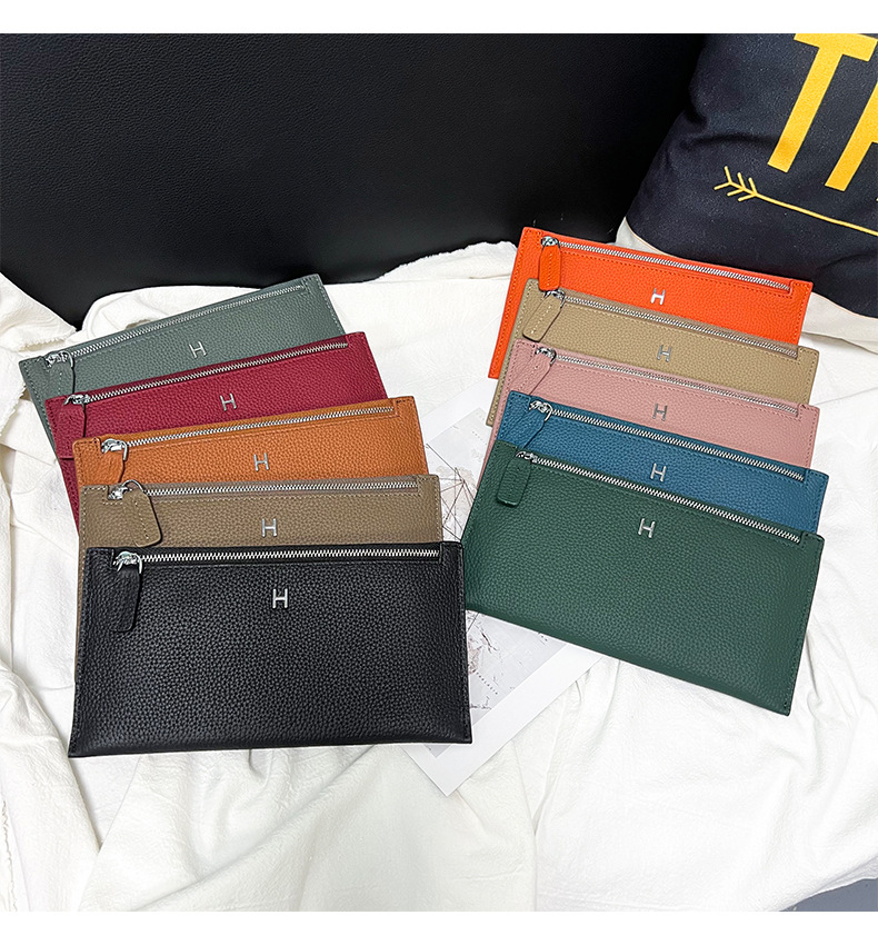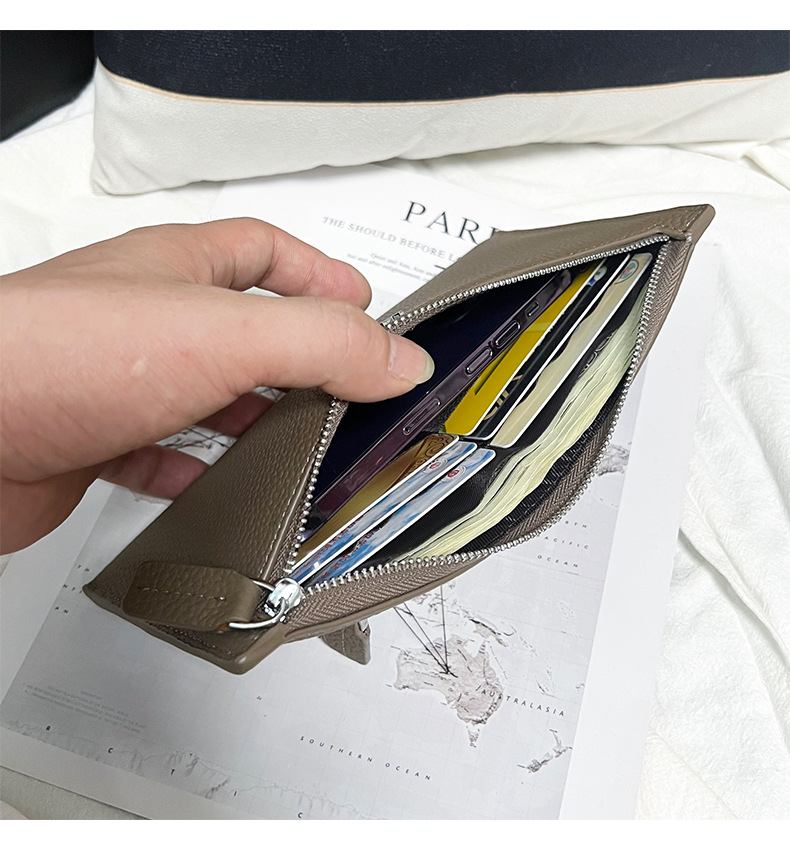 여성용 1층 소가죽 장지갑 2025 신형 초박형 휴대용 휴대폰 가방 카드홀더 정품 가죽 심플 지퍼 지갑스토어 가기