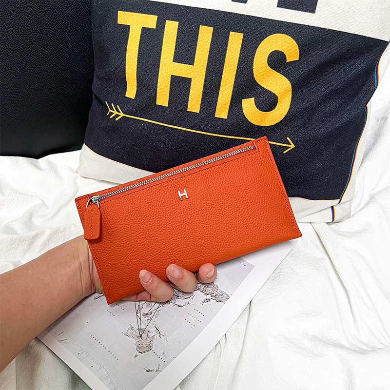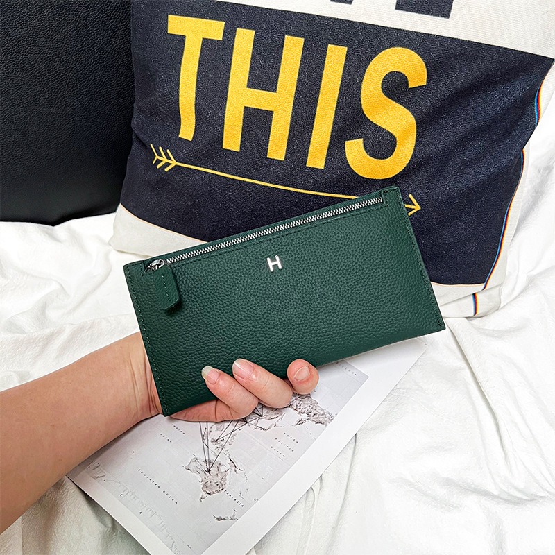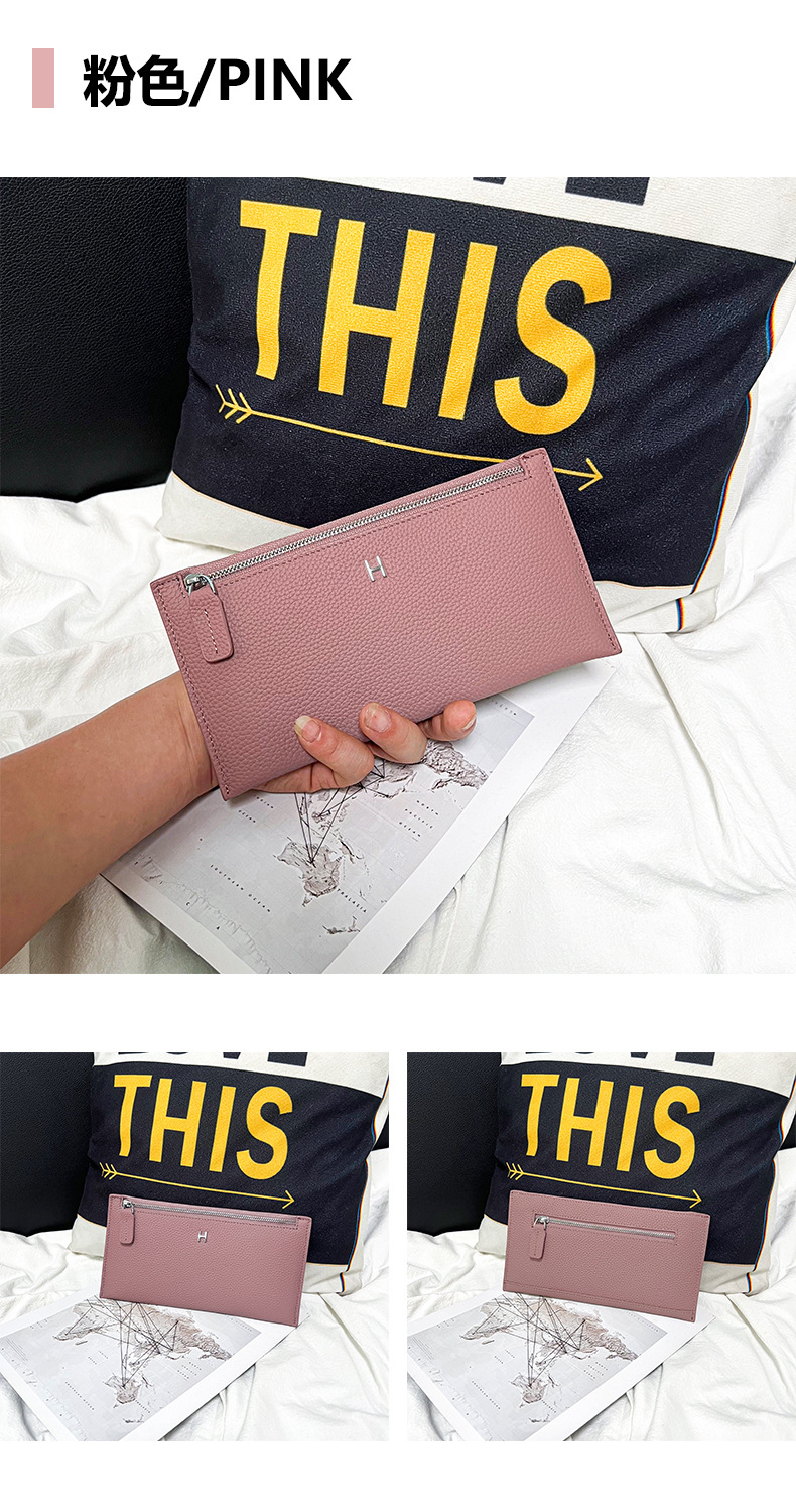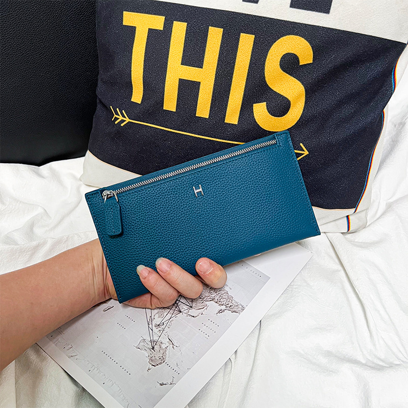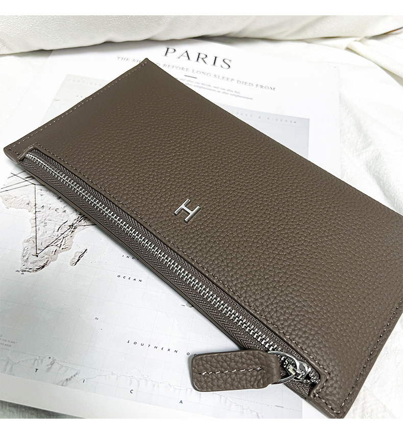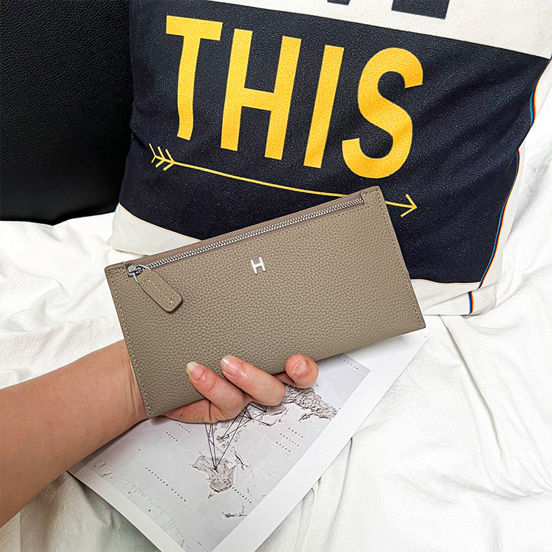 여성용 1층 소가죽 장지갑 2025 신형 초박형 휴대용 휴대폰 가방 카드홀더 정품 가죽 심플 지퍼 지갑스토어 가기