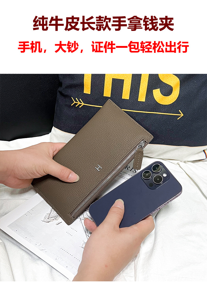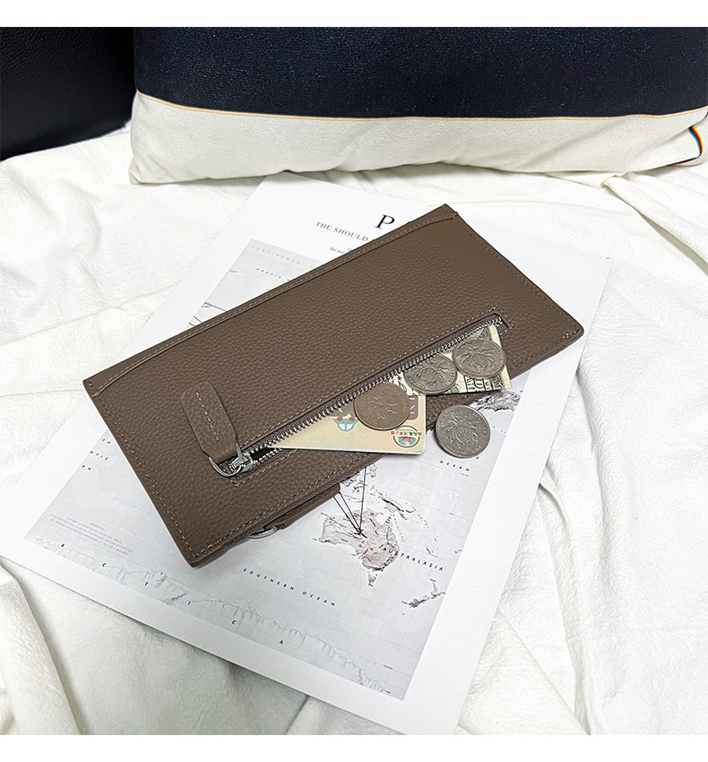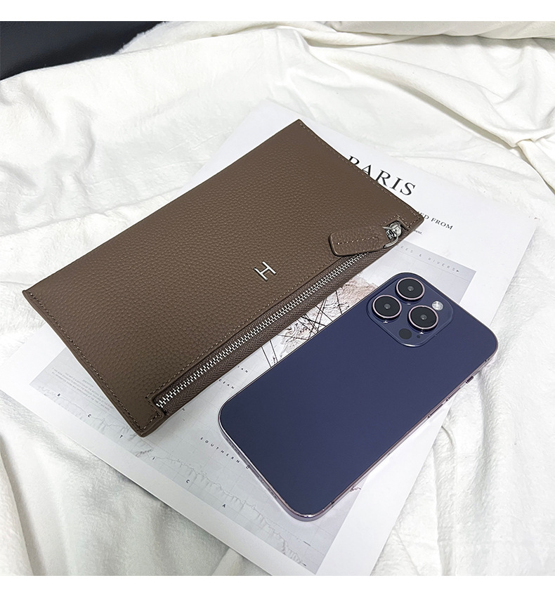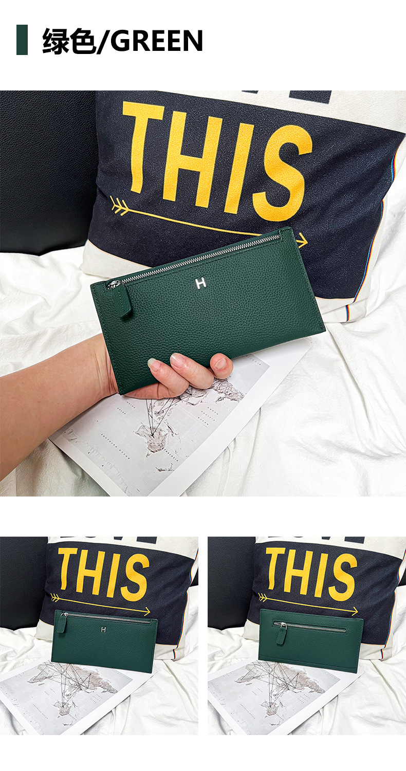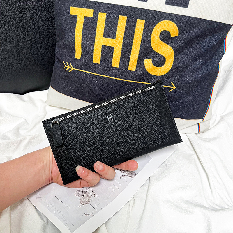 여성용 1층 소가죽 장지갑 2025 신형 초박형 휴대용 휴대폰 가방 카드홀더 정품 가죽 심플 지퍼 지갑스토어 가기