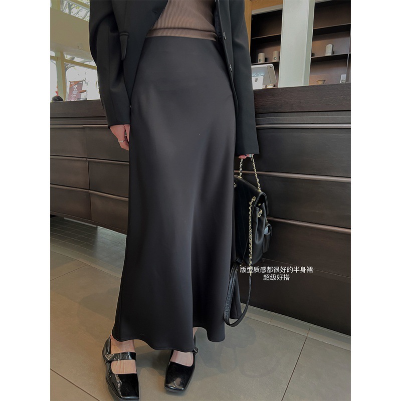 유행 고급 부드러운 사틴 느슨한 피쉬 스커트 여성의 2024 여름 새로운 높은 허리 긴 패션 스커트스토어 가기