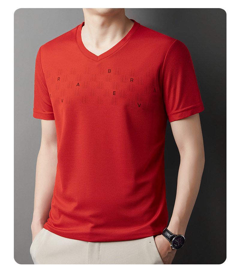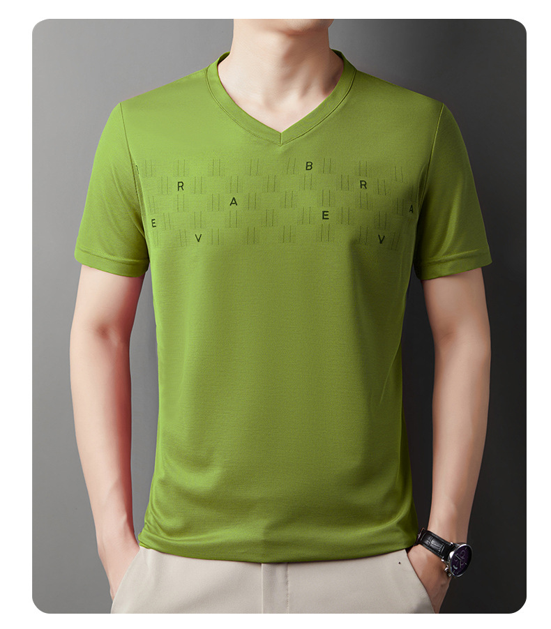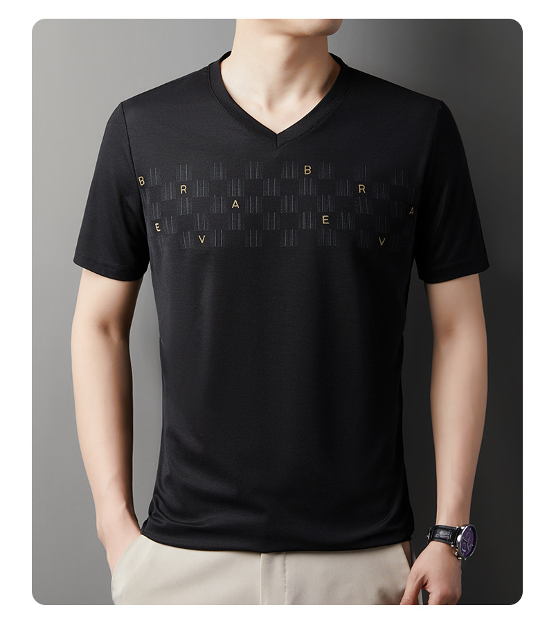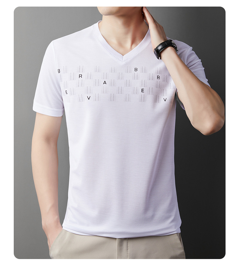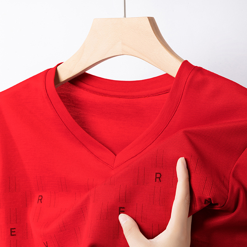 고급 머서리화 코튼 패션 프린트 반팔 티셔츠 남성용 여름 브이넥 캐주얼 탑 쿨 반소매 버팅 셔츠 트렌디 남성용스토어 가기