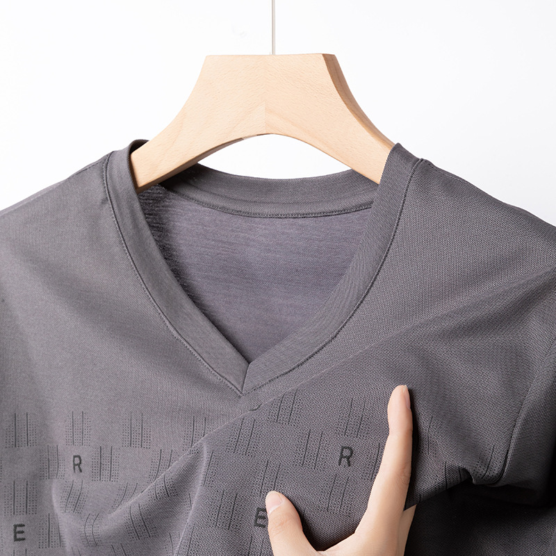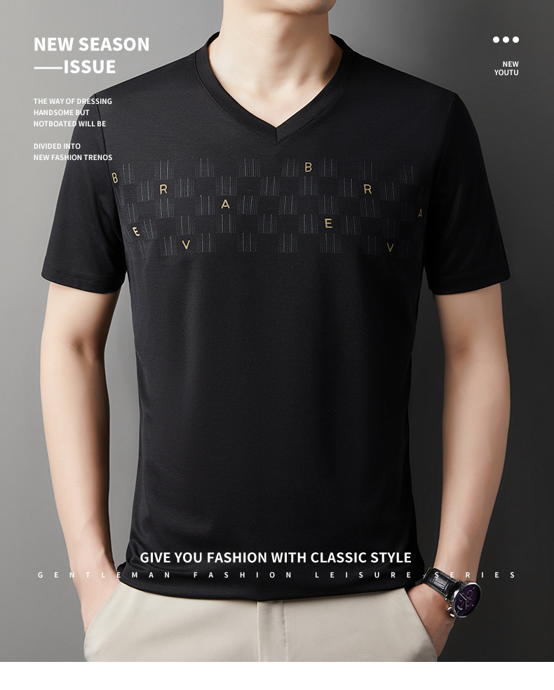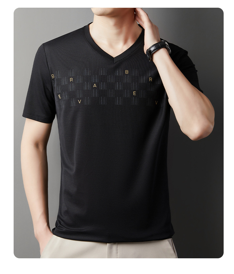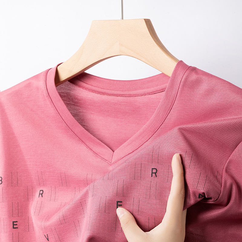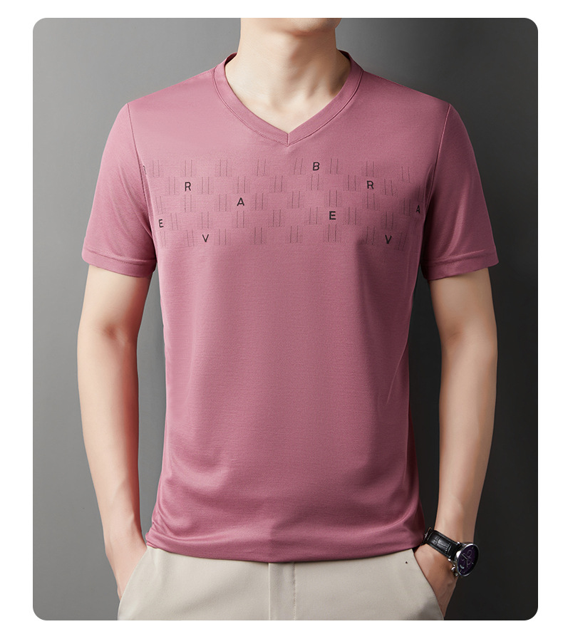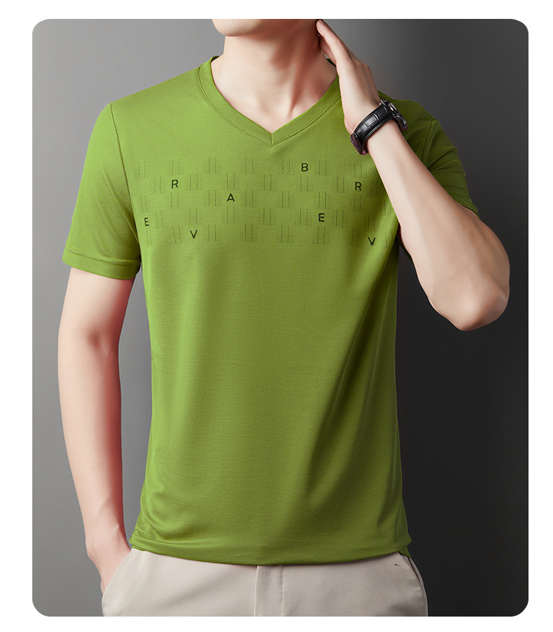고급 머서리화 코튼 패션 프린트 반팔 티셔츠 남성용 여름 브이넥 캐주얼 탑 쿨 반소매 버팅 셔츠 트렌디 남성용스토어 가기