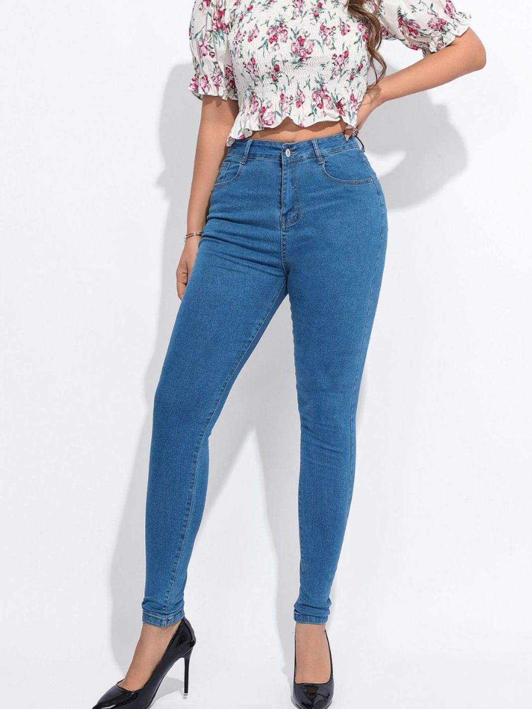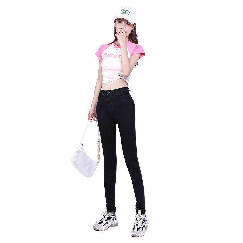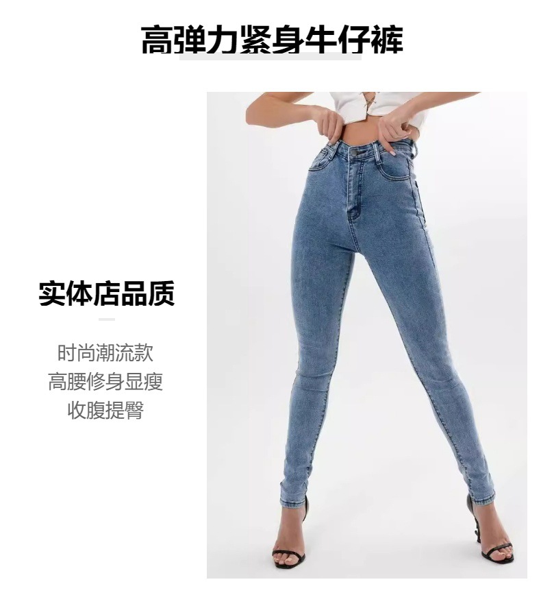 여성 청바지 대외 무역 높은 허리 타이트 레깅스 슬림 블루 통근자 스트레치 청바지 여성의 봄스토어 가기