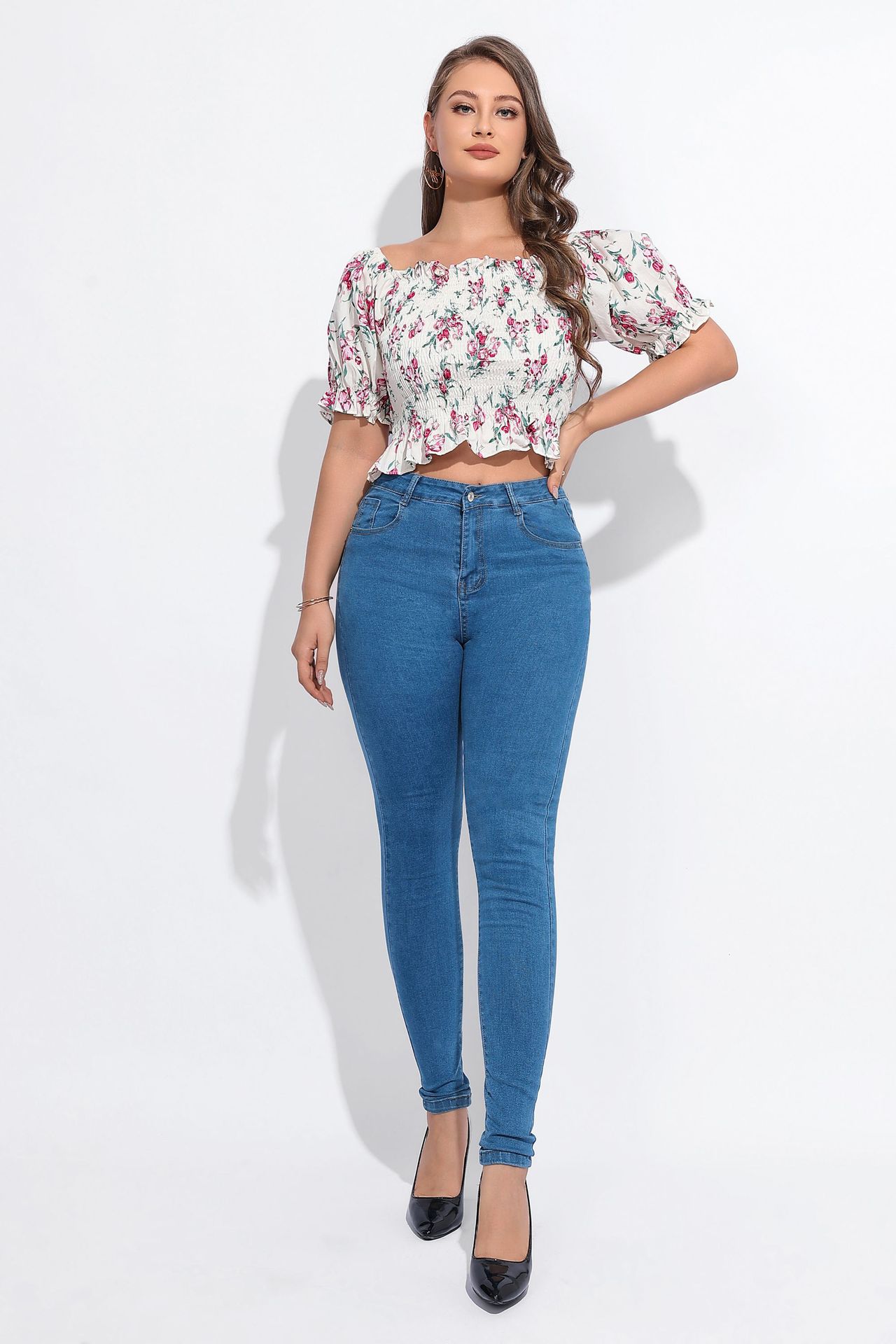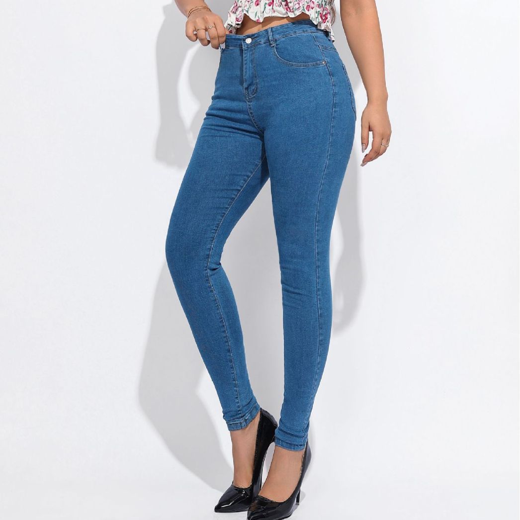여성 청바지 대외 무역 높은 허리 타이트 레깅스 슬림 블루 통근자 스트레치 청바지 여성의 봄