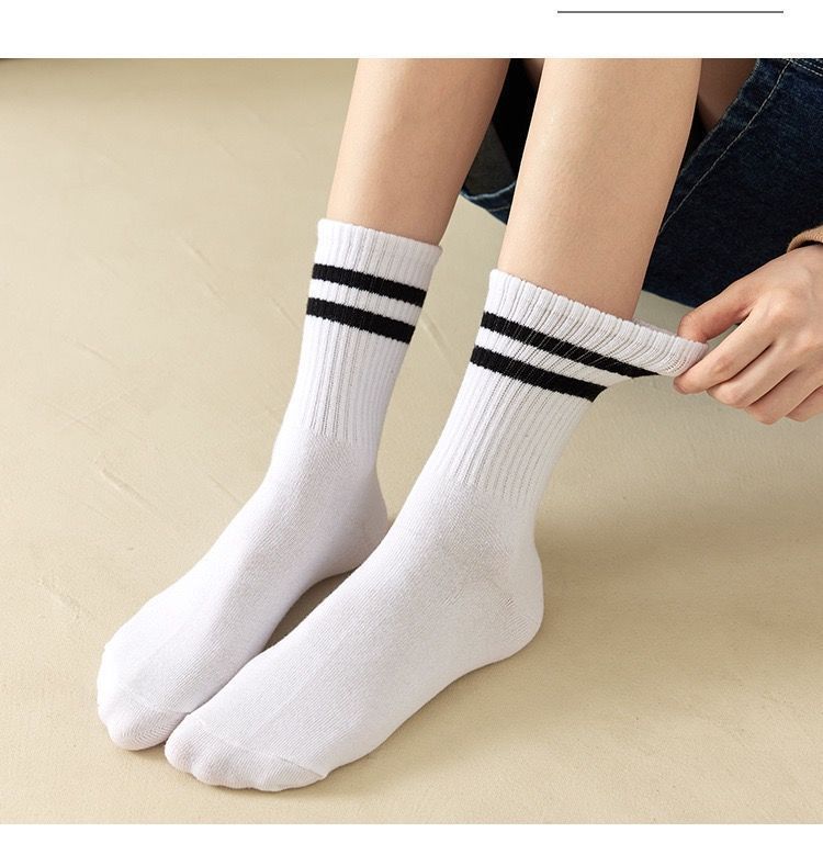 양말 봄 여름 가을 남성과 여성의 높은 스타킹 단색 다재다능한 줄무늬 양말 트렌디 한 학술 스타일 높은 스타킹 도매