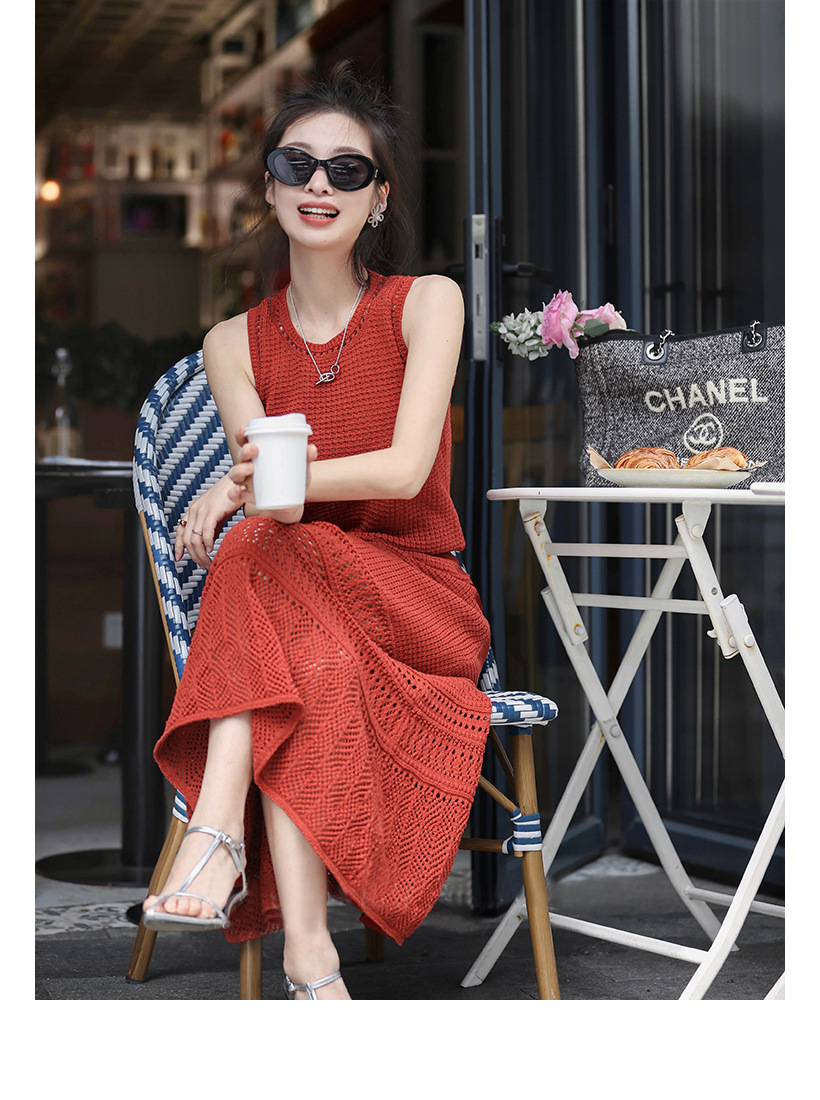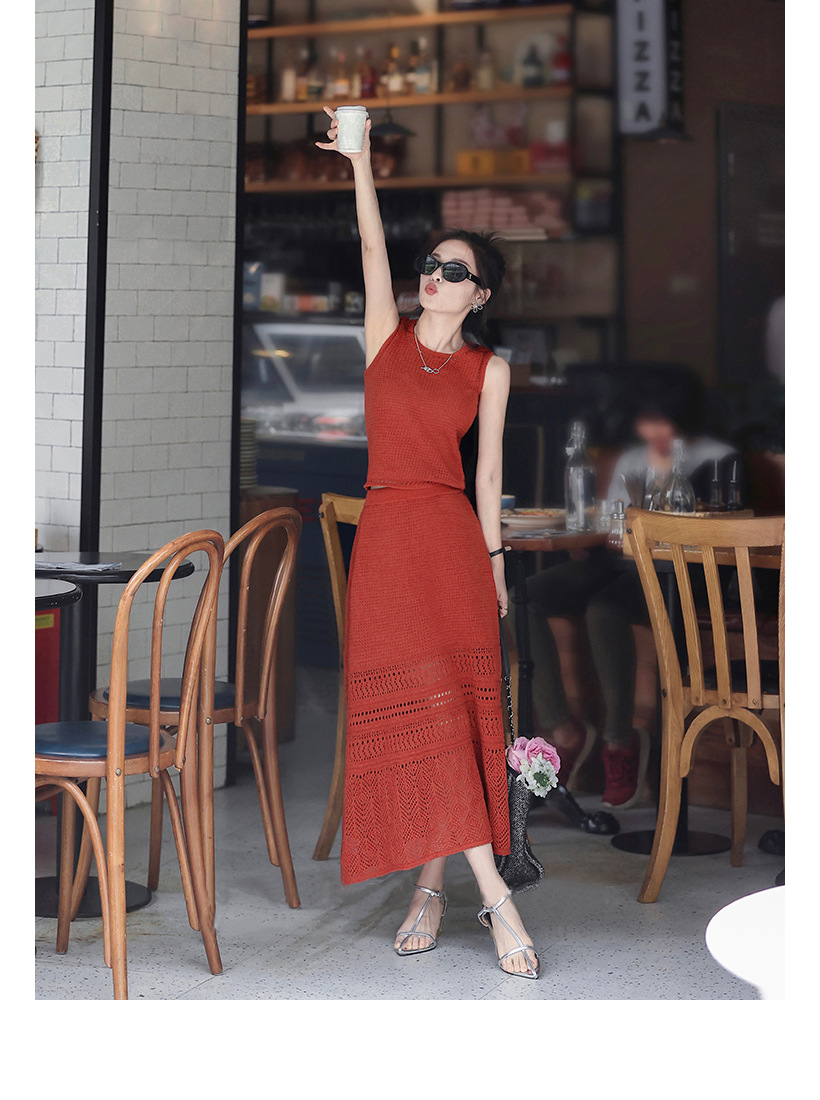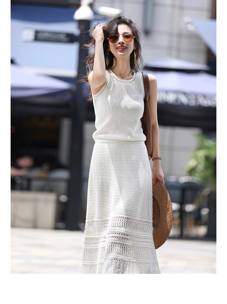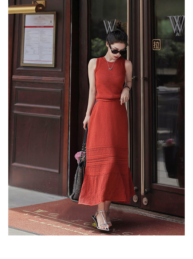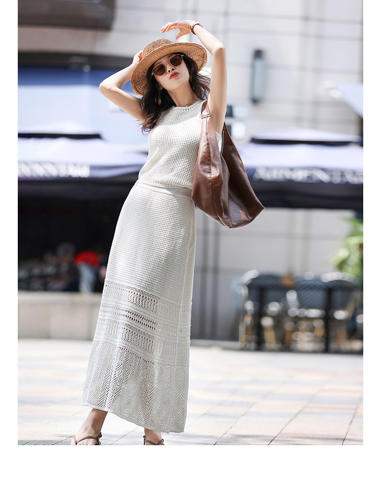 7541 린넨 휴가 스타일 유행 우아한 조끼 치마 세트 여성 여름 새로운 간단한 착용 투피스 세트