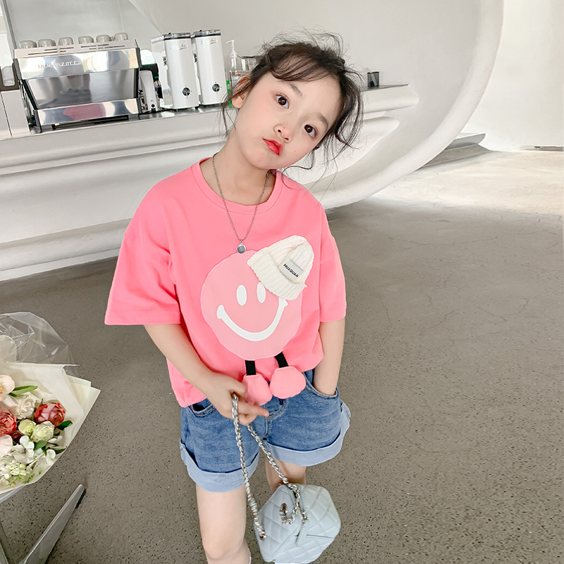 여자 반소매 티셔츠 여름 2024 새로운 스타일 서양식 느슨한 아동복 어린이 여름 반소매 아기의 여름 탑스토어 가기