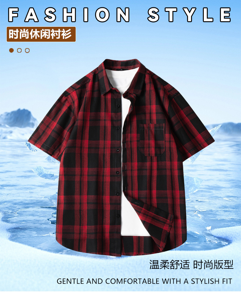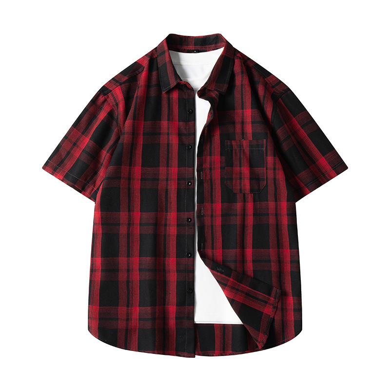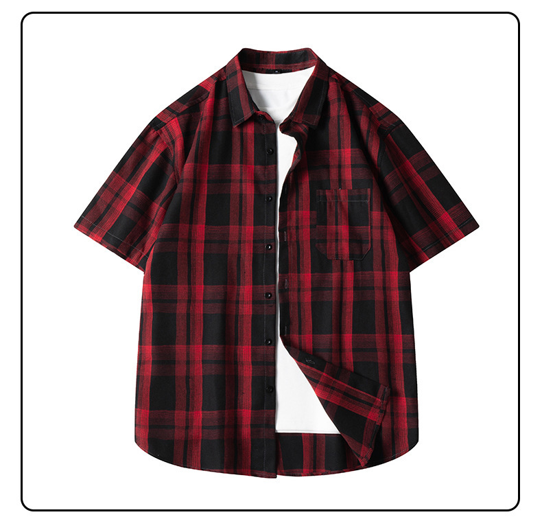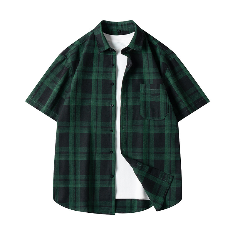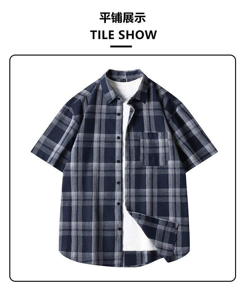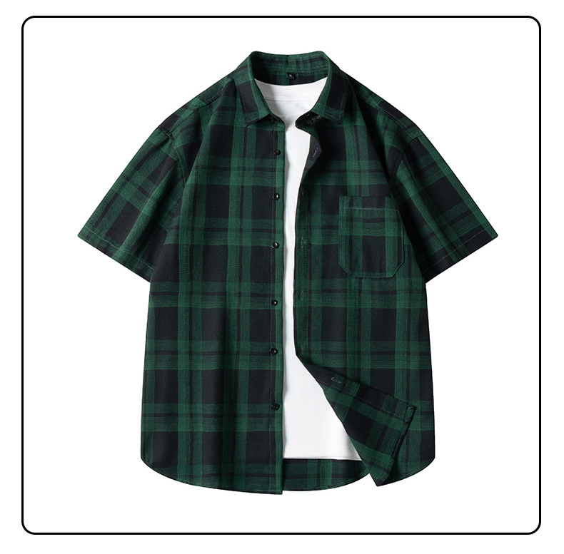 홍콩 스타일 셔츠 남성 여름 반팔 체크 셔츠 남성 패션 브랜드 상위 캐주얼 루즈 재킷스토어 가기