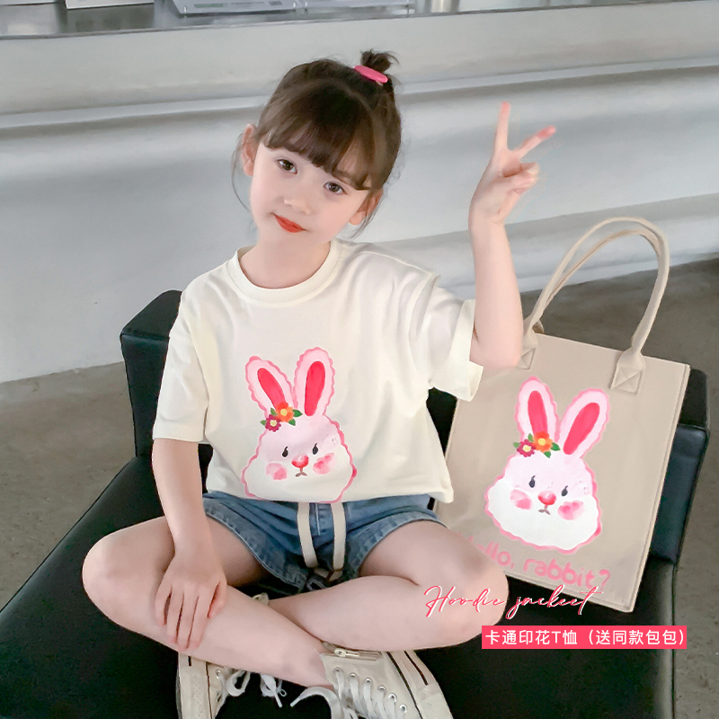 여자 반팔 티셔츠 여름 2024 새로운 도착 서양식 아동복 어린이 여름 반소매 여성 아기의 순면 탑 트렌디스토어 가기