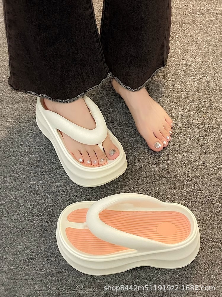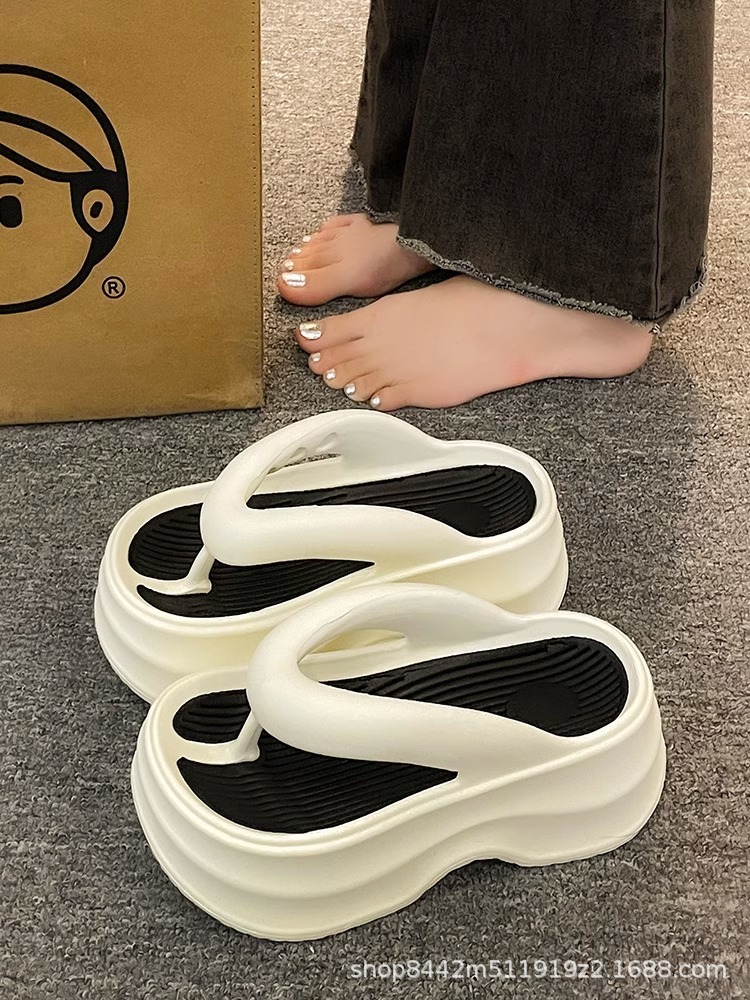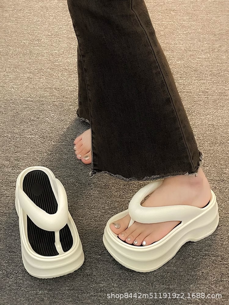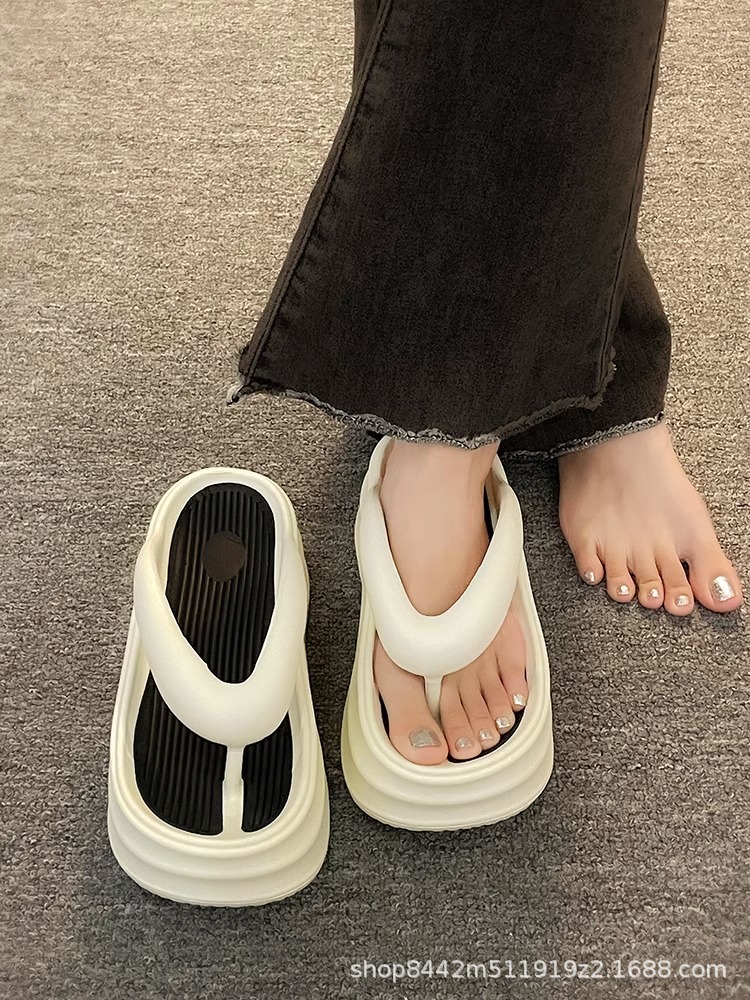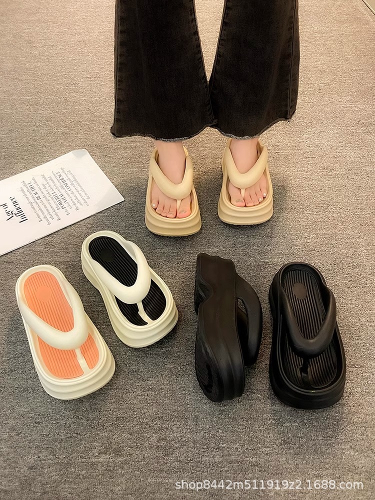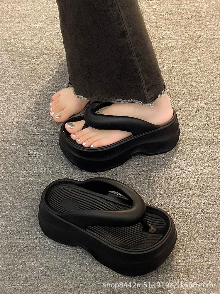 인터넷으로 유명한 두꺼운 바닥 플립 플롭 여성 2024 여름 새로운 스타일 작은 높이 증가 경량 플립 플롭 트렌디 한 비치 슬리퍼스토어 가기
