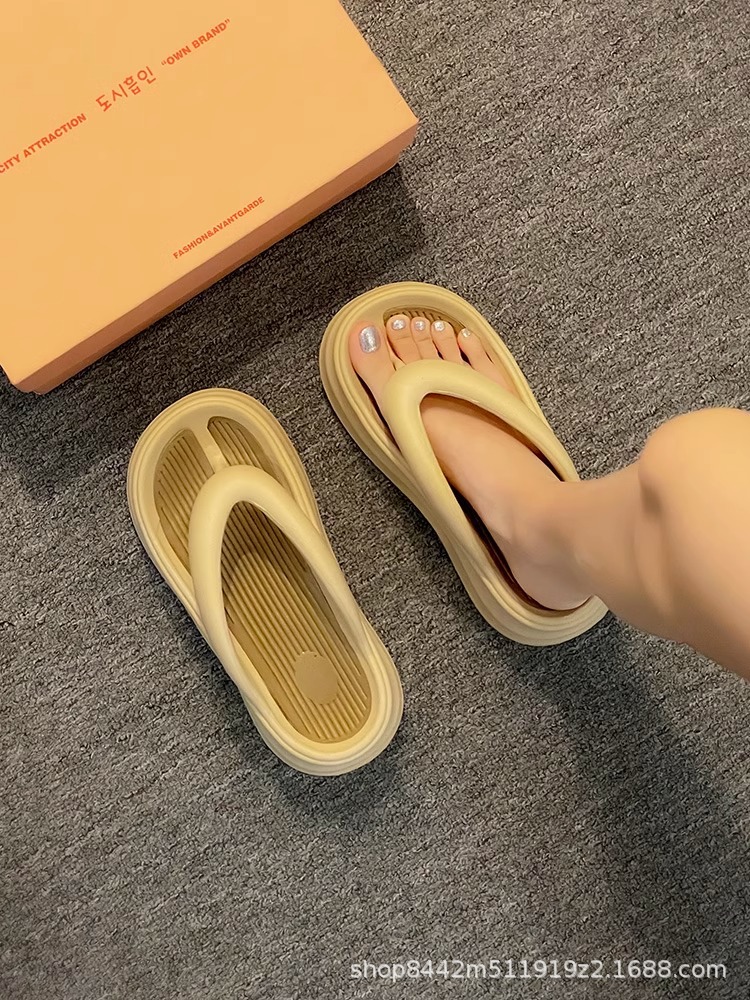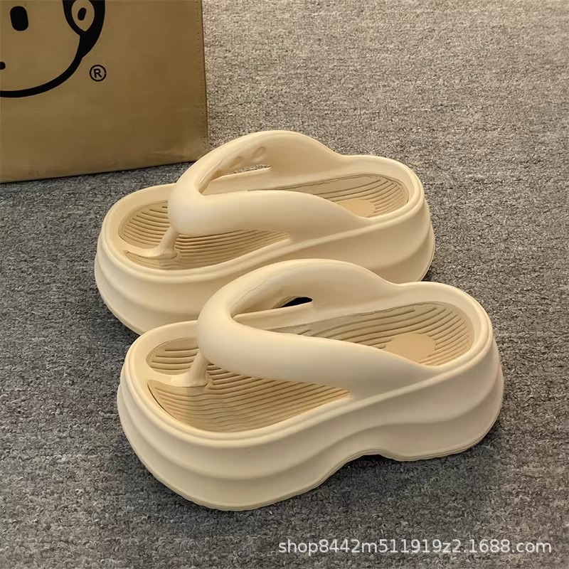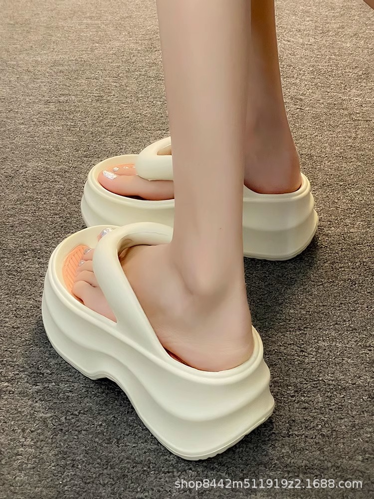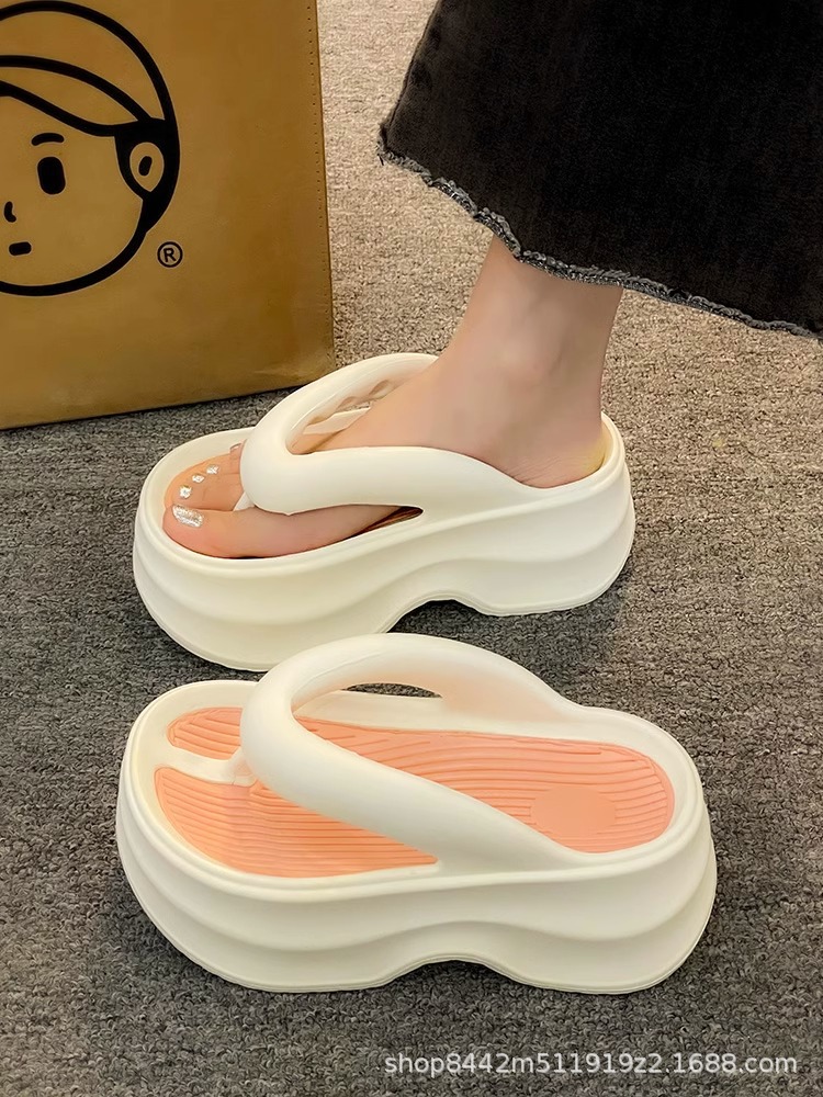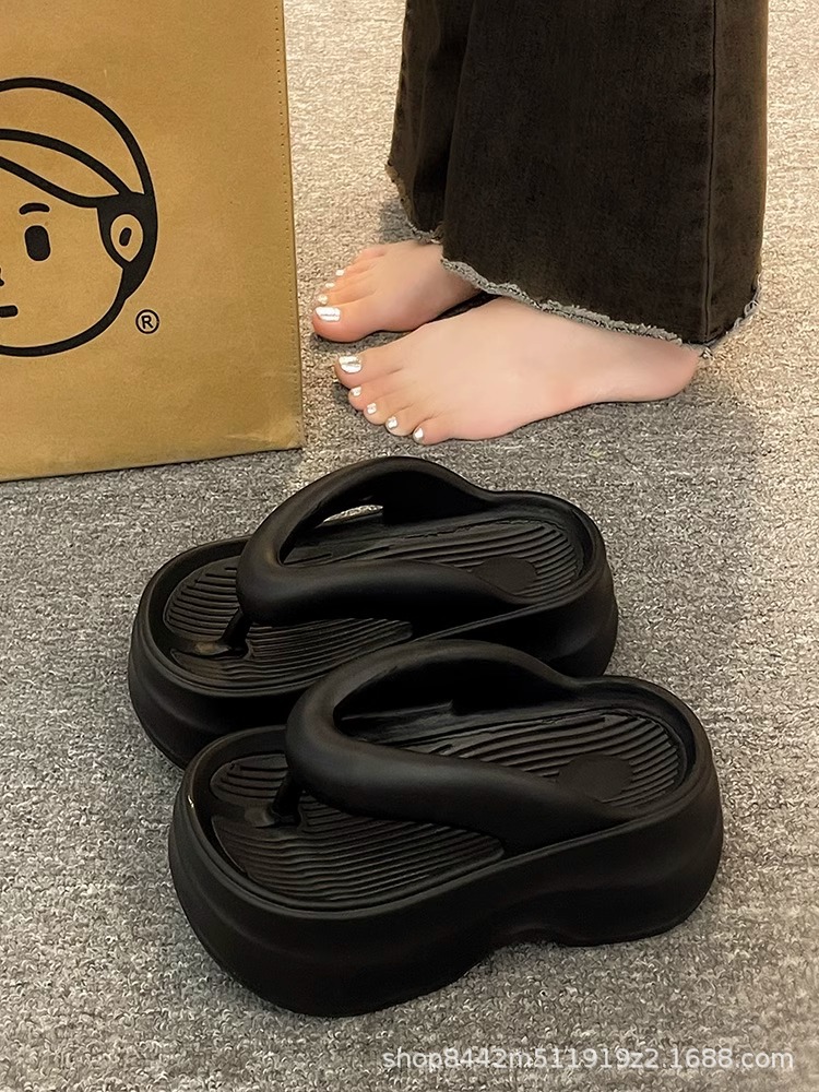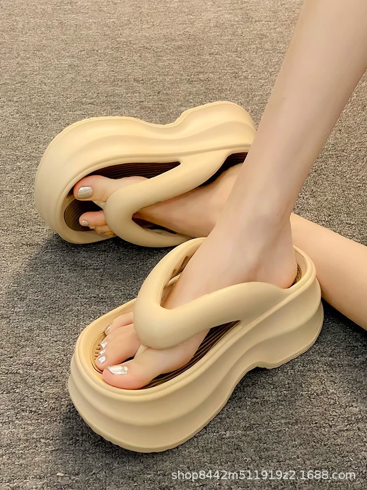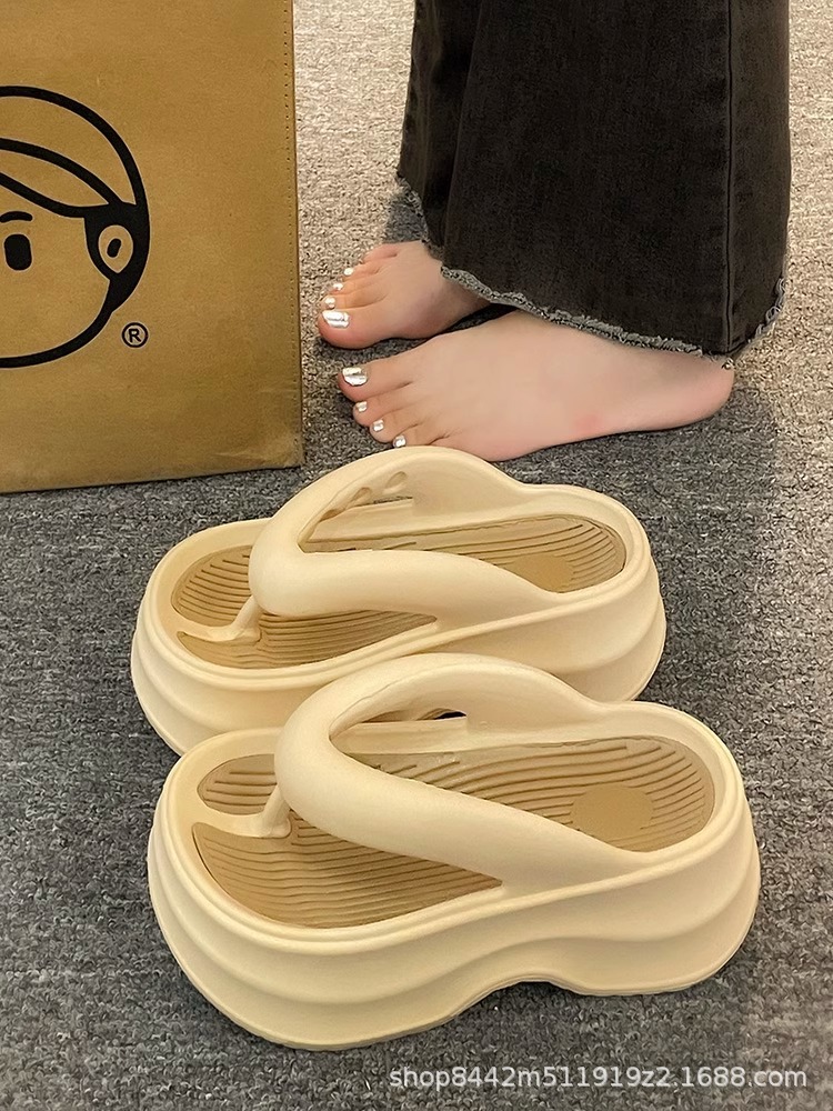 인터넷으로 유명한 두꺼운 바닥 플립 플롭 여성 2024 여름 새로운 스타일 작은 높이 증가 경량 플립 플롭 트렌디 한 비치 슬리퍼스토어 가기