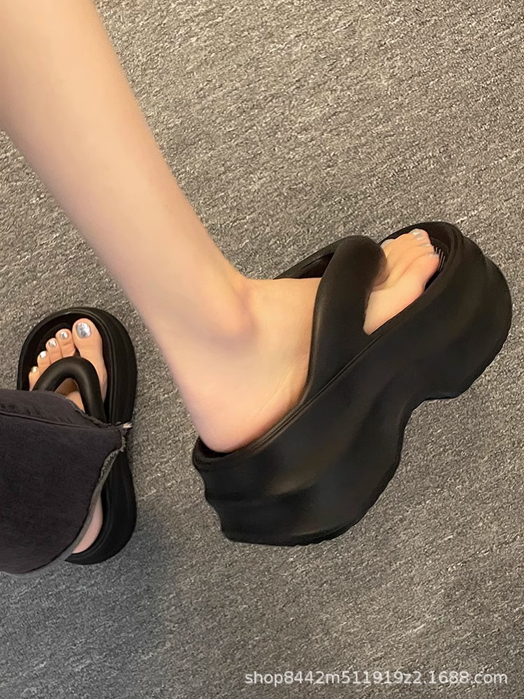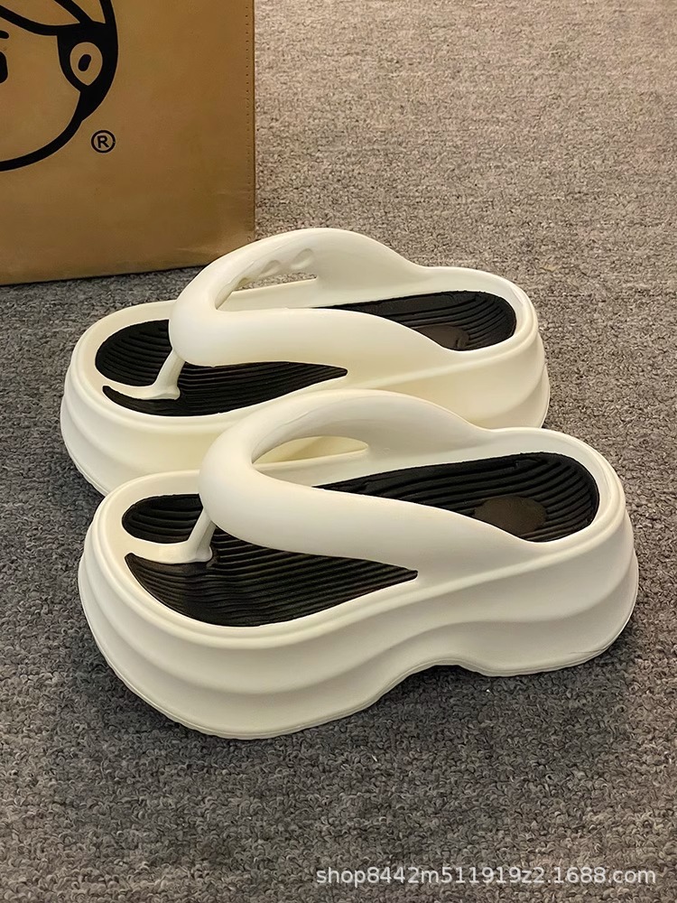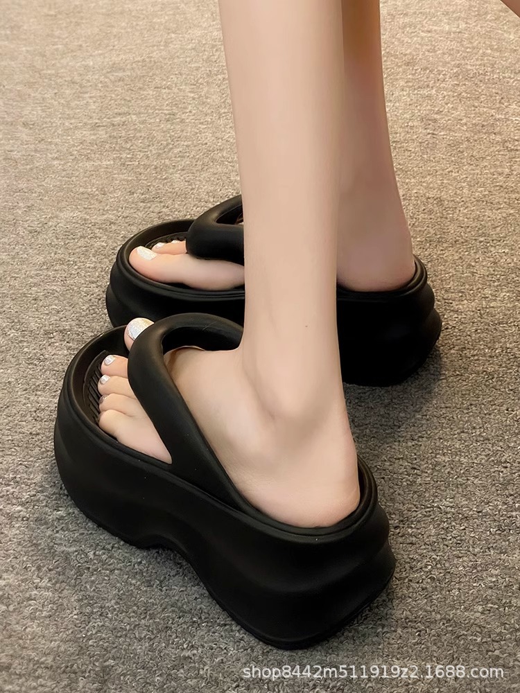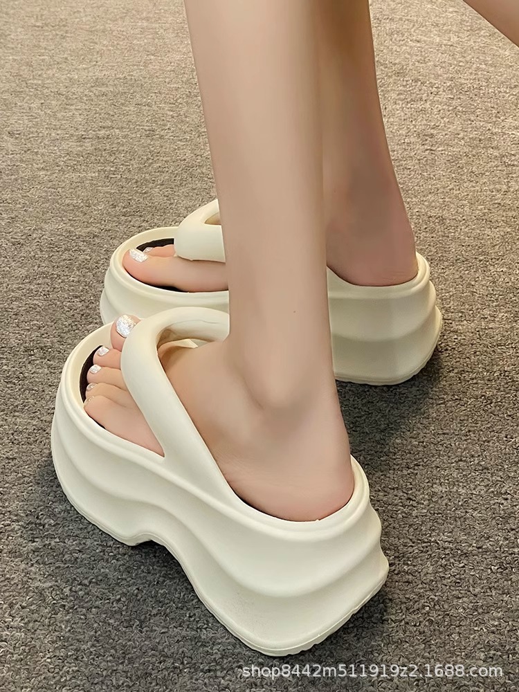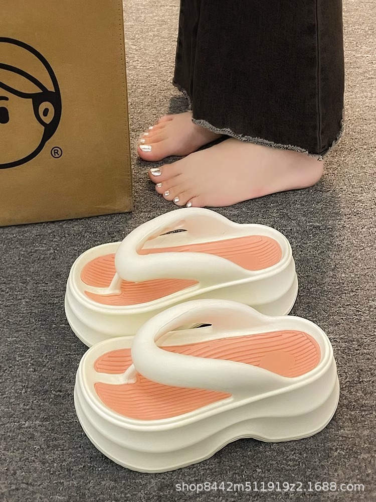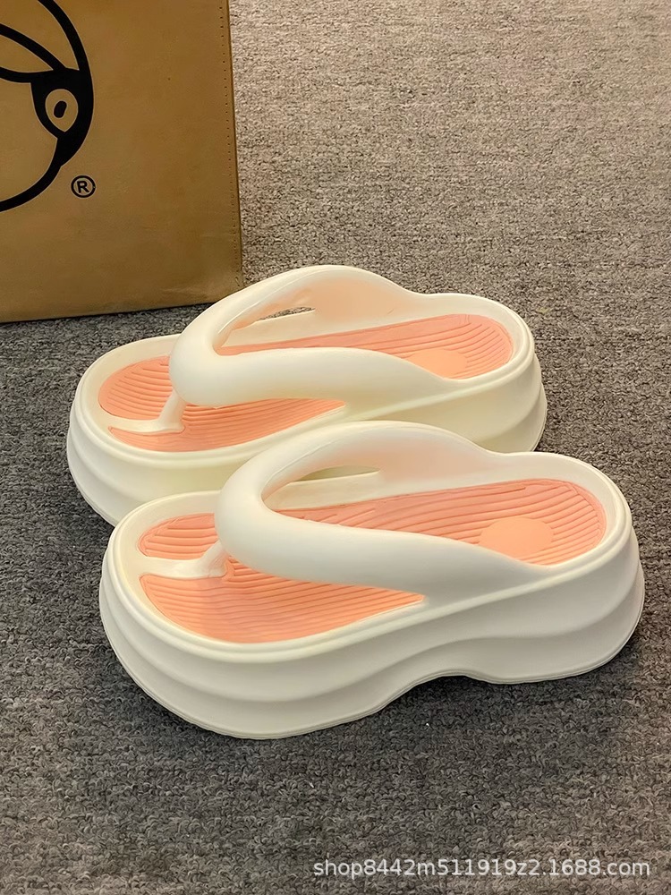 인터넷으로 유명한 두꺼운 바닥 플립 플롭 여성 2024 여름 새로운 스타일 작은 높이 증가 경량 플립 플롭 트렌디 한 비치 슬리퍼스토어 가기