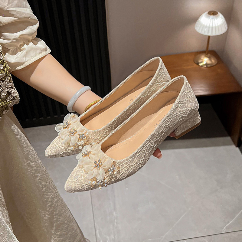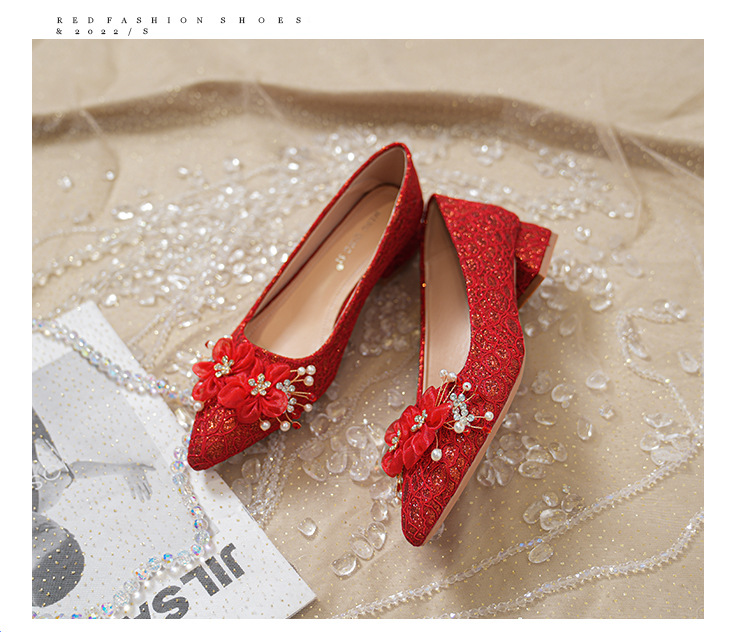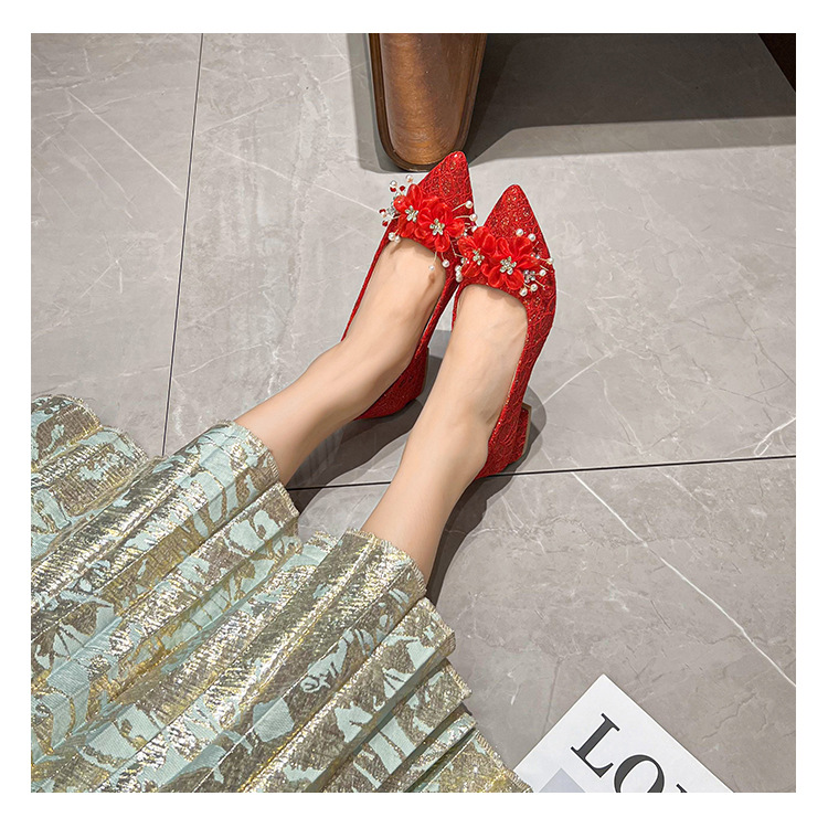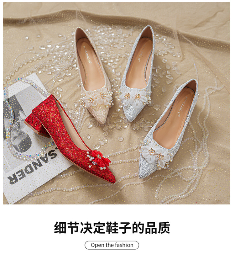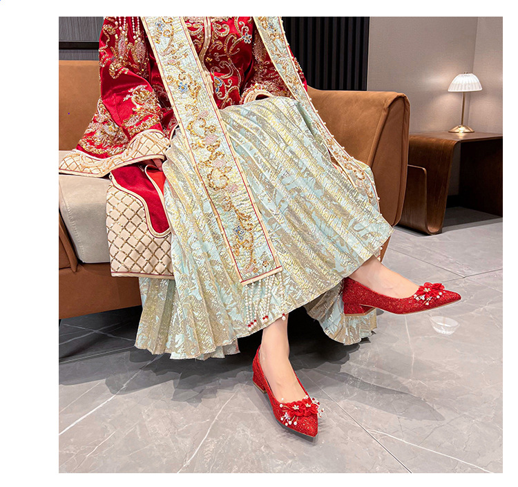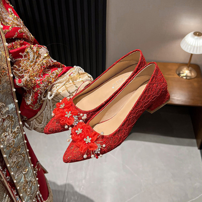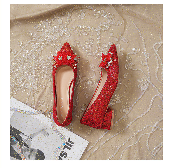 빨간 결혼식 신발 여성 결혼식 원피스 xiuhe 투신 신부 신발 2024 프랑스 하이힐 두꺼운 뒤꿈치 플러스 사이즈 여성 신발 41-43