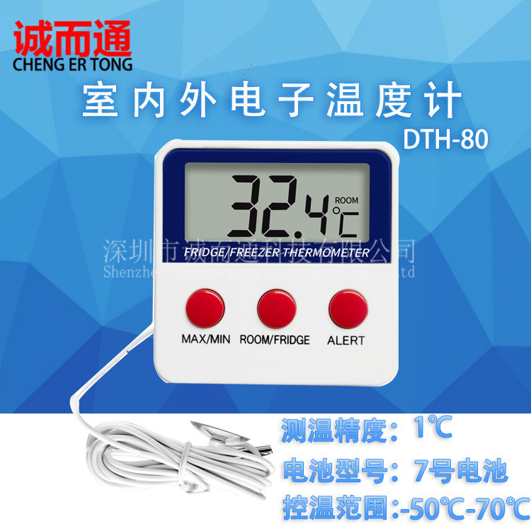 실내 및 실외 전자 온도계 DTH-80 고온 및 저온 경보 실내 온도 측정기 냉장고 냉동 및 냉장 디지털 디스플레이 온도